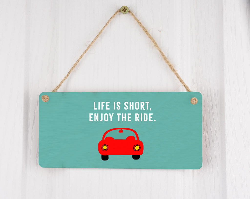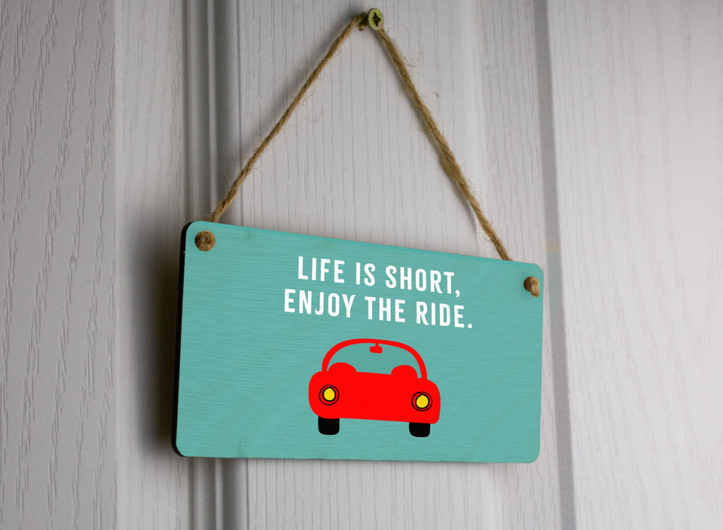 Add a touch of inspiration to your garage with our Motivational Ride of Life Hanging Plywood Sign. Made from high-quality plywood, this hanging sign features a sleek design that will complement any garage decor. The sign reads 'Life is short, enjoy the ride,' reminding you and your loved ones to embrace every moment. Whether it's for him, your loving husband, or your beloved son, this motivational sign is a perfect gift idea. Hang it in the garage, workshop, or man cave, and let the positive vibes flow. Crafted with precision and care, this car sign is built to last and will withstand the test of time. Make a statement with this unique and inspiring sign that will leave a lasting impression on all who see it.