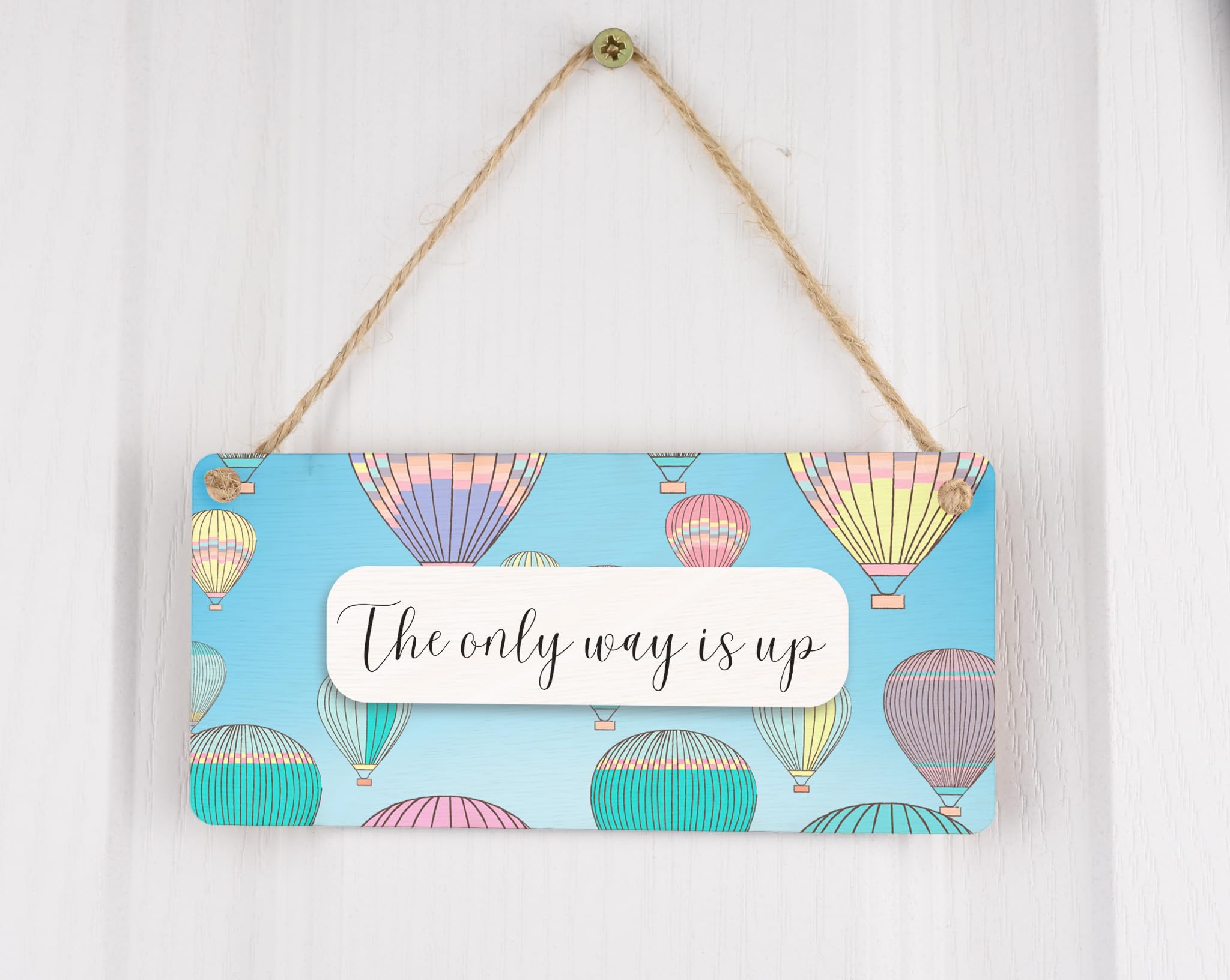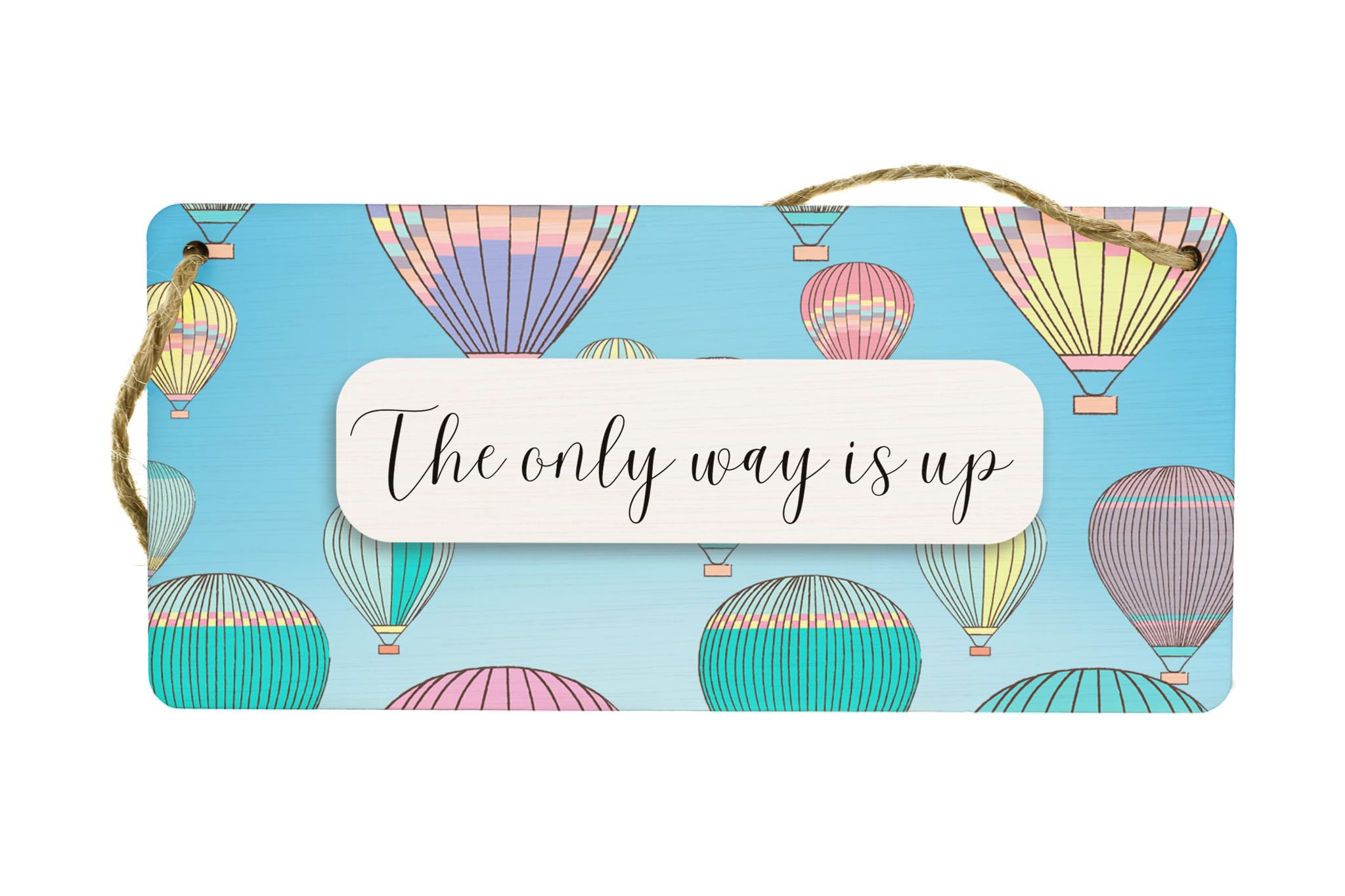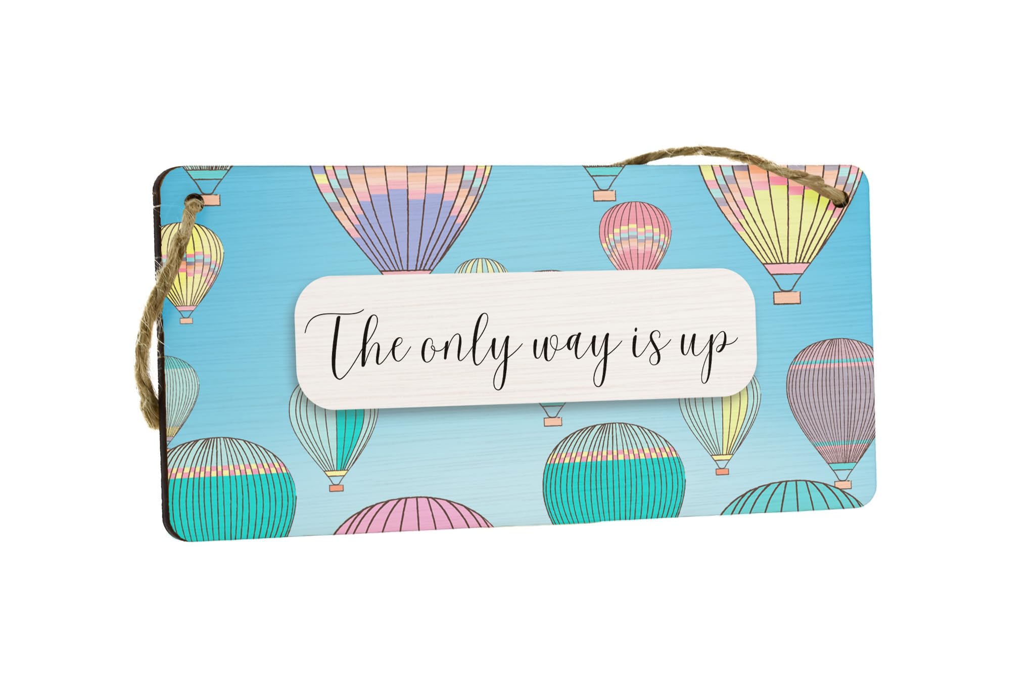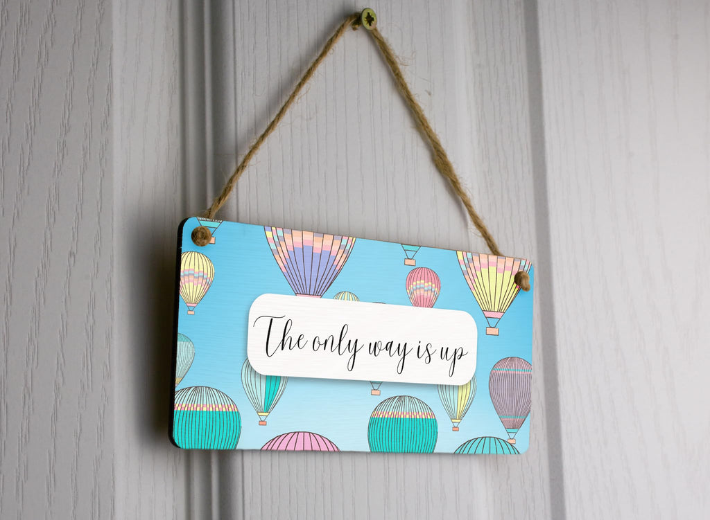 Motivational Wall Sign - Reads 'The Only Way is Up' - Inspirational Plywood Hanging Sign - Hot Air Balloon Design - Full Colour - Home and Office D?cor