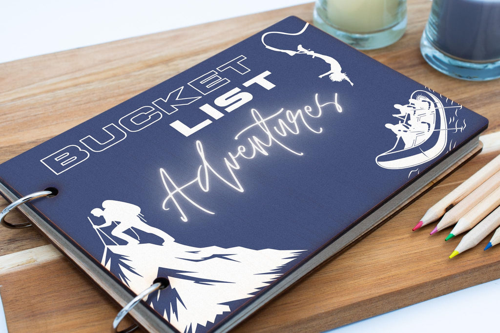 Embark on your mountain adventures with our stunning Wooden Cover Bucket List Journal. This Adventure Logbook is perfect for capturing all your travel bucket list dreams and extreme sports experiences in one handy place. Whether you're a thrill-seeking outdoor enthusiast or a student on a gap year looking to document your adventure memories, this journal is the ideal companion. The wooden cover gives it a rustic charm, while the 25 recycled pages provide plenty of space to document your travel goals and prioritise your adventure tracker. The full-colour front cover showcases a sleek mountain themed design, inspiring you to chase your outdoor adventure dreams.