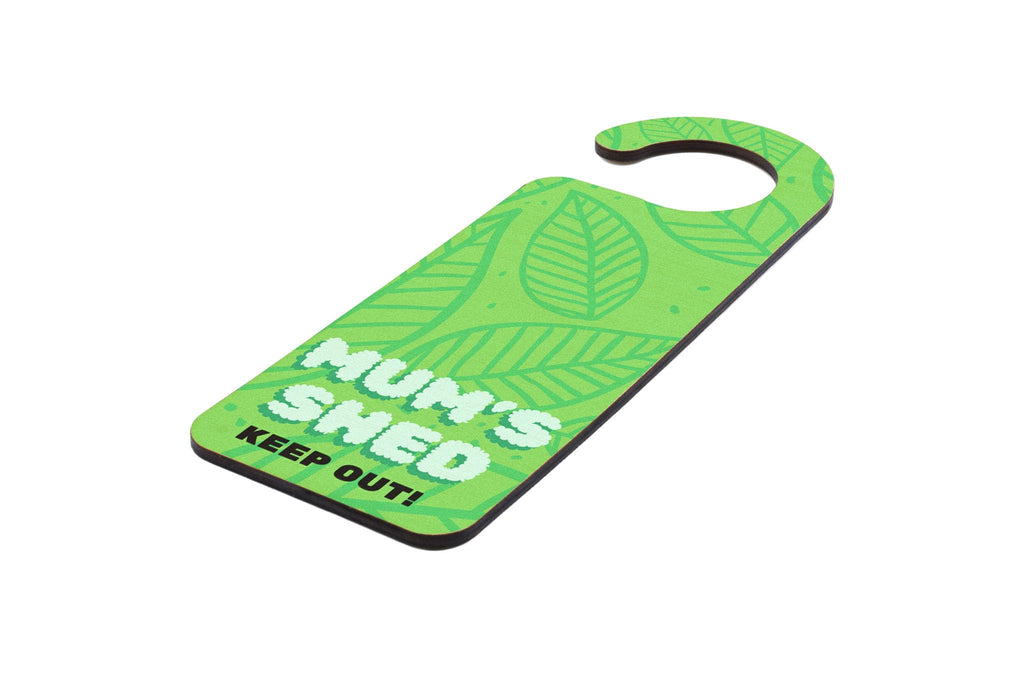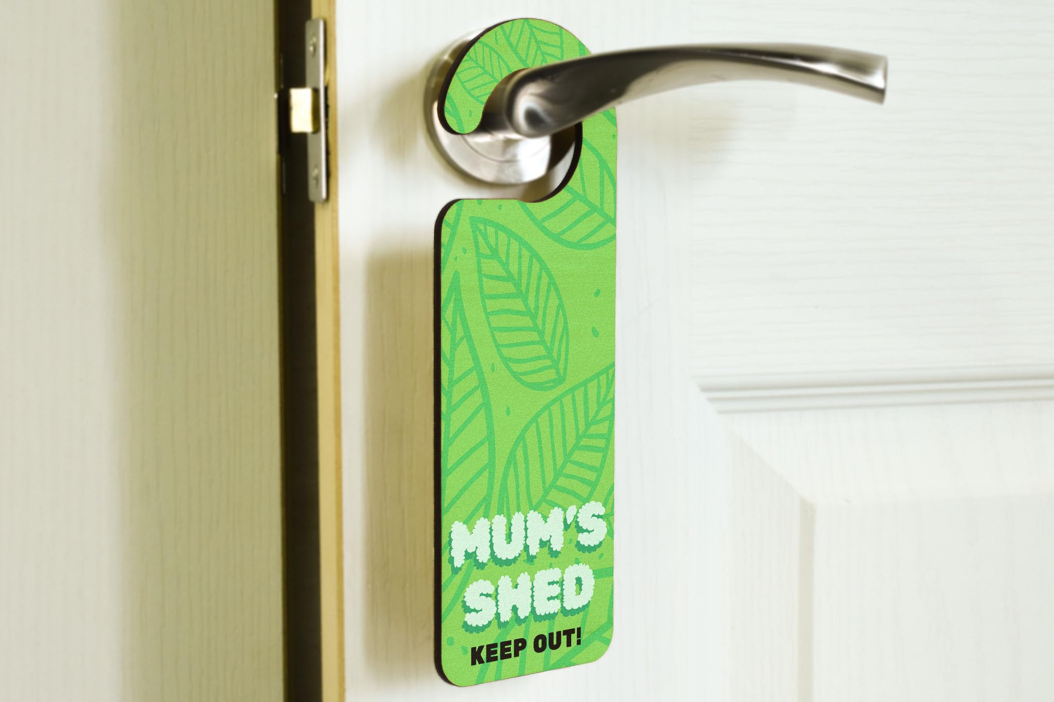 - Features 'Mum's Shed Keep Out!' in bold letters, perfect for a mum with a green thumb