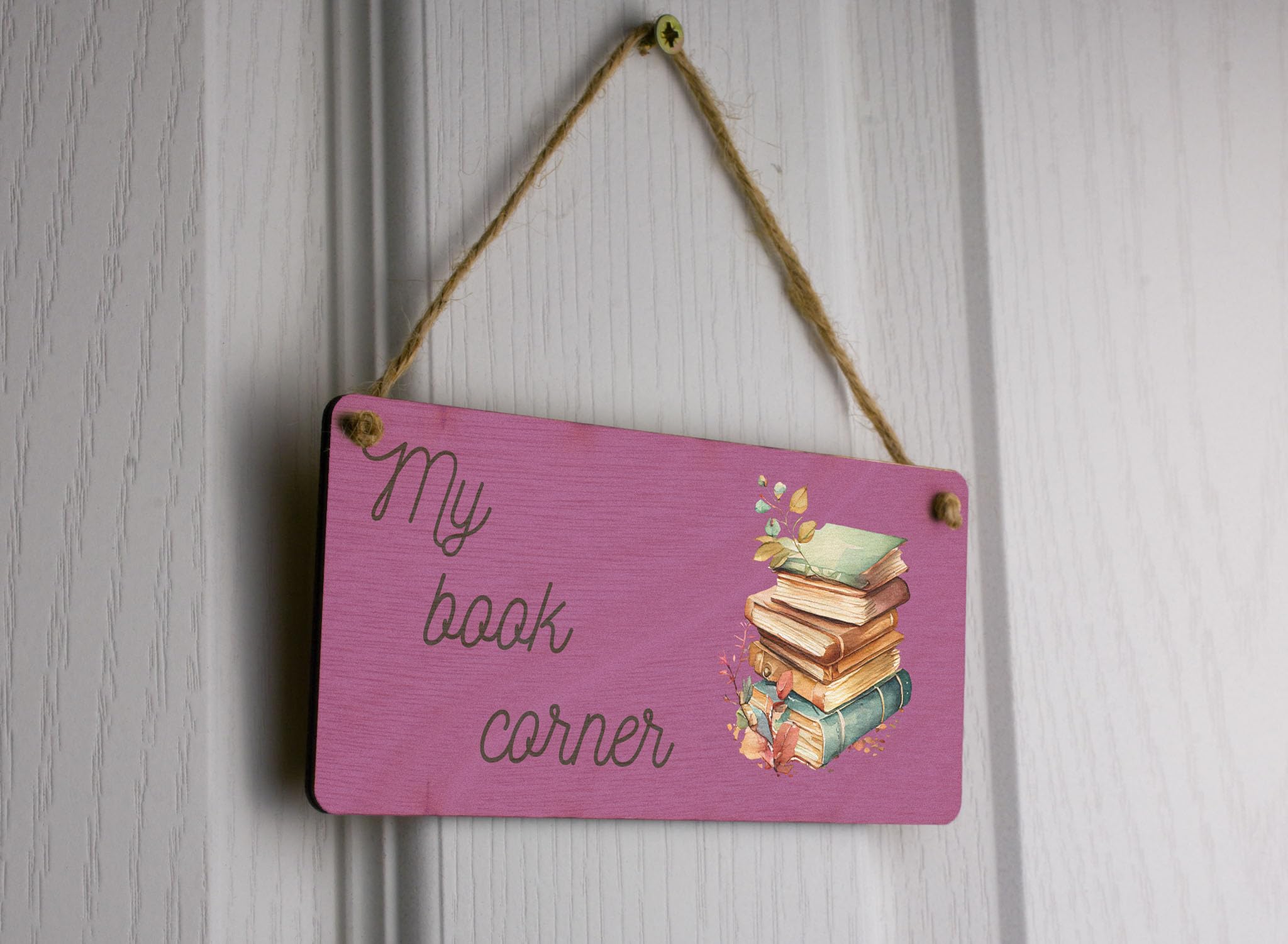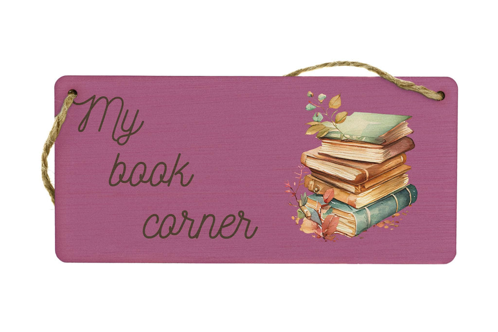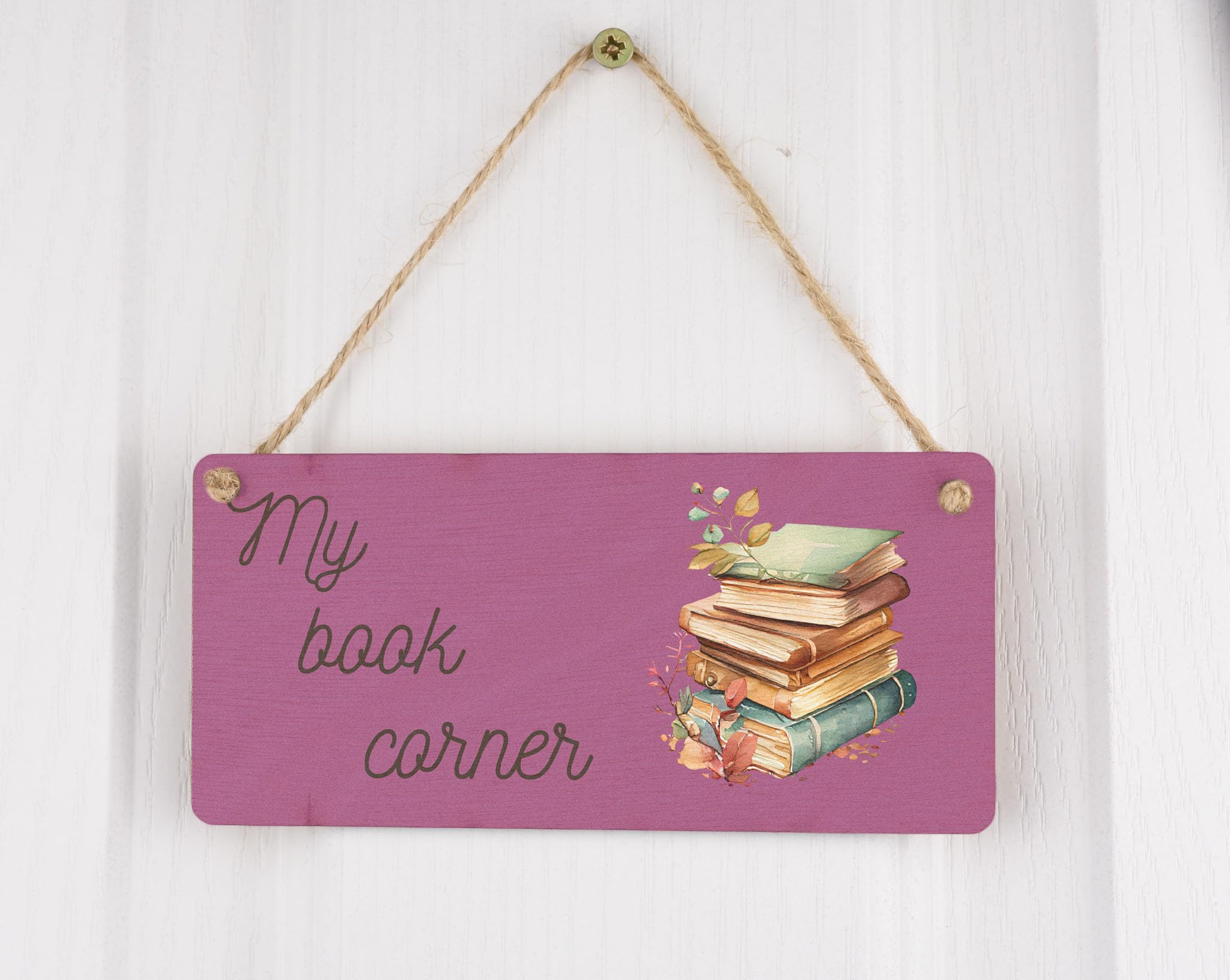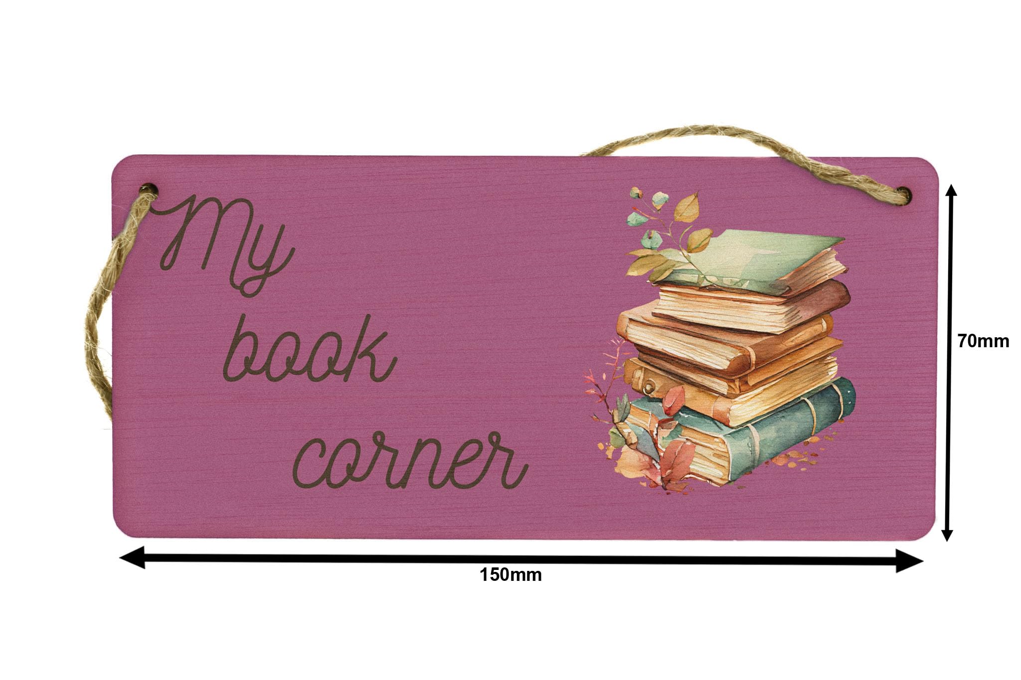 Introducing our My Book Corner - Plywood Hanging Sign, the perfect gift for family and friends! This sign is an ideal addition to any home, reading nook, or kids room, and features a beautiful full colour design with black writing on a vibrant purple background. The sign proudly reads 'My Book Corner' and showcases an image of a pile of books with branches growing from them, adding a touch of nature and whimsy to any space. Made from quality plywood, this hanging sign is durable and long-lasting, ensuring it will be a cherished piece for years to come. Whether you're shopping for your wife, husband, girlfriend, boyfriend, son, daughter, siblings, or kids and teens, this sign is the perfect gift to show your love and appreciation for their passion for books. It also makes a great addition to any book corner or reading nook, creating a cosy and inviting atmosphere for hours of reading enjoyment. Add a touch of style and personalization to any space with this lovely plywood hanging sign for book corner.