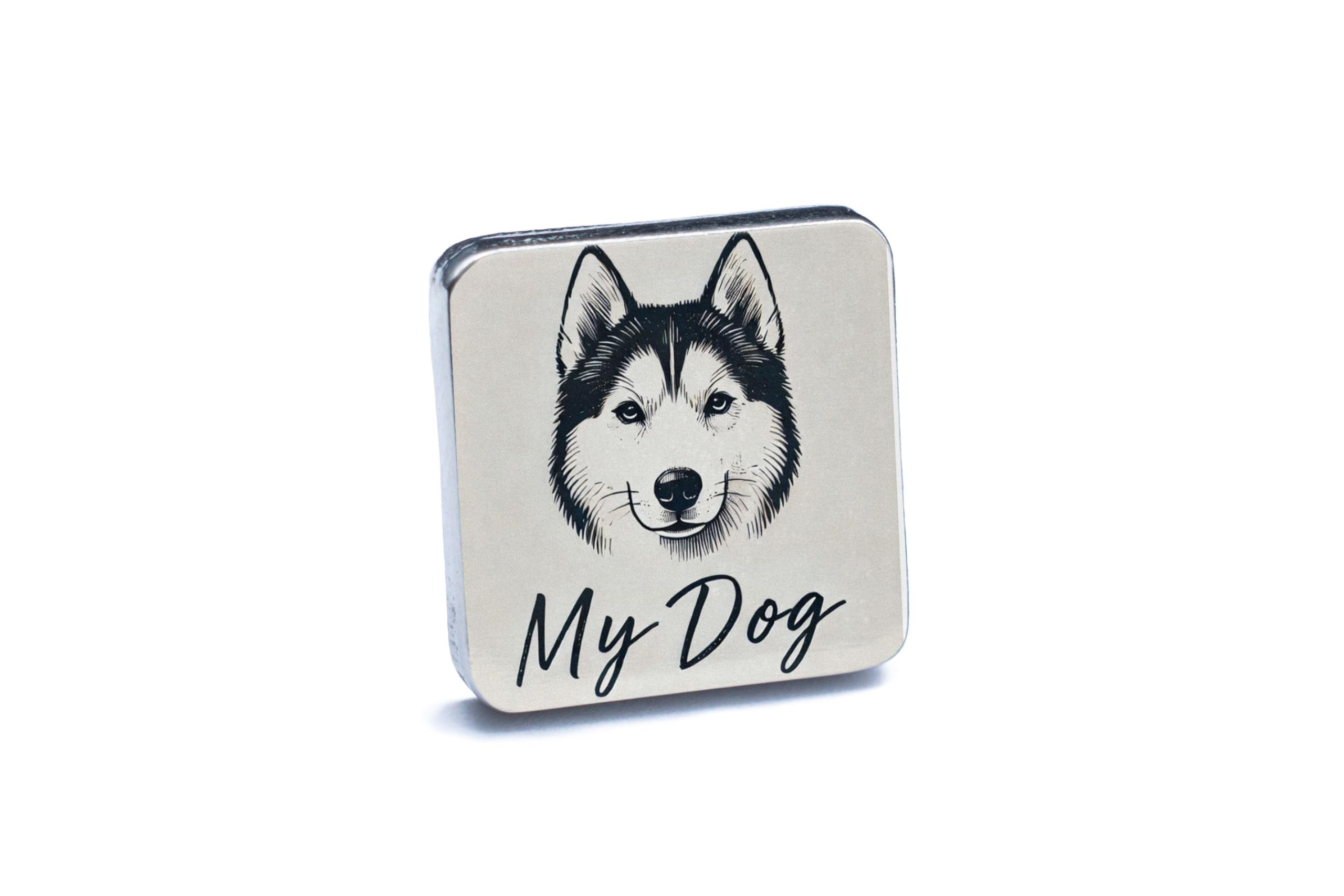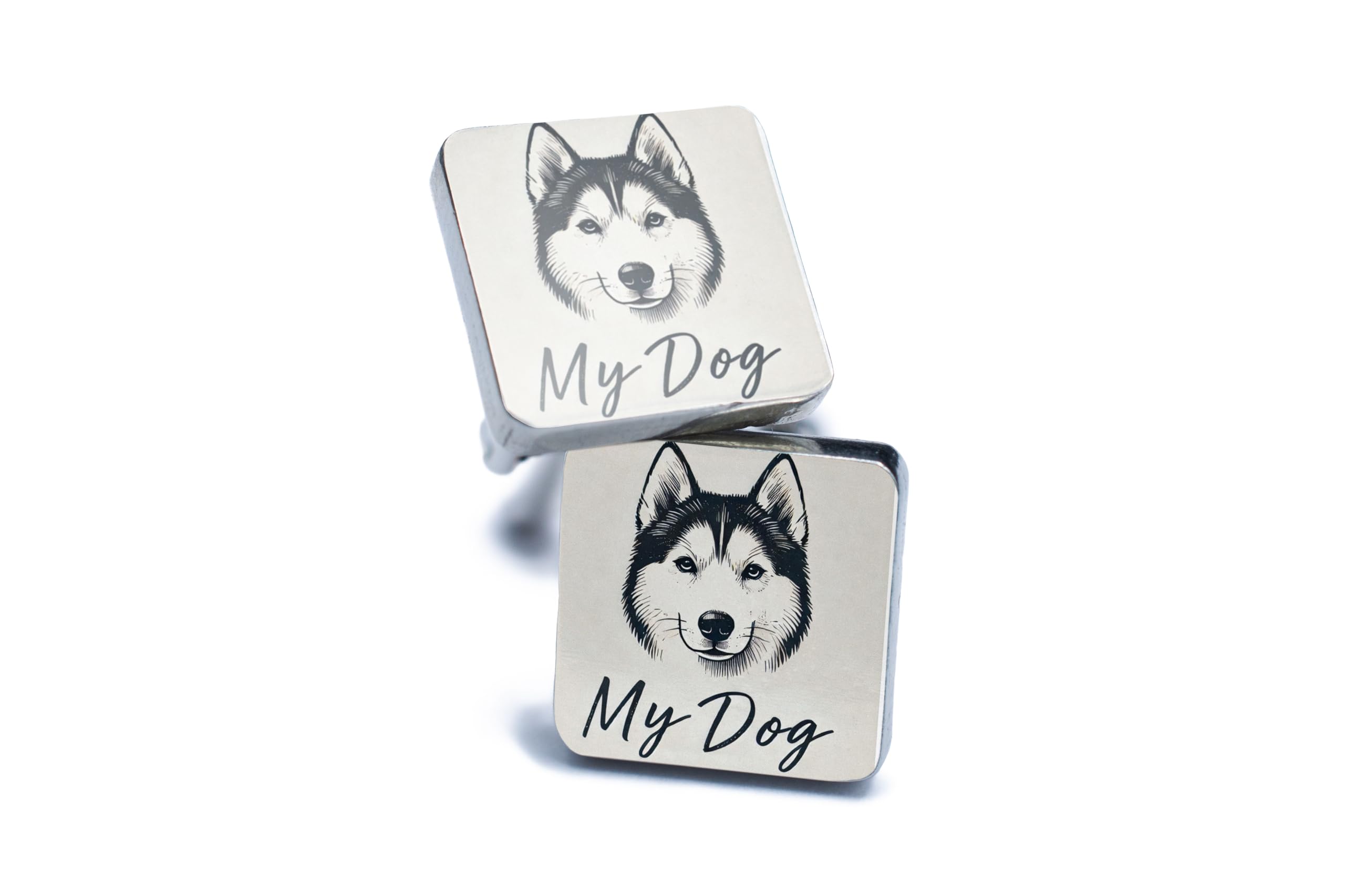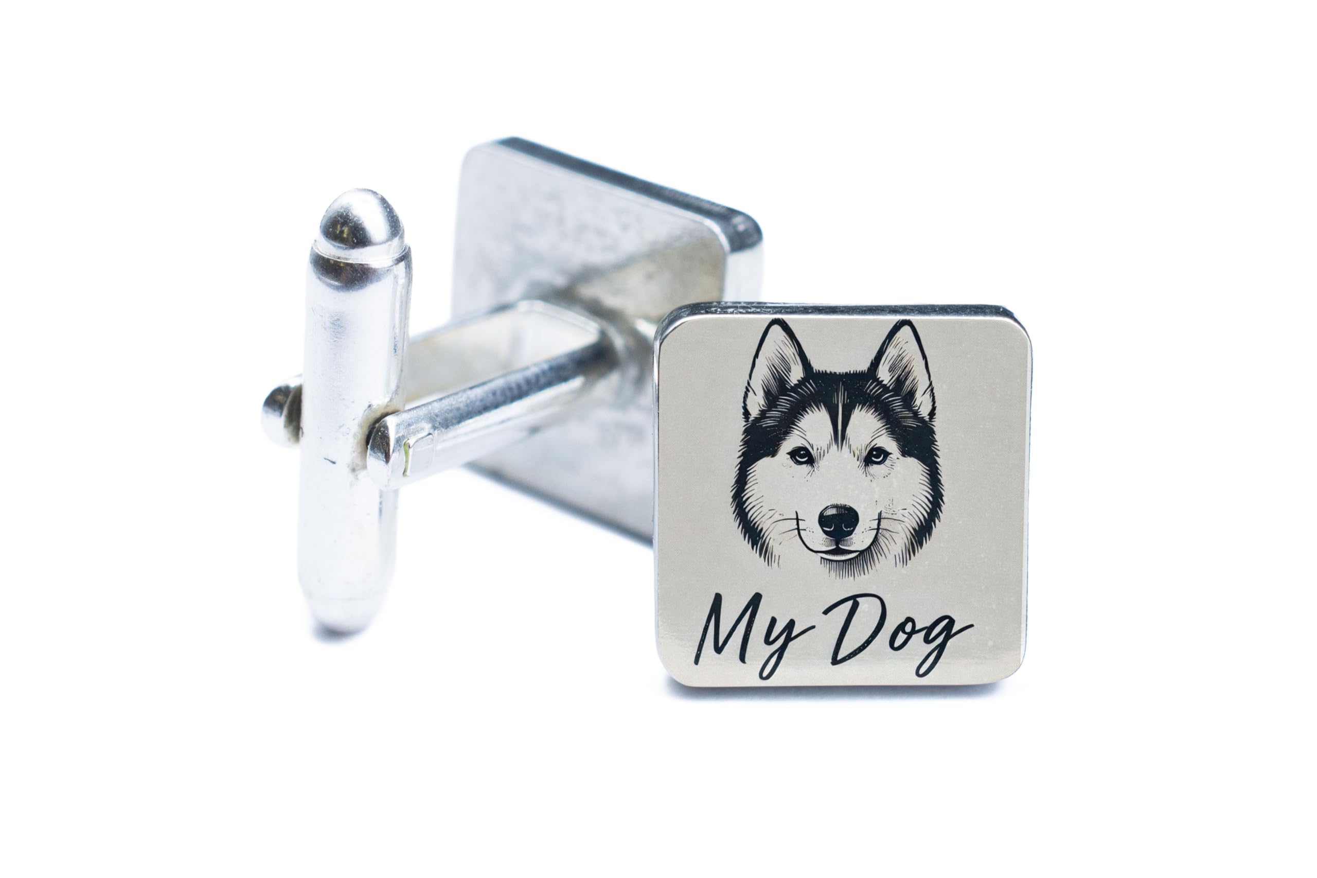 Celebrate your love for dogs with these charming "My Dog" Husky Cufflinks. Showcasing an intricate sketch of a Husky, these cufflinks are a perfect way to carry a piece of your furry friend with you wherever you go. Made from durable, high-quality materials, these cufflinks are designed to last while adding a touch of style and personality to any outfit. Whether you're attending a formal event, a work meeting, or just looking for a unique gift for a Husky enthusiast, these cufflinks are an excellent choice. Packaged in a sleek gift box, they make a perfect present for any dog lover in your life!