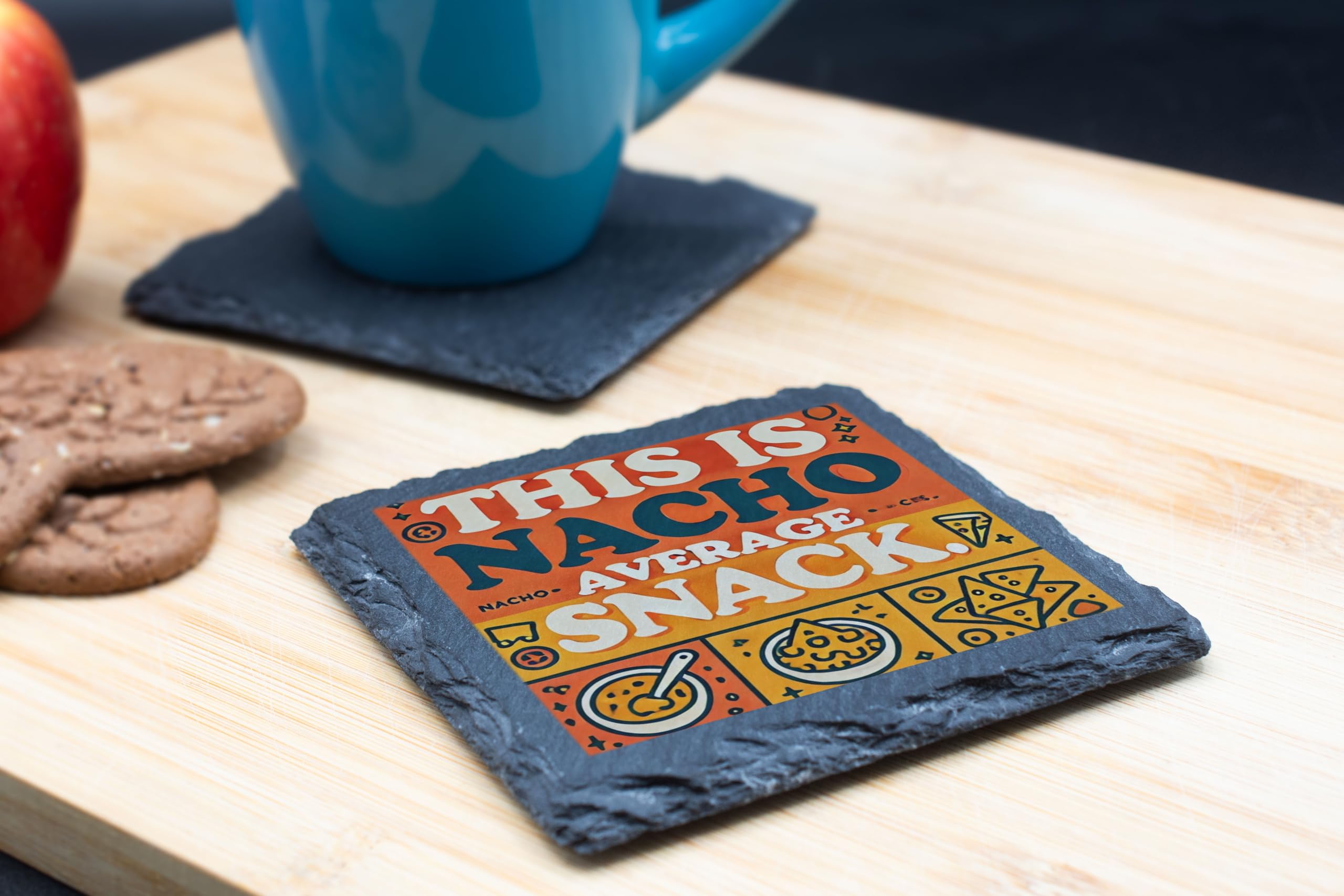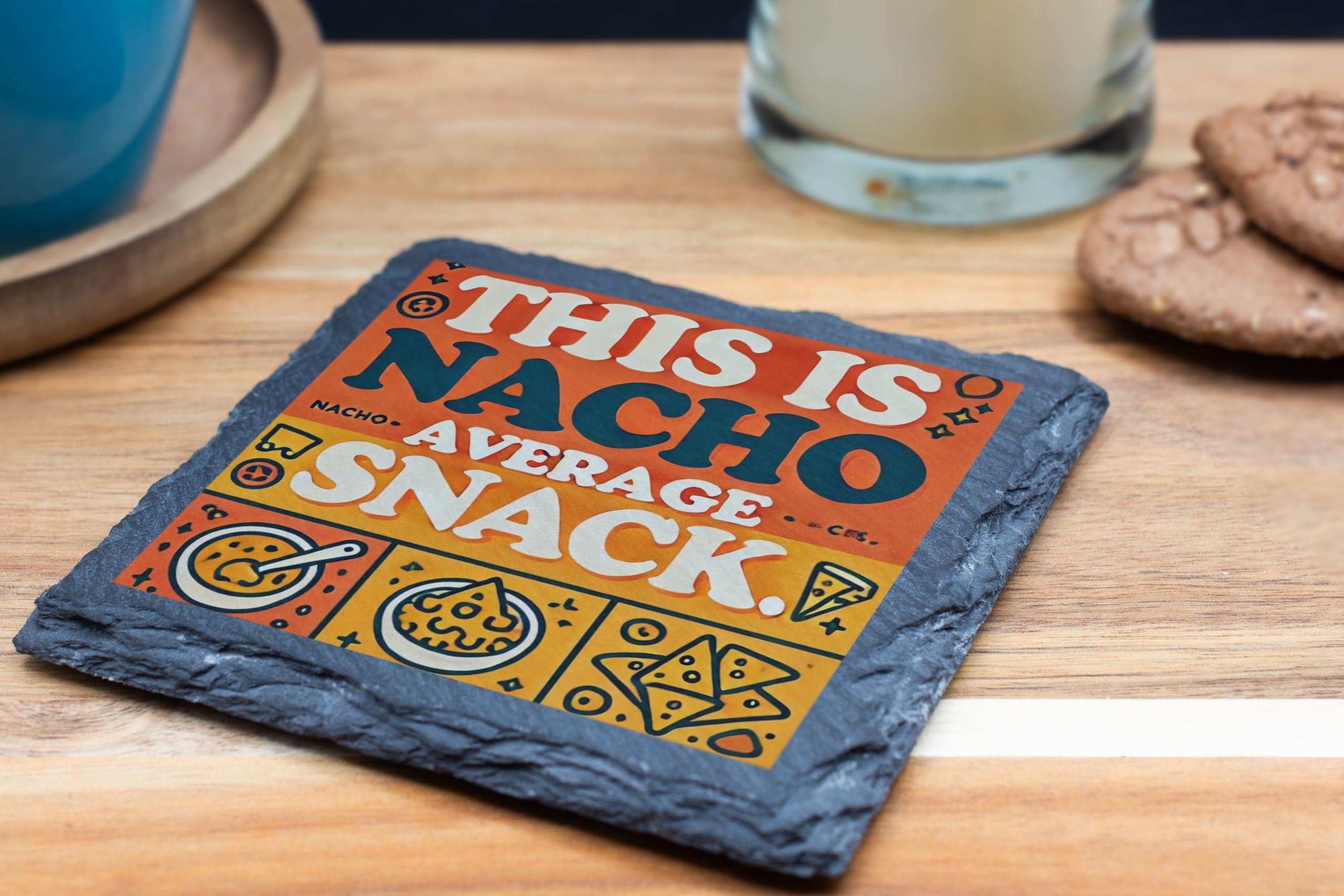 Nacho Average Snack Slate Coaster ? Fun Foodie-Themed Drink Coaster for Snack Enthusiasts (slco-ds24-avsnkrg)