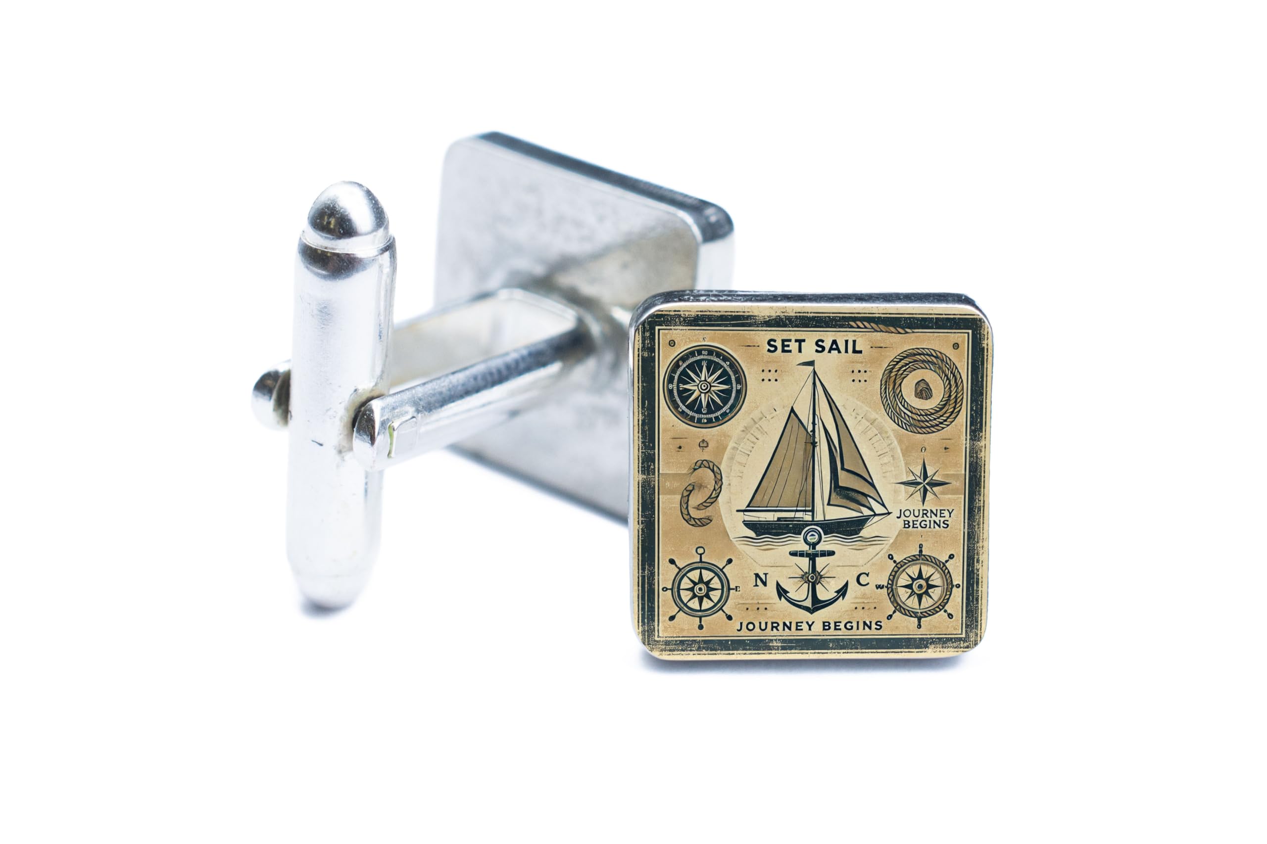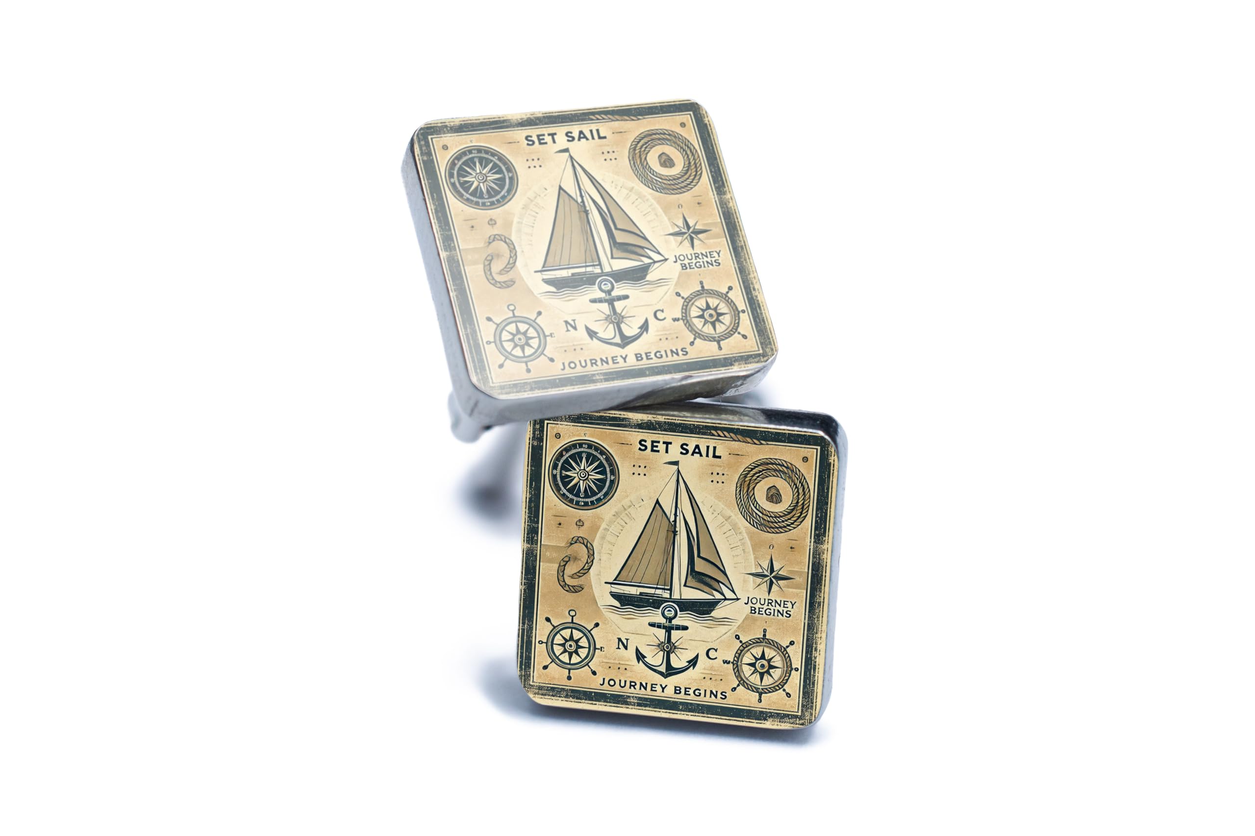 Set sail on your next journey with these exquisite Nautical Journey Cufflinks. Designed with sea lovers in mind, these cufflinks capture the essence of maritime adventure with a detailed vintage aesthetic featuring a ship, compass, and anchor. Whether you're attending a wedding, a formal event, or simply showcasing your love for the sea, these cufflinks are the perfect accessory. Lightweight yet durable, they are crafted to provide both comfort and style for any occasion. Packaged in a sophisticated gift box, these cufflinks make the perfect gift for sailors, explorers, or anyone with a passion for the open seas. Celebrate the spirit of adventure and timeless elegance with these unique nautical cufflinks.