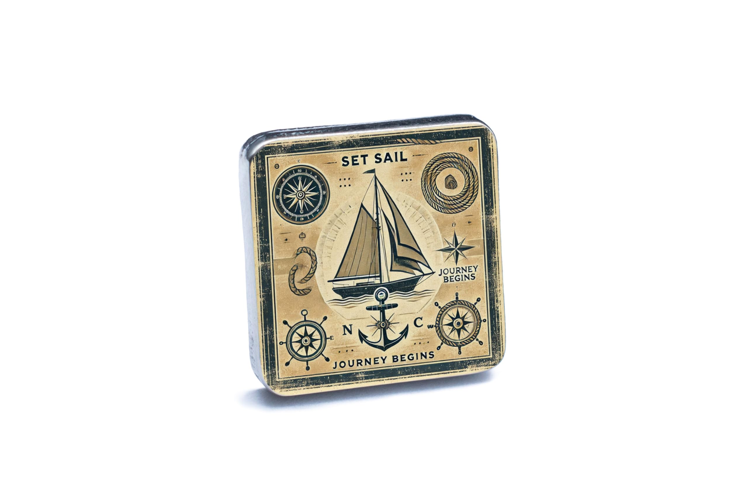 - Elegant Nautical Design: Features intricate sailing motifs, including a ship, compass, and anchor, perfect for maritime enthusiasts.