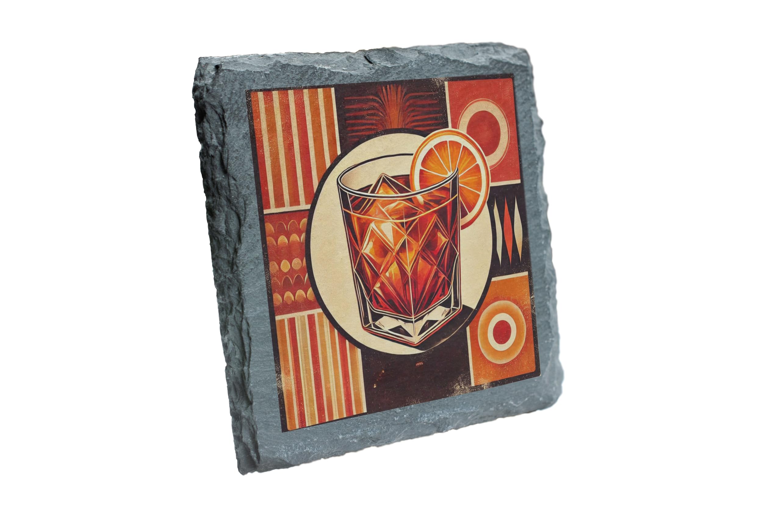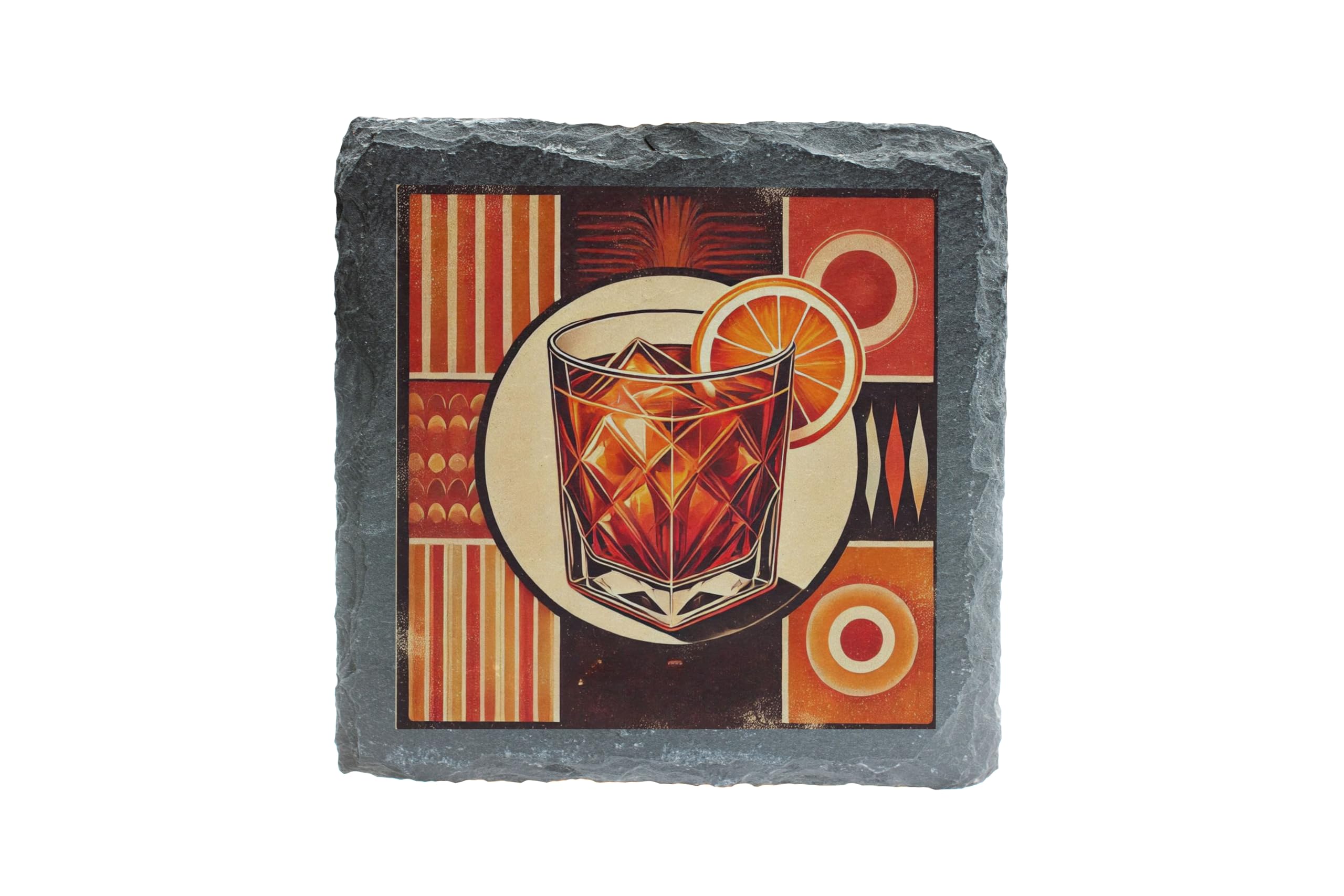 Negroni Slate Coaster ? Retro-Inspired Drink Coaster for Cocktail Lovers (slco-ds24-negronirg)