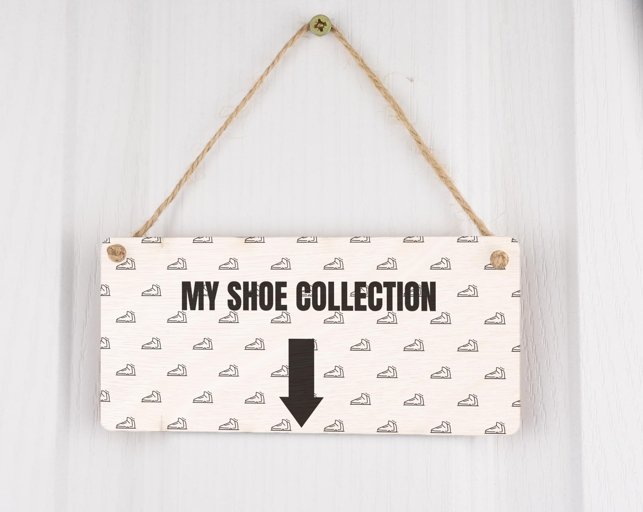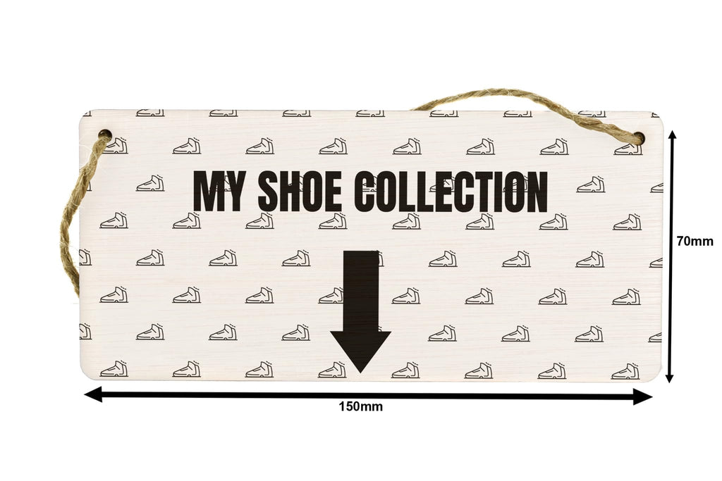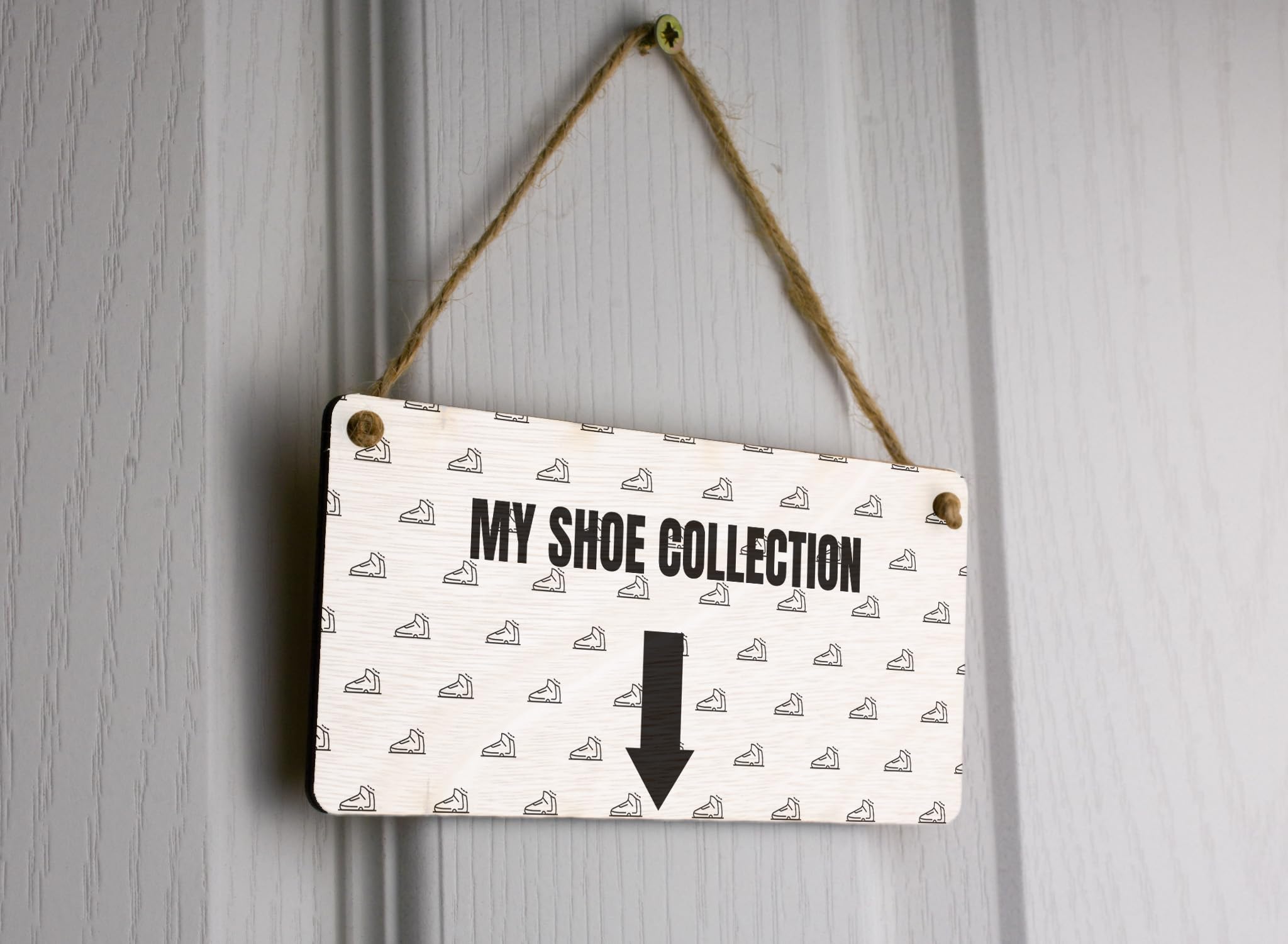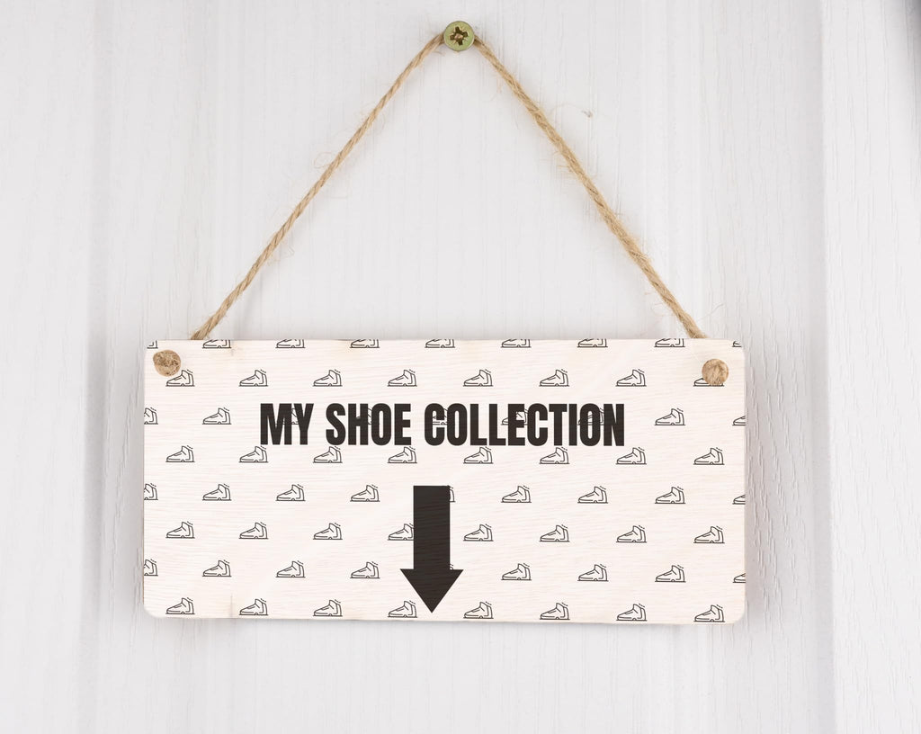 Add a touch of fashion to your home decor with our Novelty Hanging Plywood Sign. This unique gift is perfect for your wife, girlfriend, grandmother, or daughter who loves shoes. The full colour shoe background design will surely catch everyone's attention. Hang it in any room and prioritize your shoe collection with style. Made from quality plywood, this sign is durable and long-lasting. Whether you're a shoe enthusiast or looking for a fashionable decor item, this novelty sign is a must-have!