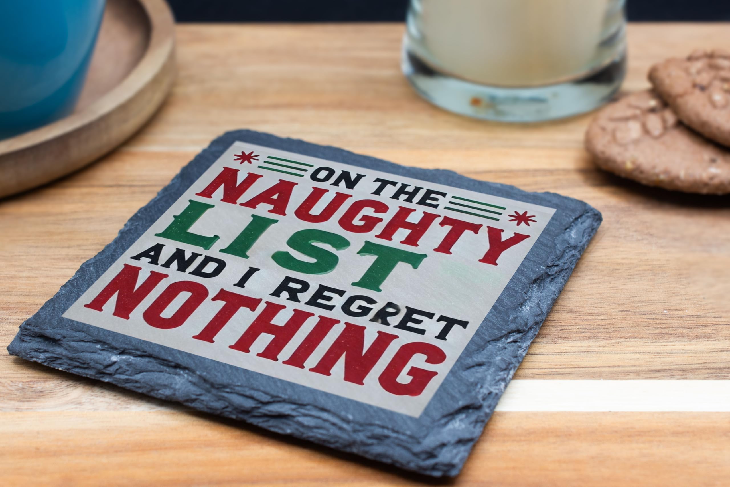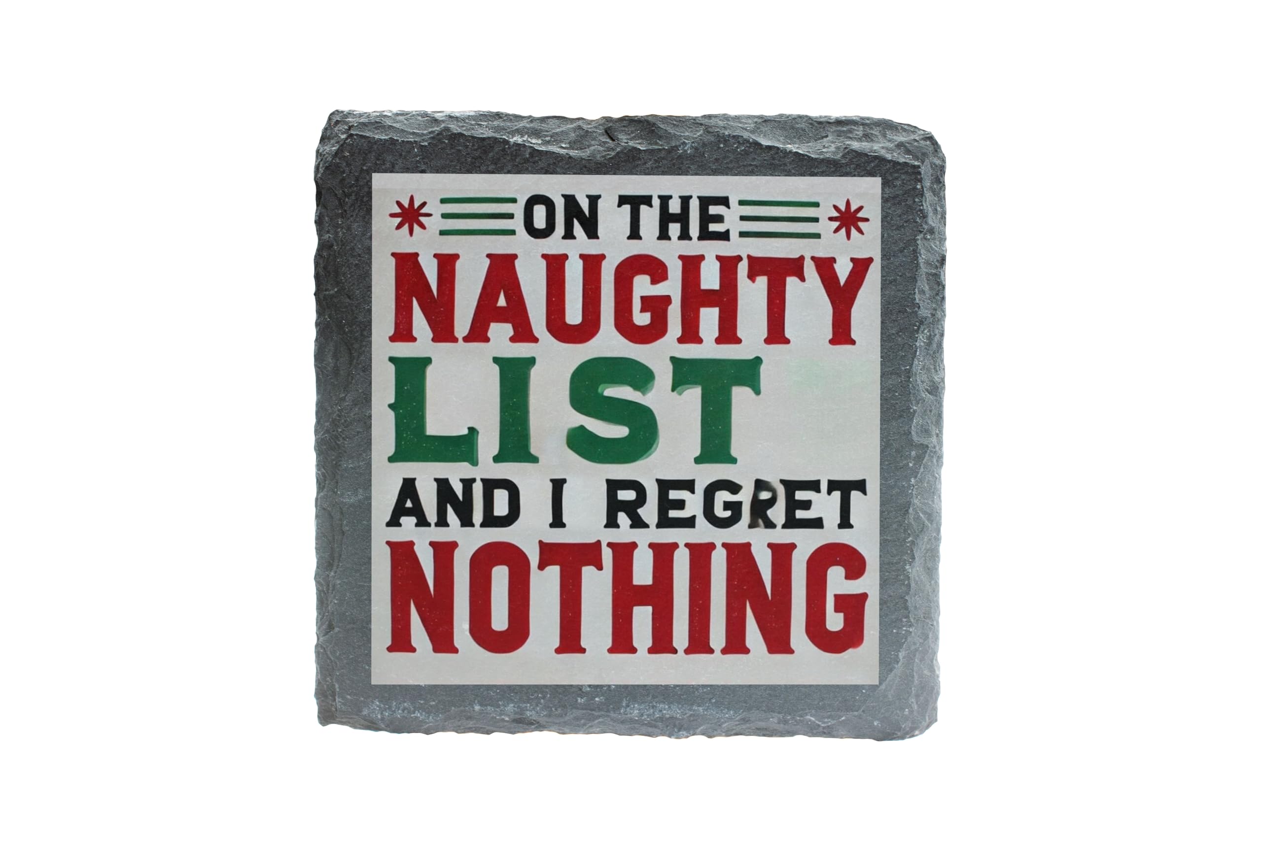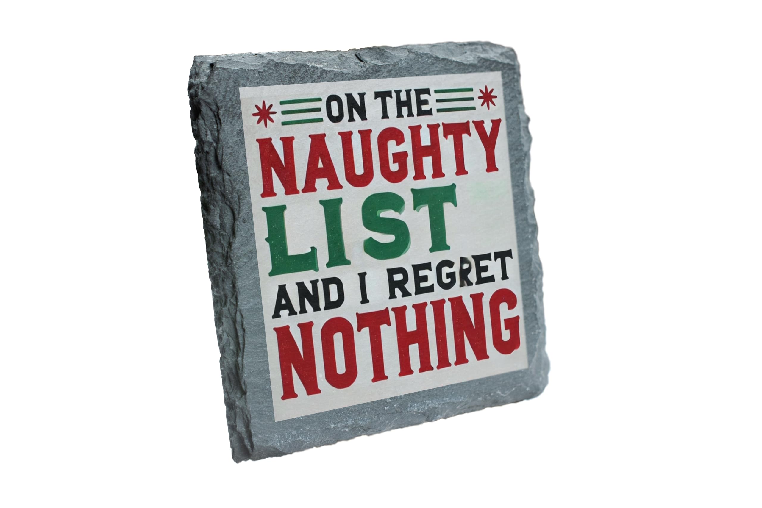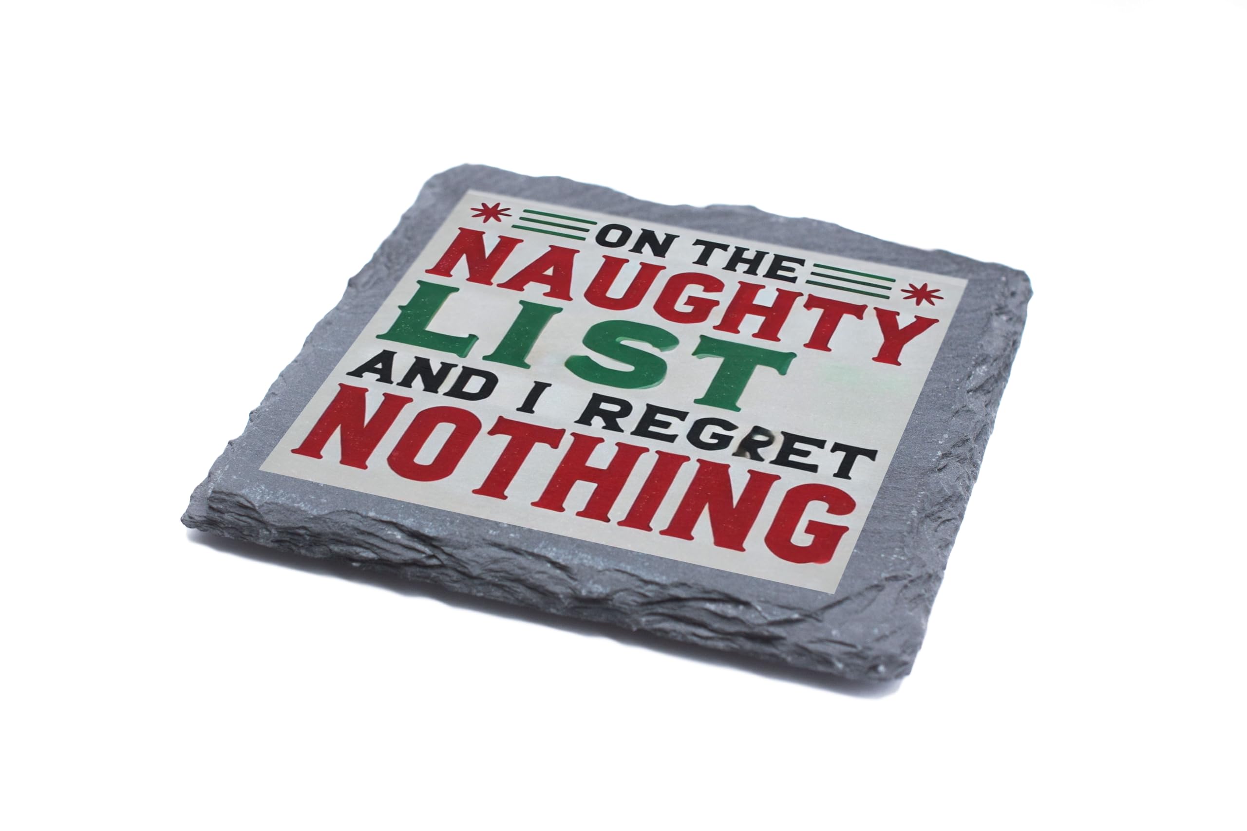 On the Naughty List and I Regret Nothing Christmas Slate Coaster - Fun (slco-ds24-regretrg)