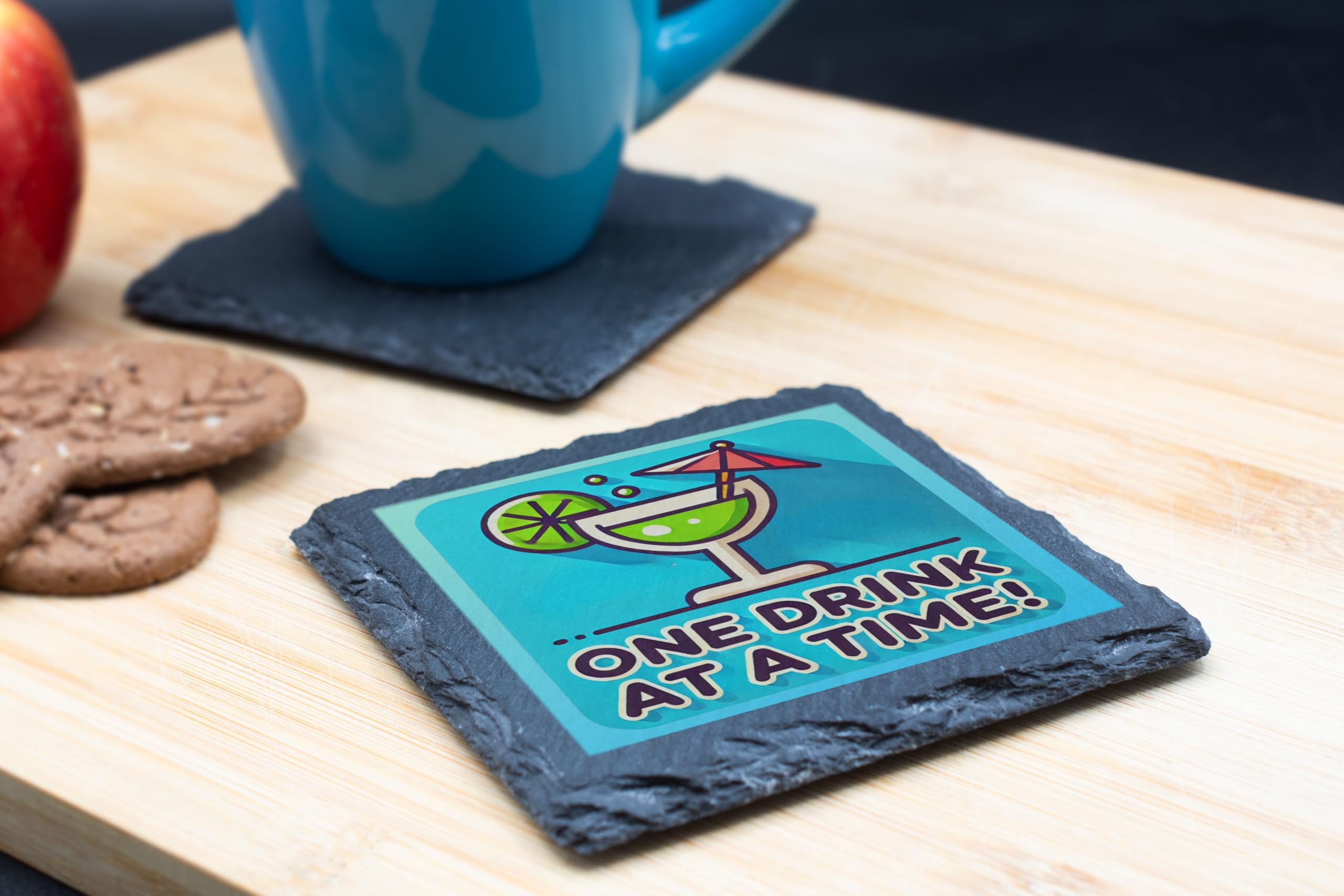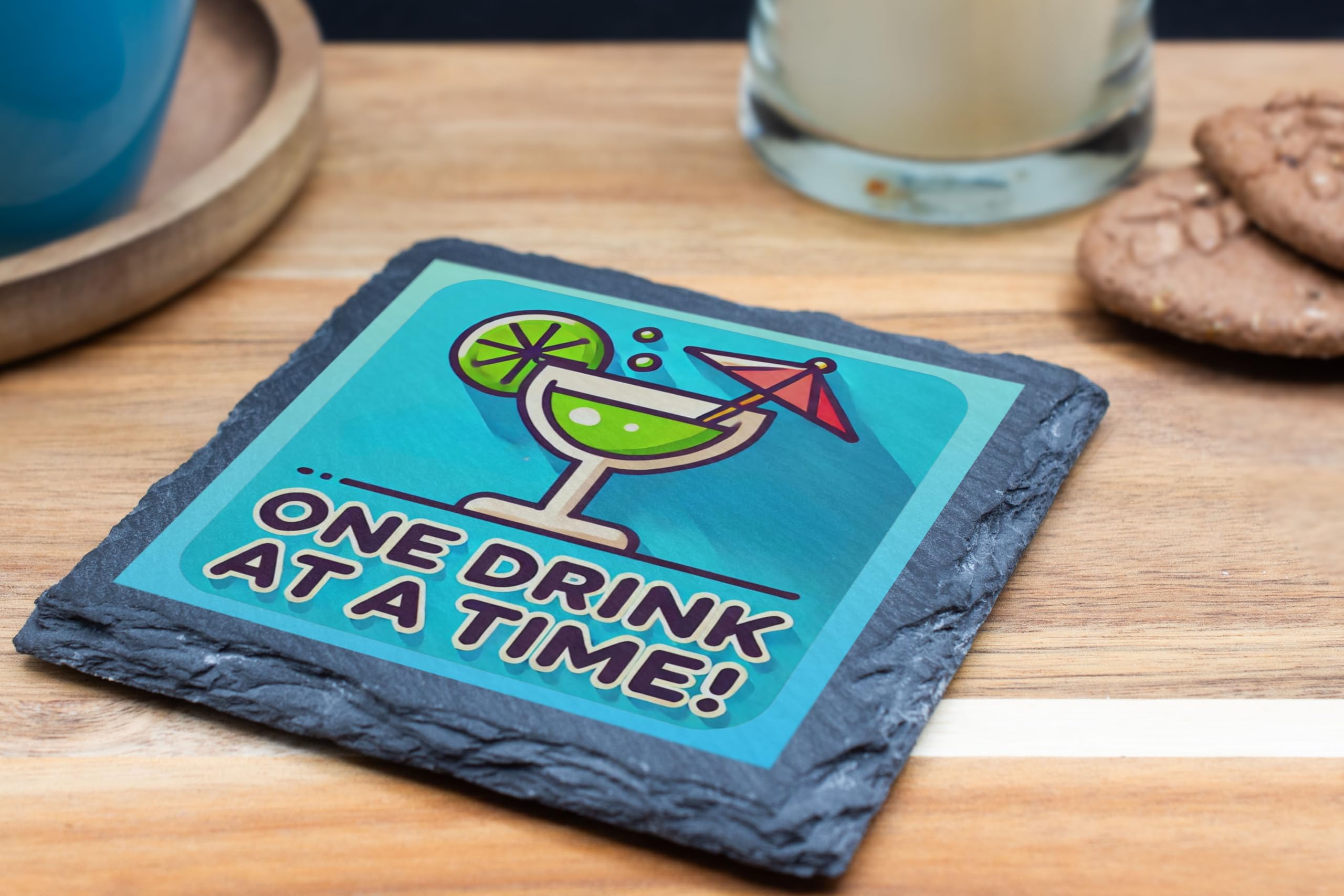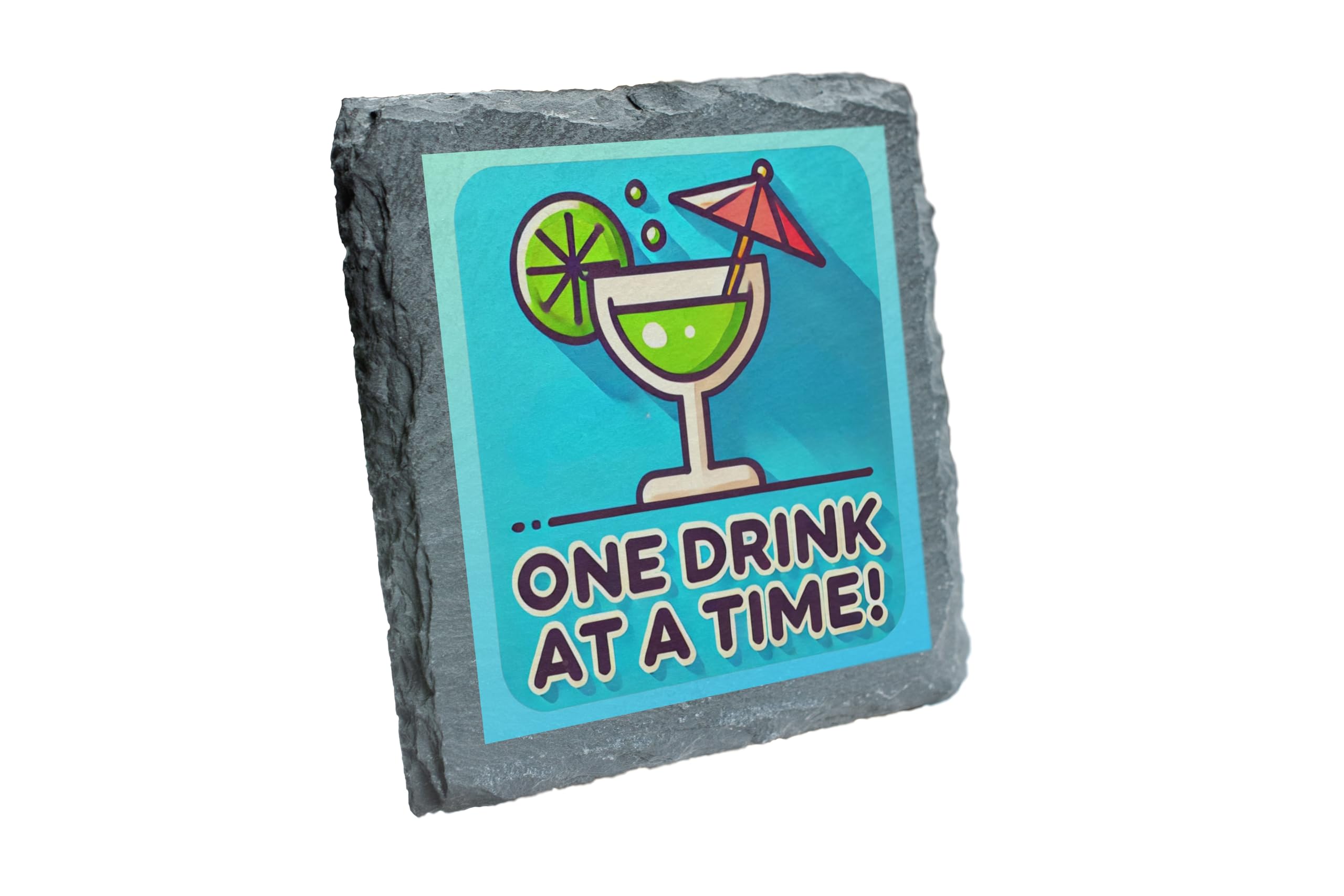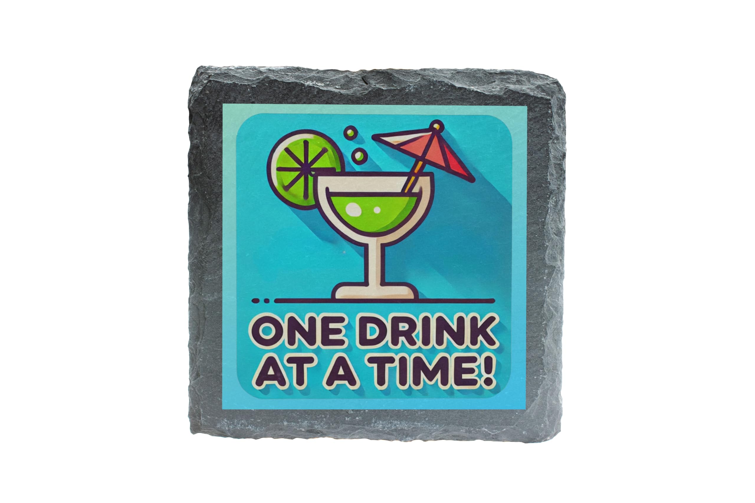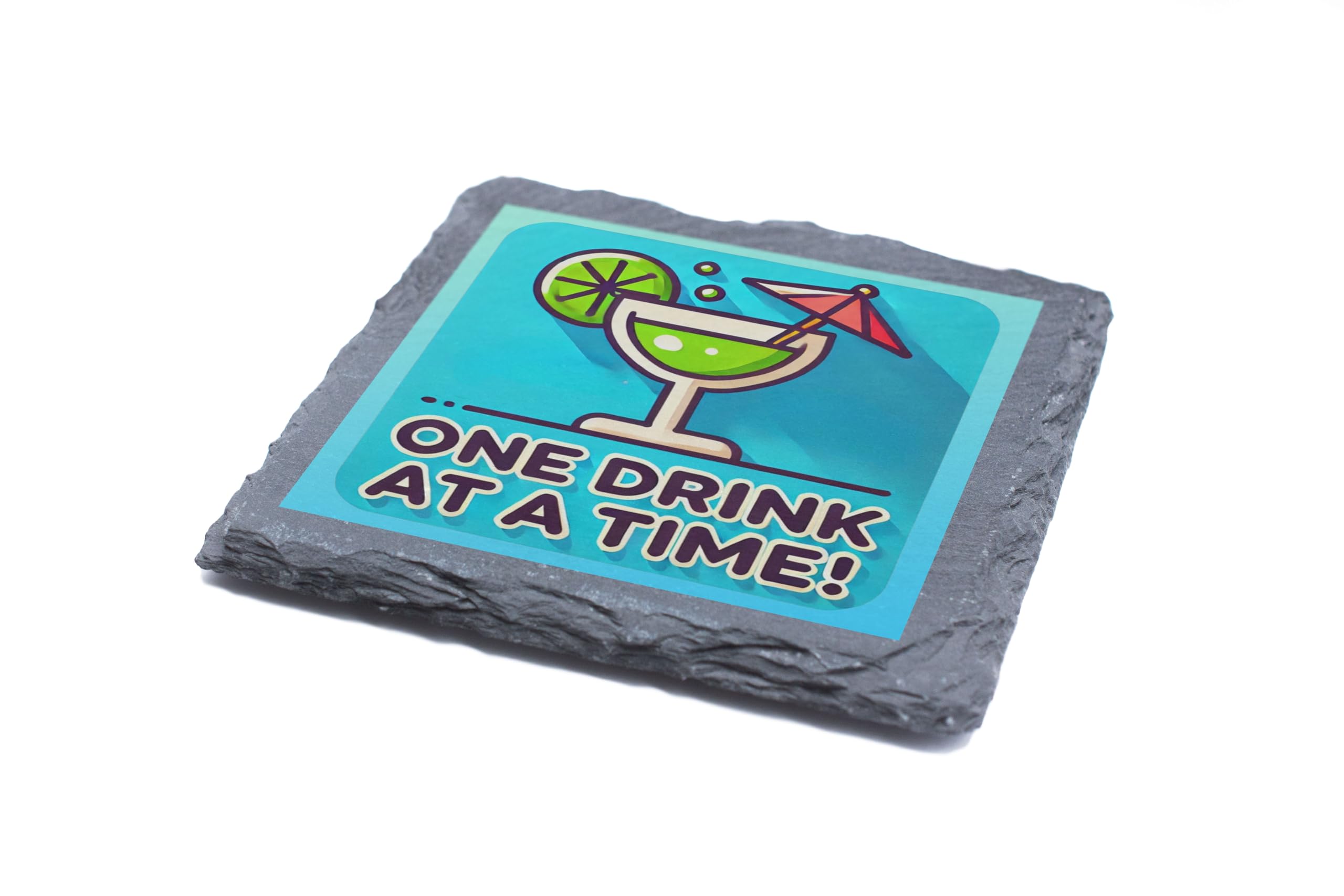 Bring a touch of tropical fun to your home with the "One Drink at a Time" Slate Coaster. Featuring a vibrant design of a refreshing cocktail and a playful message, this coaster is perfect for cocktail enthusiasts and party lovers alike. Made from high-quality natural slate, it combines functionality with style, protecting your surfaces while spreading good vibes. Whether you're hosting a party or enjoying a quiet drink, this coaster is the perfect addition to your drinkware collection.