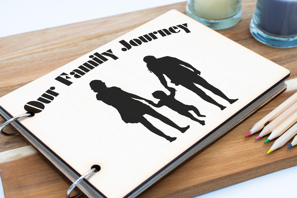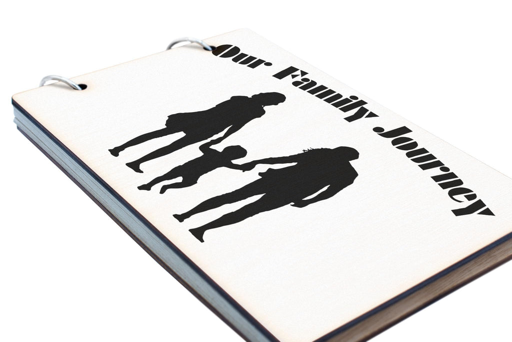 Capture and preserve your family memories with 'Our Family Journey: A Keepsake Memory Book'. This beautiful memory book is the perfect way to document your family's unique story and cherish those special moments for generations to come. The book features 25 recycled pages, making it an eco-friendly choice, and a wooden cover for a touch of elegance. The full colour front cover showcases a simple yet elegant silhouette design of a family, symbolising the essence of togetherness and love.