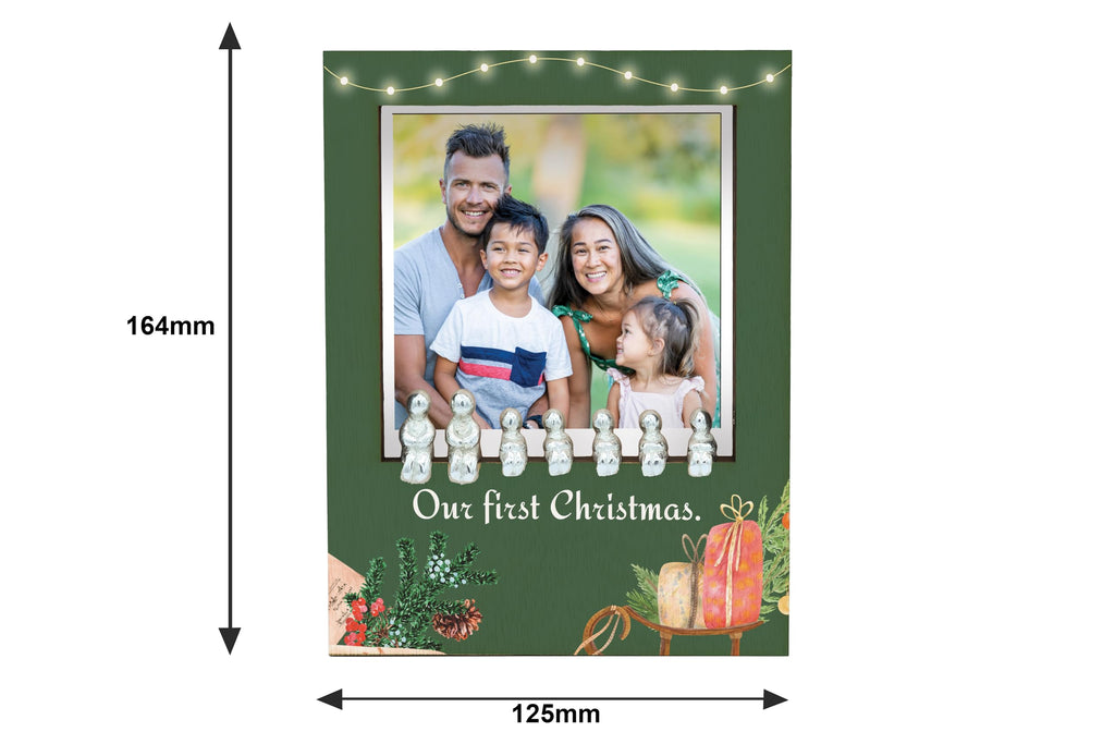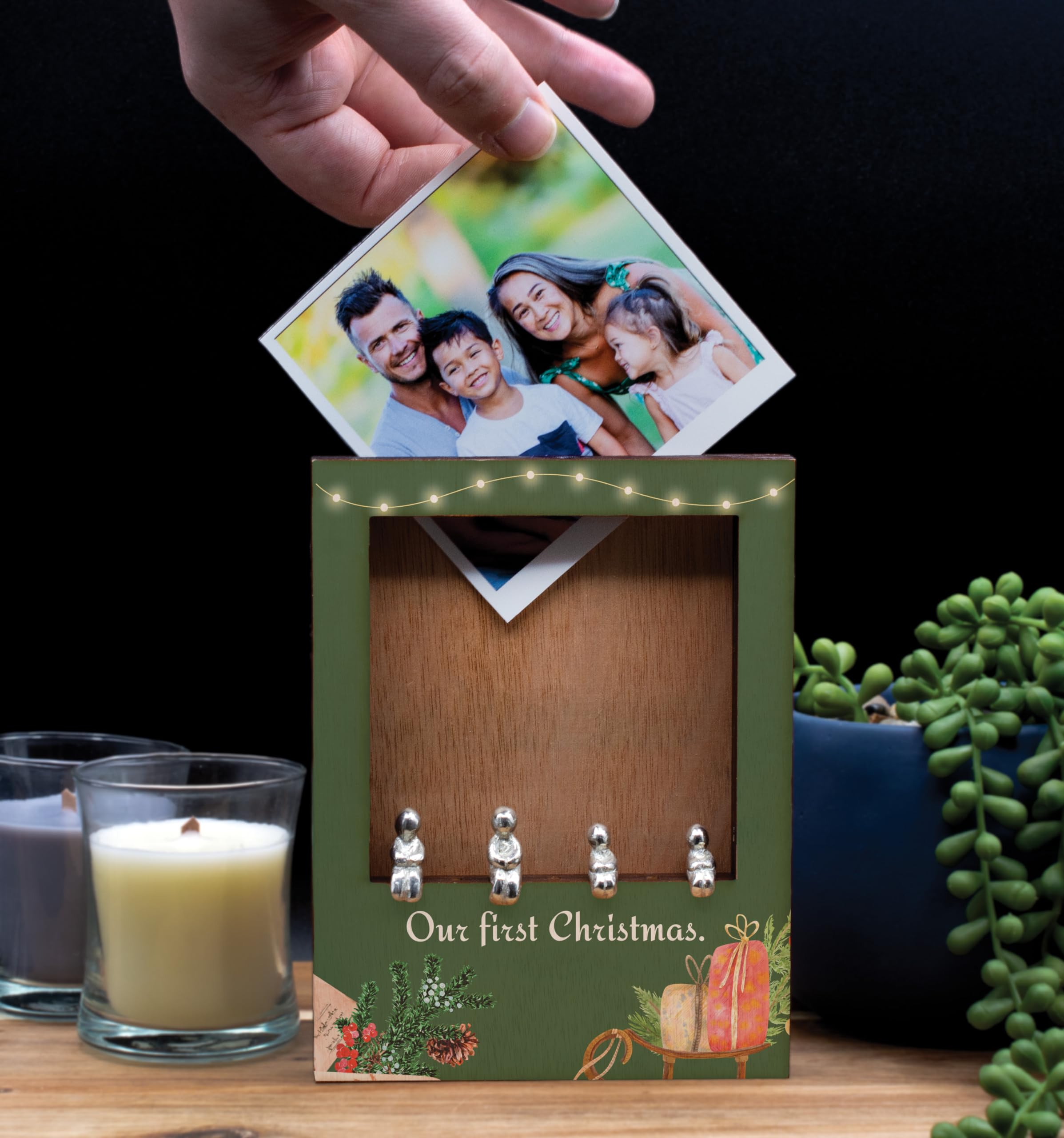 Our First Christmas- Create Your Own Family Combination, Home Decor, Includes Family People to Slot in Frame - Colourful Christmas Decoration & Gift