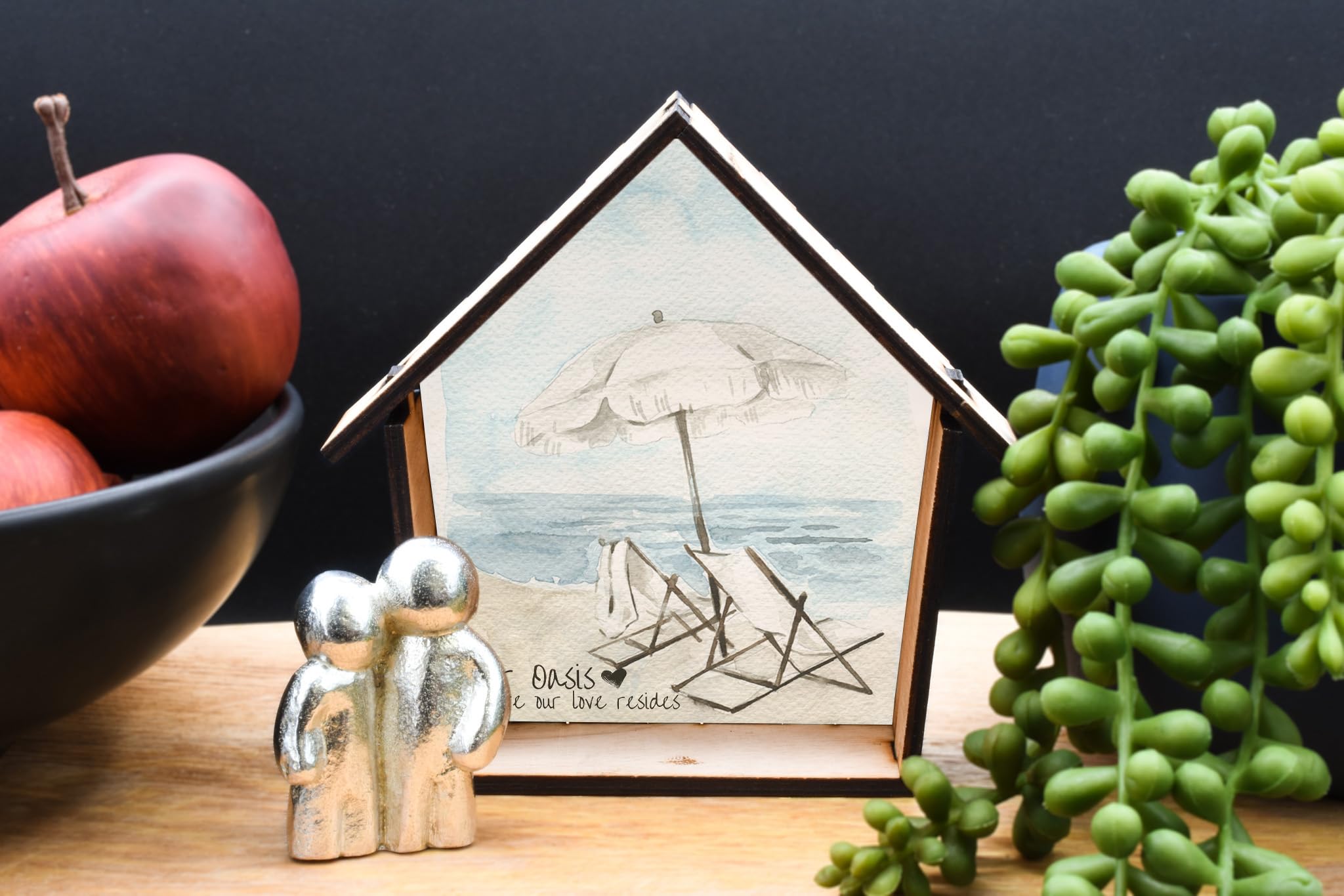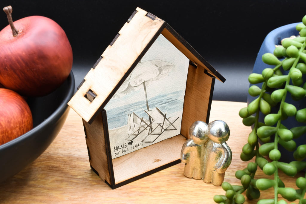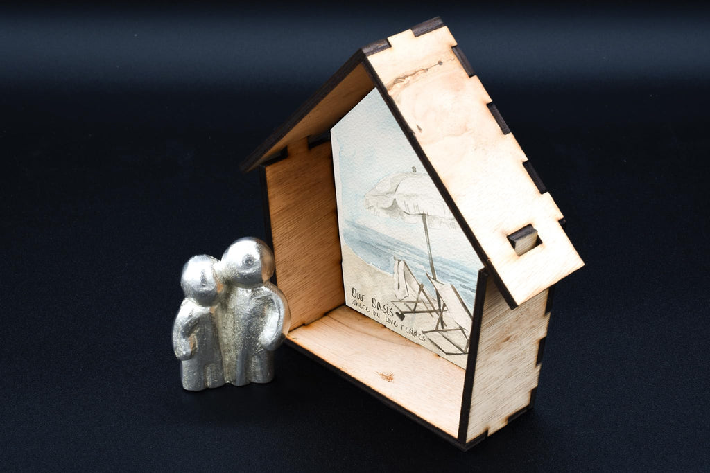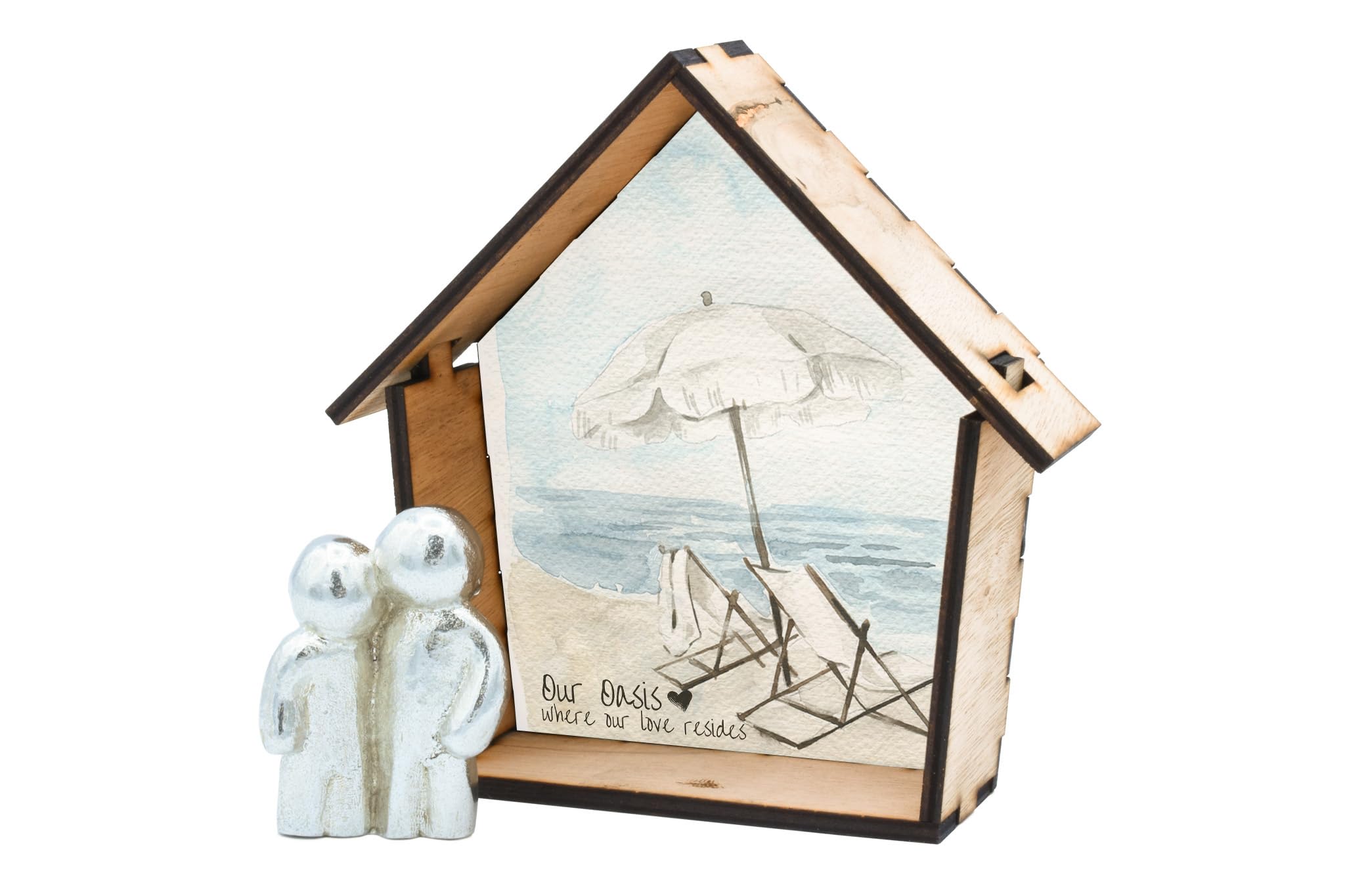 Create a charming and romantic atmosphere in your home with Our Oasis of Love: Romantic Couple Hugging Wooden House Ornament. This unique and beautifully crafted wooden ornament features a full-colour beach scene background, making it an ideal addition to any home decor. The intricate detailing and vibrant colours of this ornament perfectly capture the essence of romance and love. The ornament showcases a loving couple hugging in the centre, creating a heartwarming symbol of togetherness and affection. Made from quality wood, this ornament is durable and long-lasting, making it a perfect gift for couples, families, weddings, and other special occasions. With its free-standing design, it can be proudly displayed on any surface, such as shelves, mantles, or desks, adding a touch of elegance to any room. Bring the magic of love into your home with the Our Oasis of Love: Romantic Couple Hugging Wooden House Ornament.