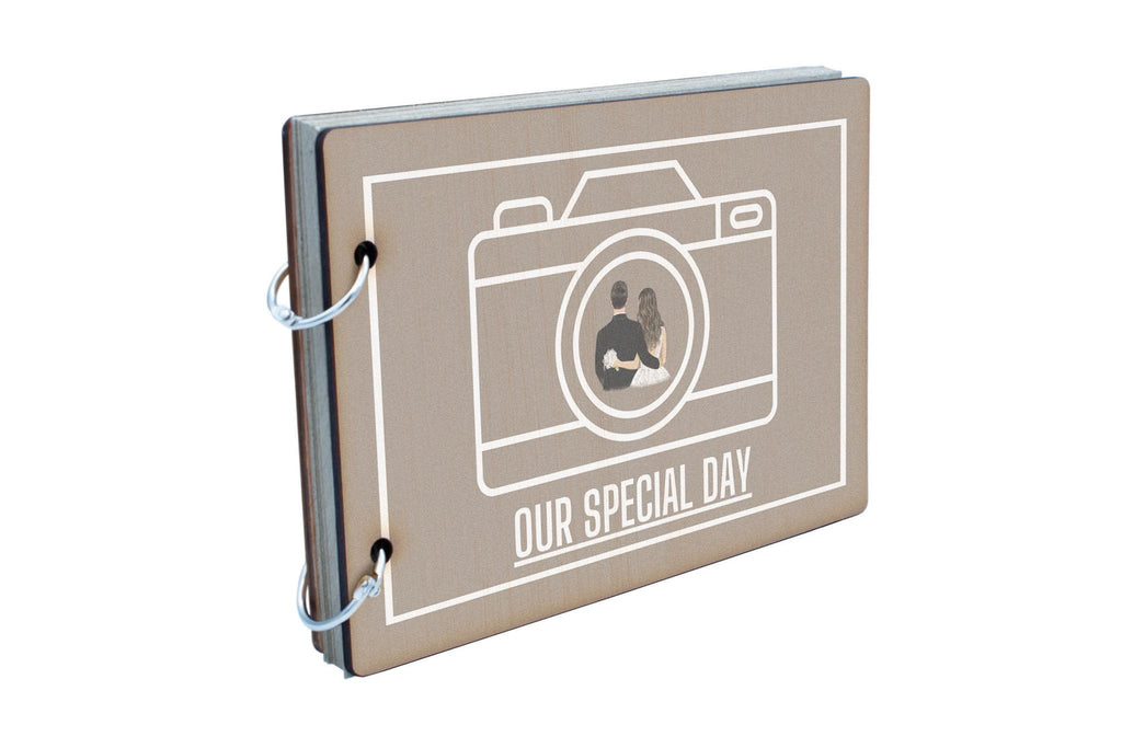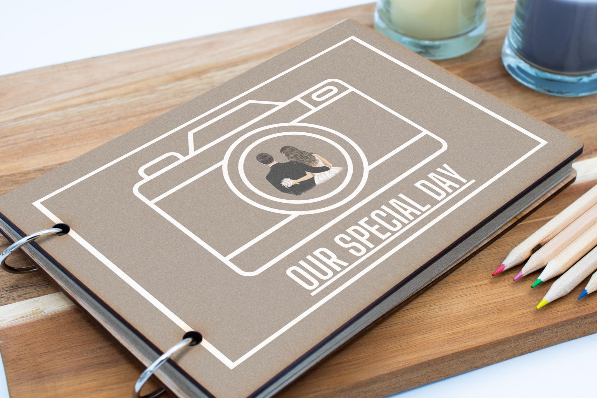 - Wooden cover adds elegance while full colour front cover shows a wedding inspired design