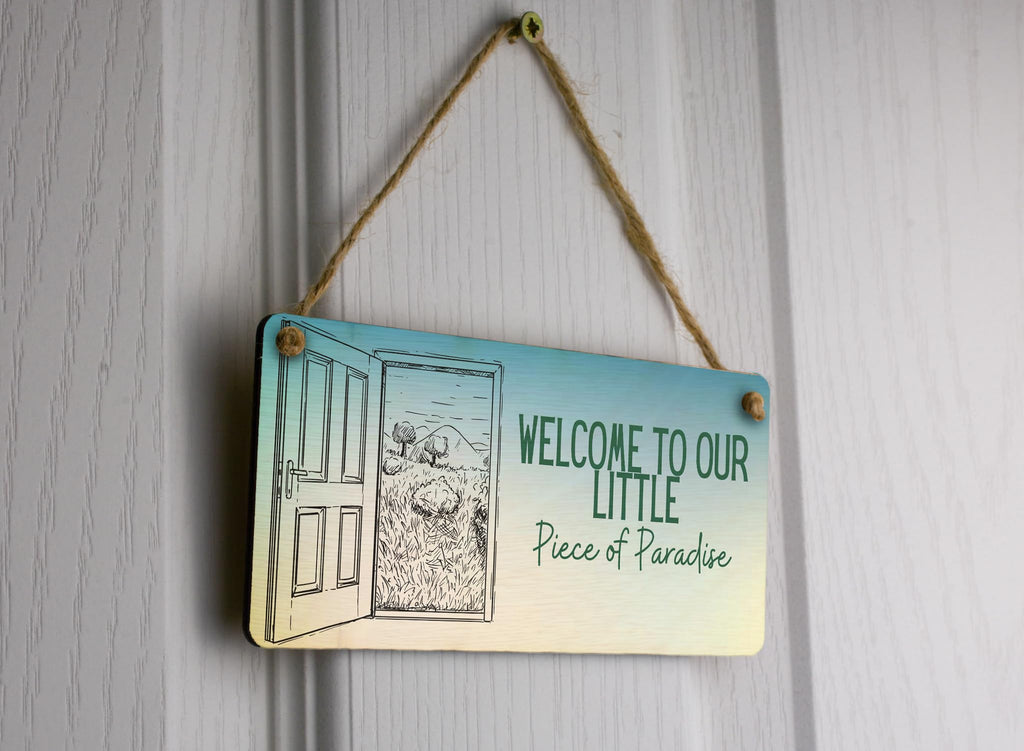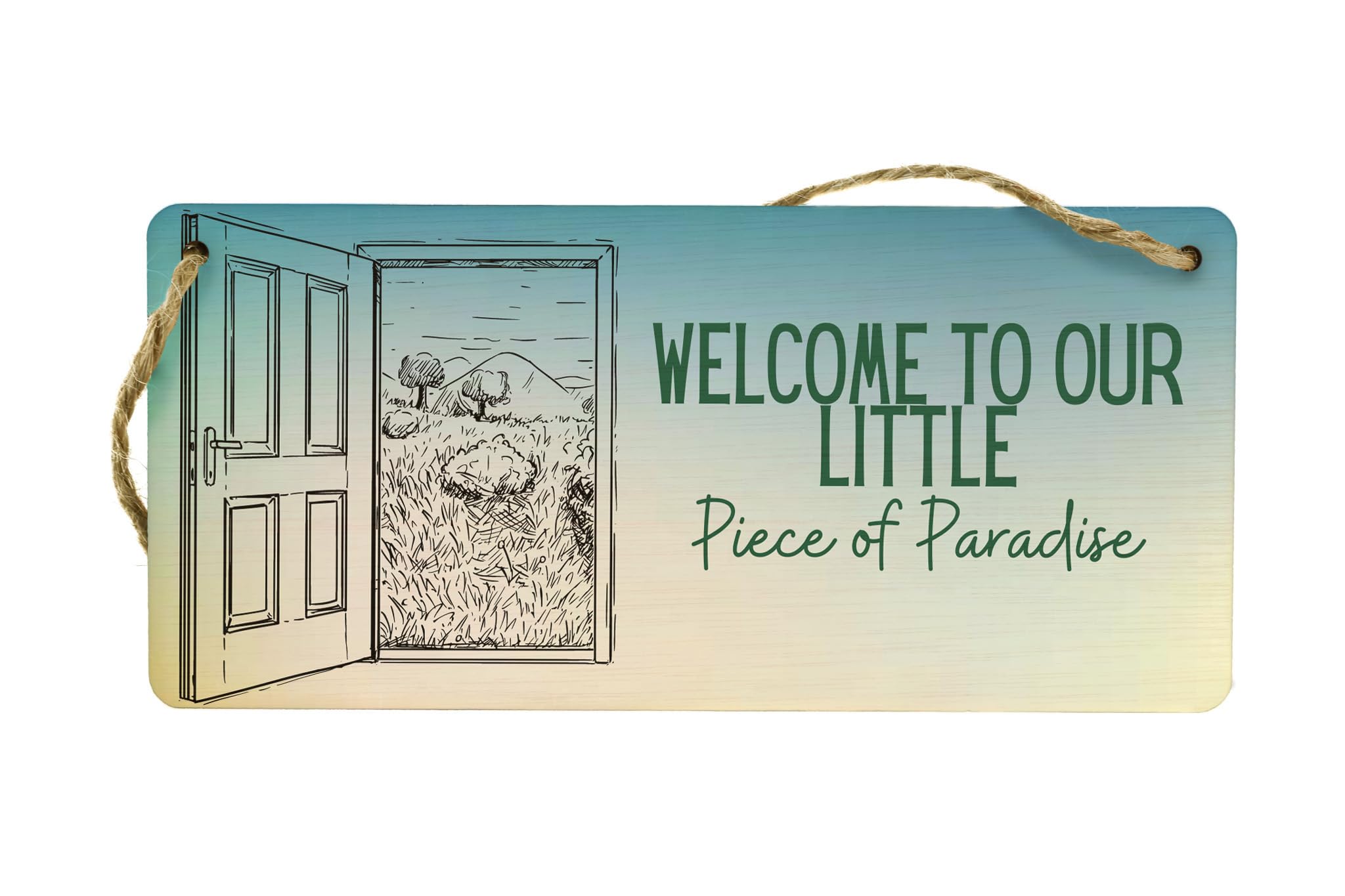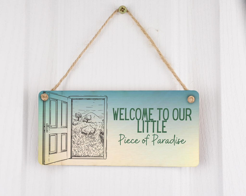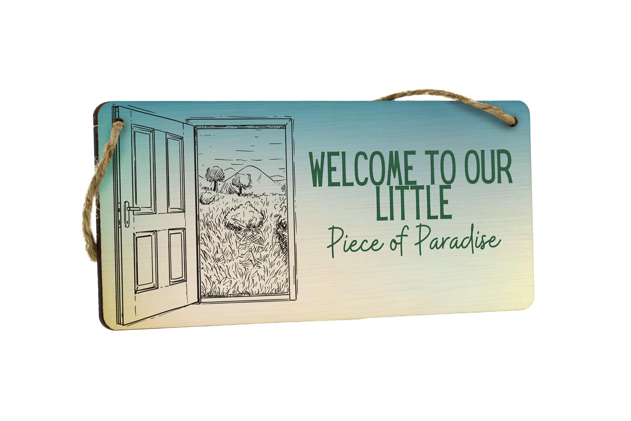 Introduce a touch of paradise to your home with this stunning Paradise Welcome Wooden Hanging Plywood Sign. Crafted from high-quality plywood, this sign offers a unique and rustic charm that will enhance your home decor. The full color design features a beautiful depiction of tropical scenery, creating a peaceful and inviting atmosphere. Hang it on your front door to welcome guests or display it in your living room as a stylish wall art. This versatile sign is perfect for holiday home decor or as a year-round addition to your space. Let everyone know they're stepping into your little piece of paradise with this eye-catching plywood sign that adds a pop of color and warmth to any room.
