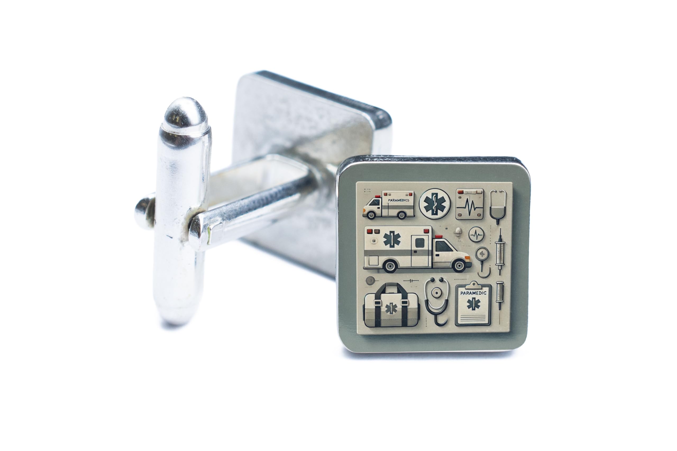 Celebrate the dedication and bravery of paramedics and healthcare professionals with these unique paramedic-themed cufflinks. Featuring intricate designs of ambulances, stethoscopes, and other emergency medical symbols, these cufflinks are a stylish and meaningful way to honor those who save lives. Crafted with premium materials and a polished finish, these cufflinks are designed for both durability and elegance. Perfect for formal events or casual outings, they add a professional yet personal touch to any outfit. Whether you?re gifting a paramedic, EMT, or aspiring medical professional, these cufflinks are a thoughtful token of appreciation for their hard work and commitment. Show your support for healthcare heroes with this standout accessory.