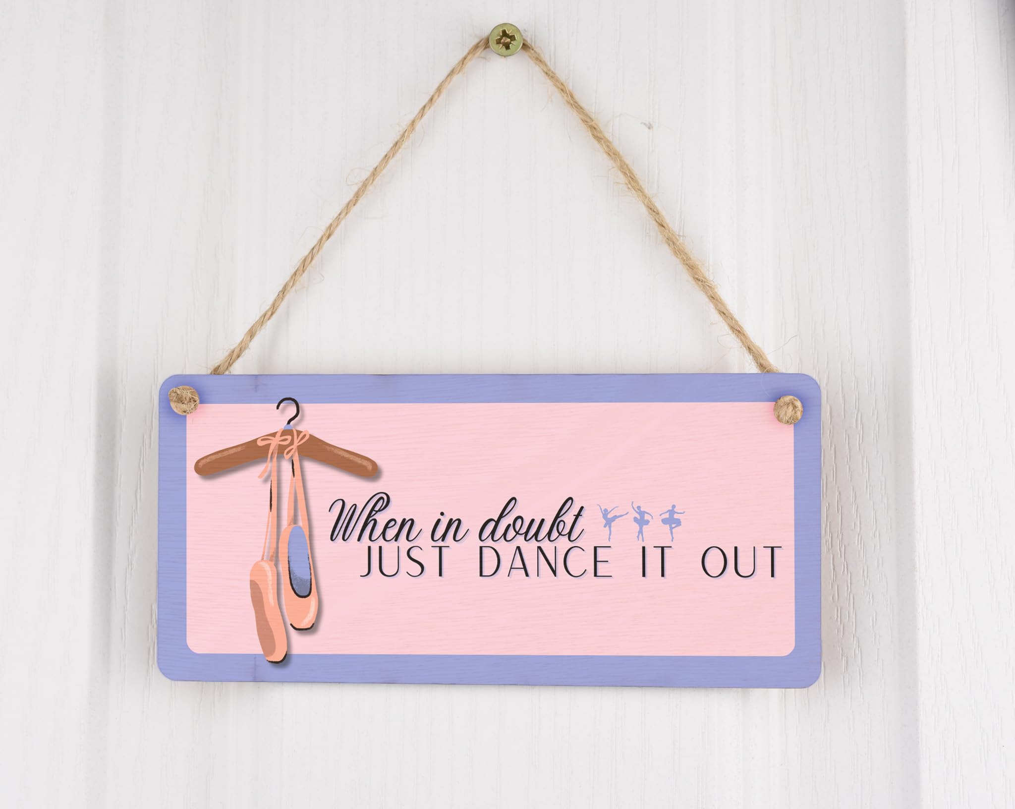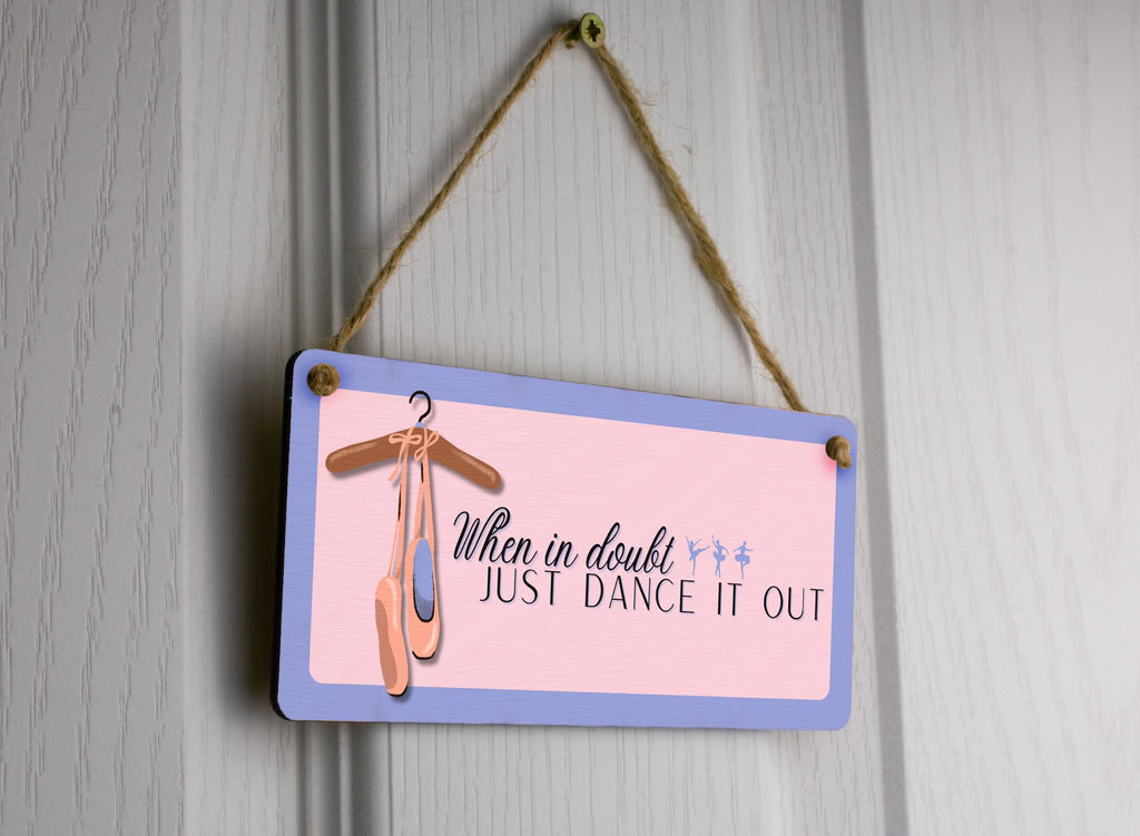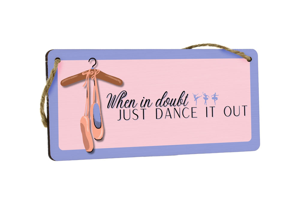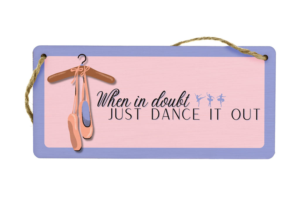 Enhance the elegance of your dance studio or add a touch of femininity to any living space with our Pink Dance Studio Plywood Hanging Sign. This exquisite piece of dance wall art is crafted from high-quality plywood, ensuring its durability and long-lasting beauty. The sign features a stunning full-color design of a graceful ballerina, perfectly complemented by the bold text that reads 'When in Doubt, Dance It Out'. Designed as a thoughtful gift for her, this hanging sign is a must-have for dance enthusiasts and ballet lovers alike. It adds a touch of charm and inspiration to any room, making it an ideal addition to girls' room decor or as a stylish statement piece for your home.n Crafted from premium plywood, our hanging sign exudes a rustic yet modern aesthetic. The combination of the natural wood grain and the vibrant pink color creates a visually striking contrast that effortlessly draws attention to the artwork. Measuring X inches, this plywood sign is lightweight and easy to install, making it a hassle-free addition to your decor. Whether you're a professional dancer, a dance instructor, or simply someone who loves to dance, this full-color ballerina gift will truly resonate with your passion. It serves as a constant reminder to embrace the power of dance, even in times of doubt. Showcase your love for ballet and transform any space into a dance-inspired haven with this girly wall art. Product Features: - Crafted from high-quality, durable plywood - Full-color design of a graceful ballerina - Bold text that reads 'When in Doubt, Dance It Out' - Lightweight and easy to install - Perfect for dance studios, homes, or girls' rooms Elevate your decor and express your love for dance with our Pink Dance Studio Plywood Hanging Sign. Order now and bring the beauty of ballet into your life!