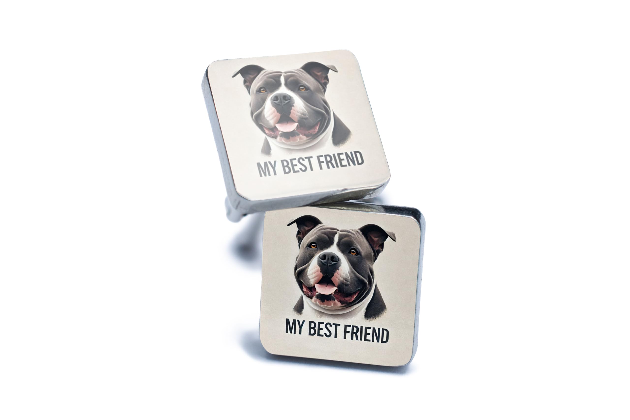 Show your love for your loyal Pitbull companion with these charming cufflinks featuring a heartwarming "My Best Friend" design. Crafted with attention to detail, these cufflinks highlight the strong and affectionate bond between you and your four-legged best friend. The high-quality finish ensures durability and elegance, making them a perfect addition to any outfit. Whether you're heading to a formal event or a casual gathering, these cufflinks allow you to carry a piece of your furry friend with you wherever you go. They also make a thoughtful gift for dog lovers who cherish their Pitbulls as much as you do.