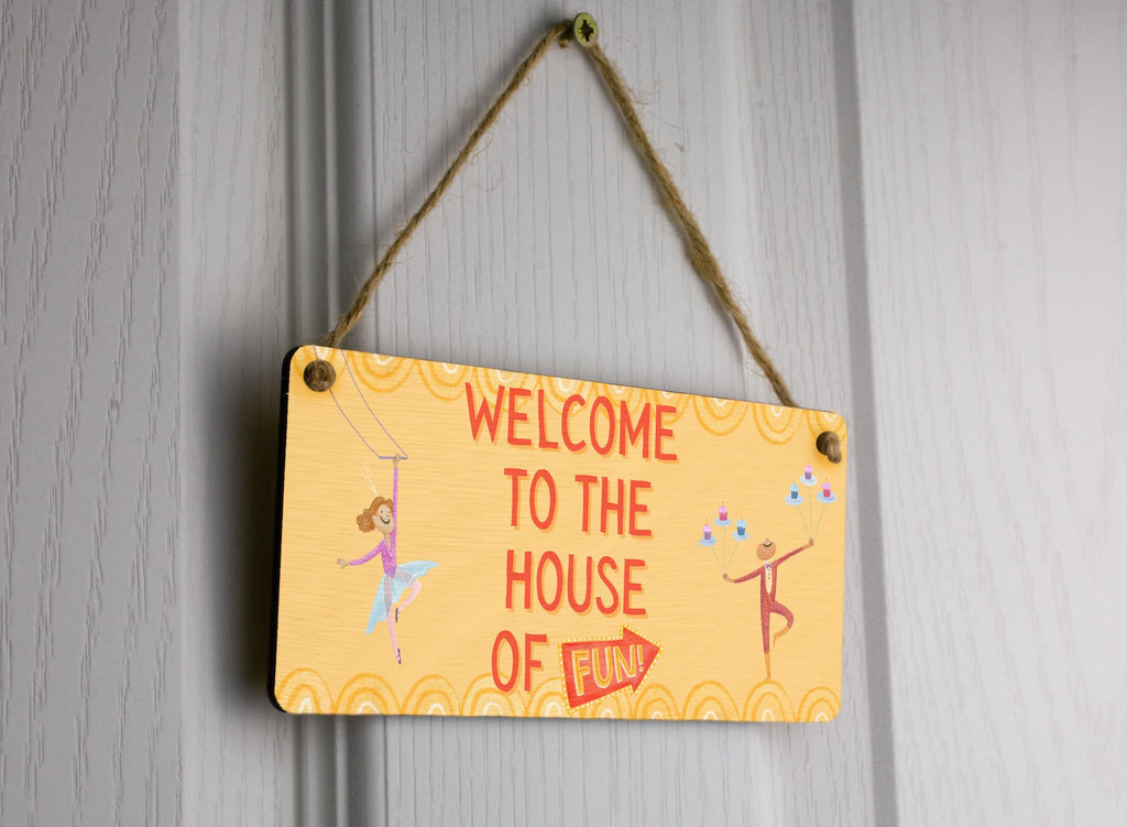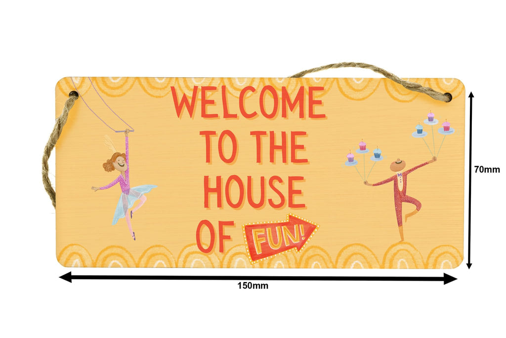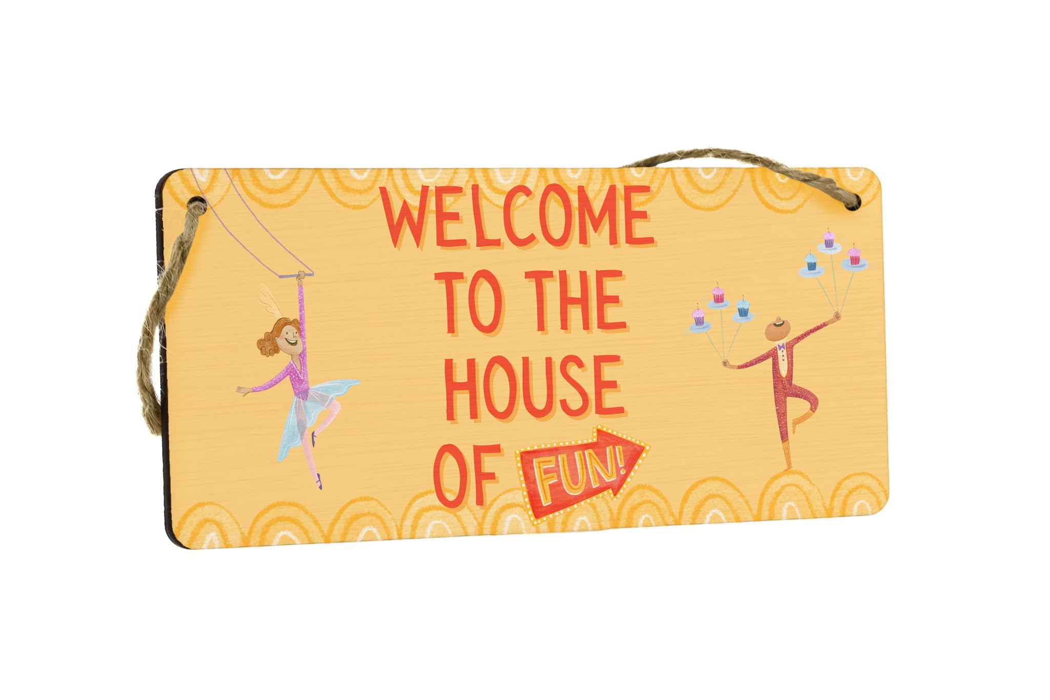 • Reads 'Welcome to the House of Fun' - brings joy and laughter to your home