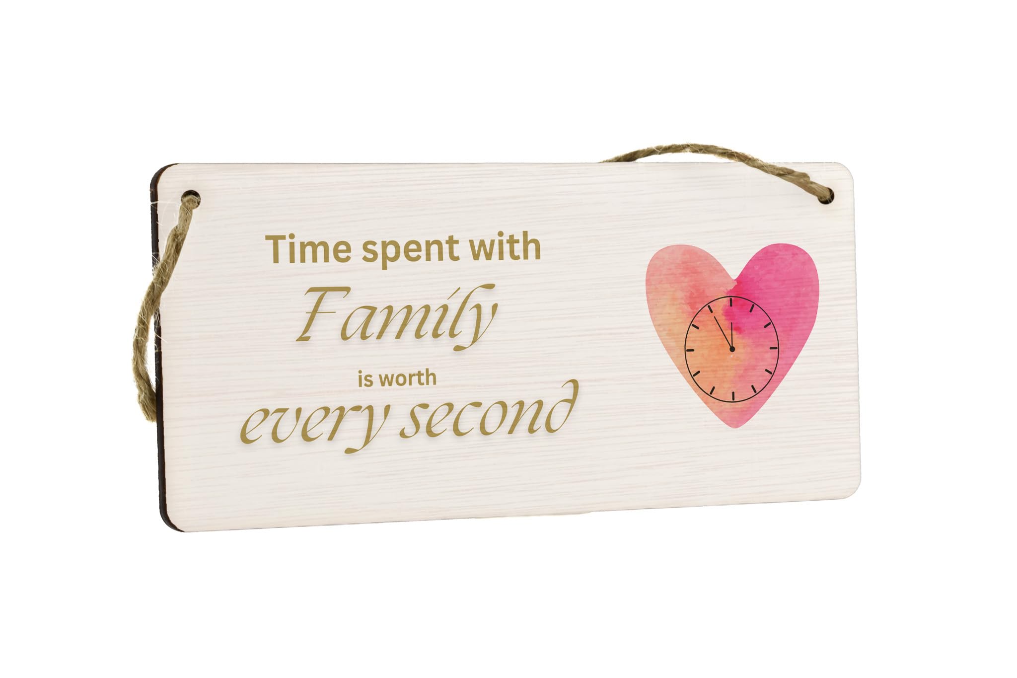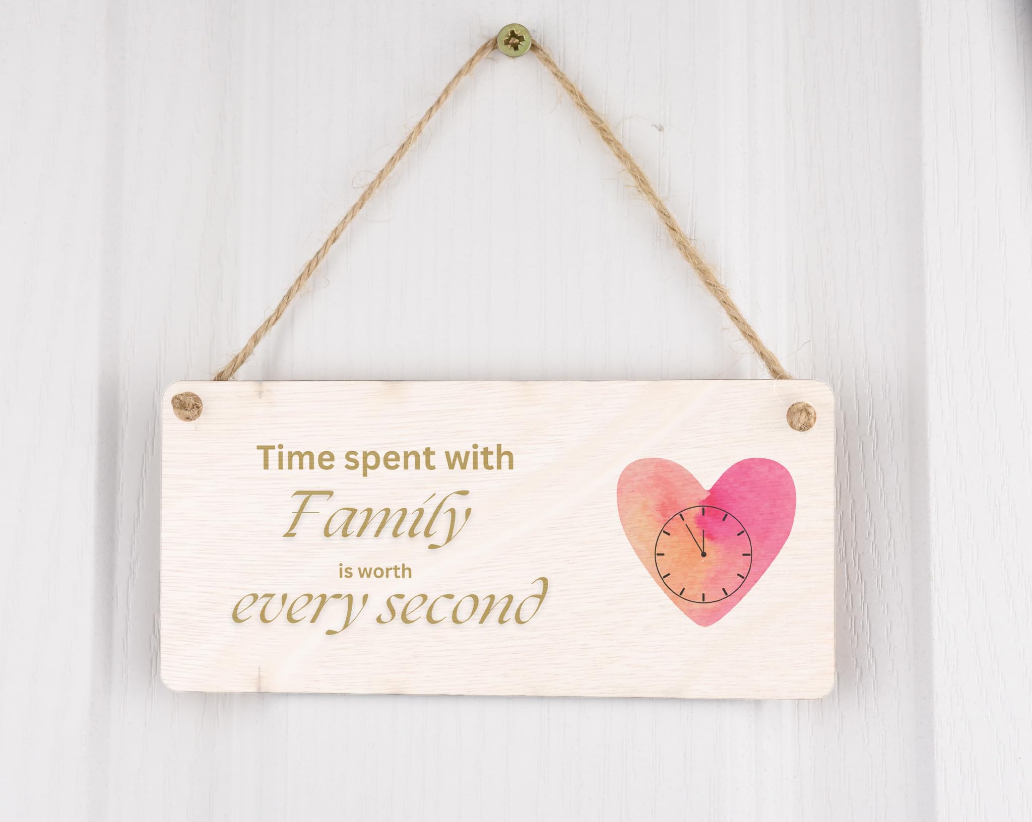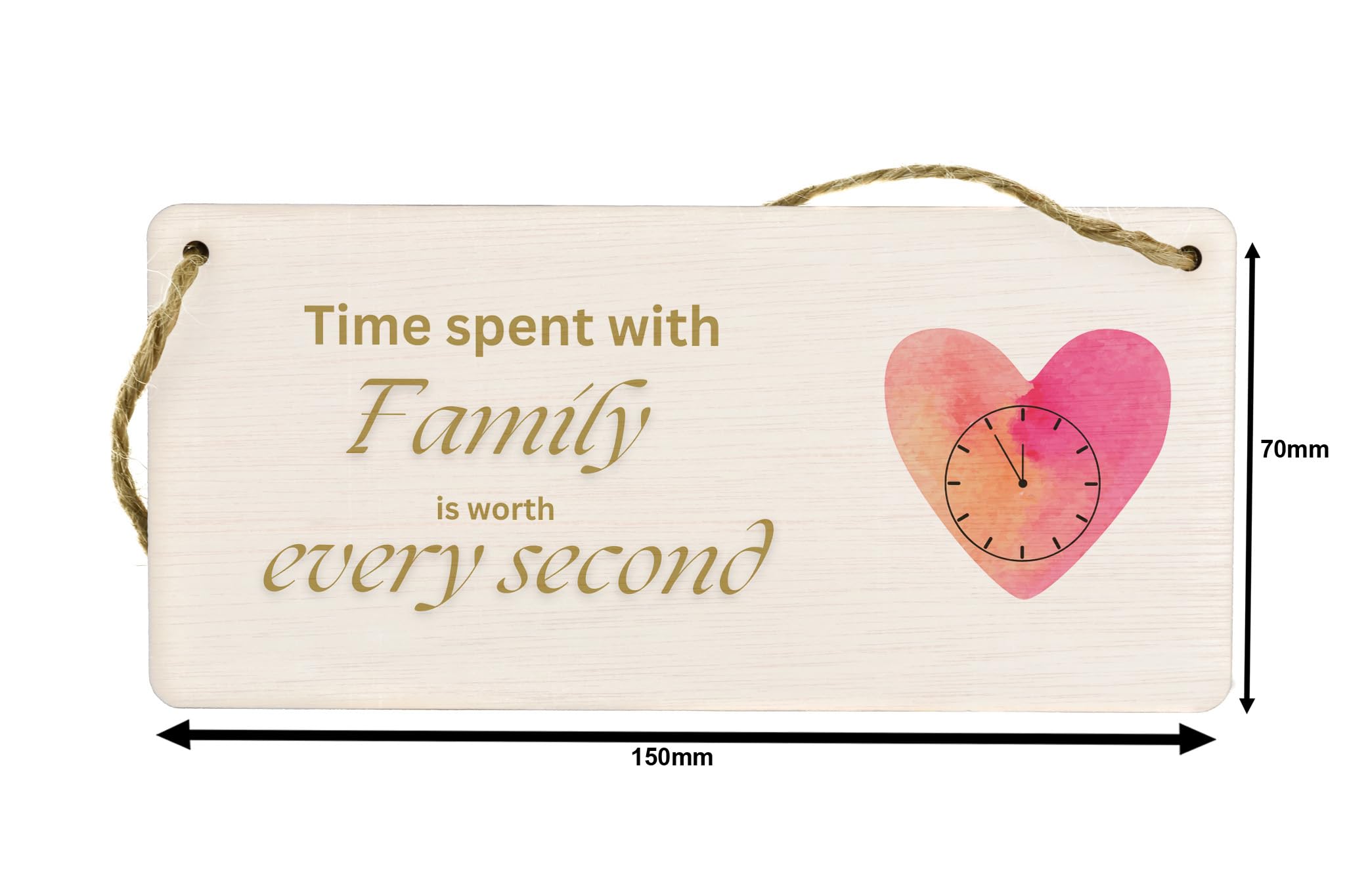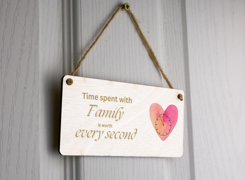 Add a touch of elegance and warmth to your home with this beautiful Plywood Family Sign. The sign features a heartfelt message that reads 'Time Spent with Family is Worth Every Second', reminding us all of the importance of cherishing our loved ones. Made from quality plywood, this hanging sign is built to last and will add a touch of charm to any room in your home. Whether placed in the kitchen, bedroom or living room, this sign will serve as a constant reminder of the value of family. A loving gift idea for Mum or Dad, this sign is perfect for occasions like Mother's Day, Father's Day, Christmas or birthdays. Make your loved one's day special with this elegant and timeless piece of home decor.