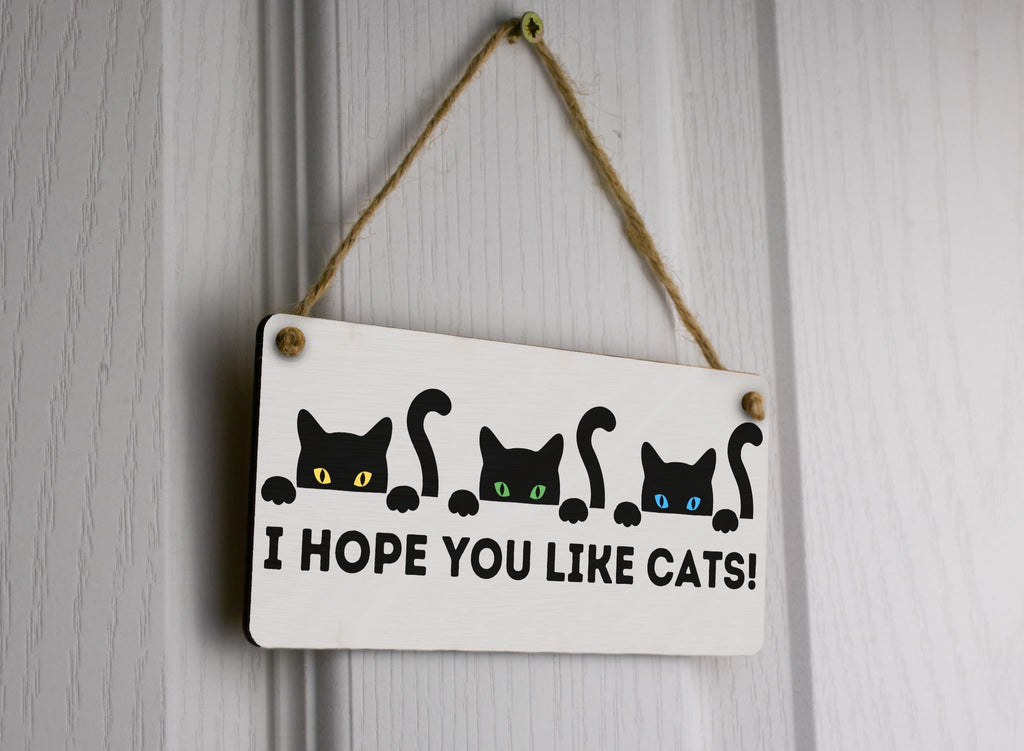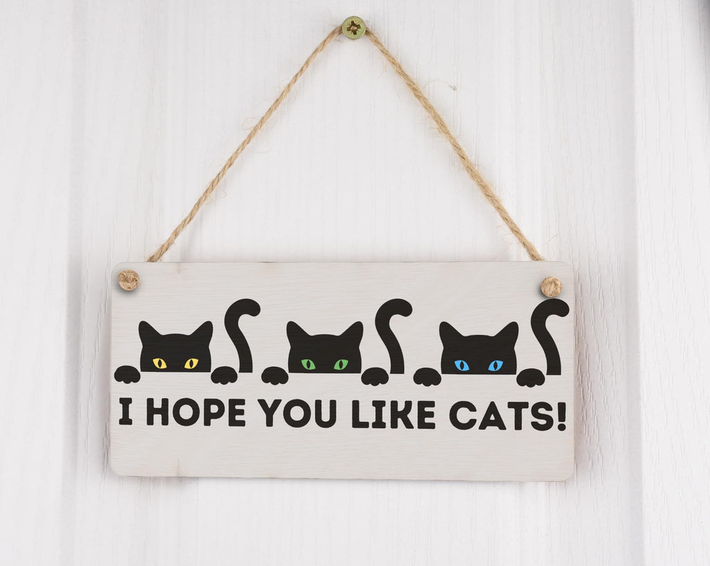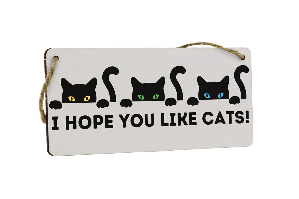 Plywood Hanging Cat Sign - I Hope You Like Cats - Funny Wooden Wall Decor - Full Colour Front Door Hanging