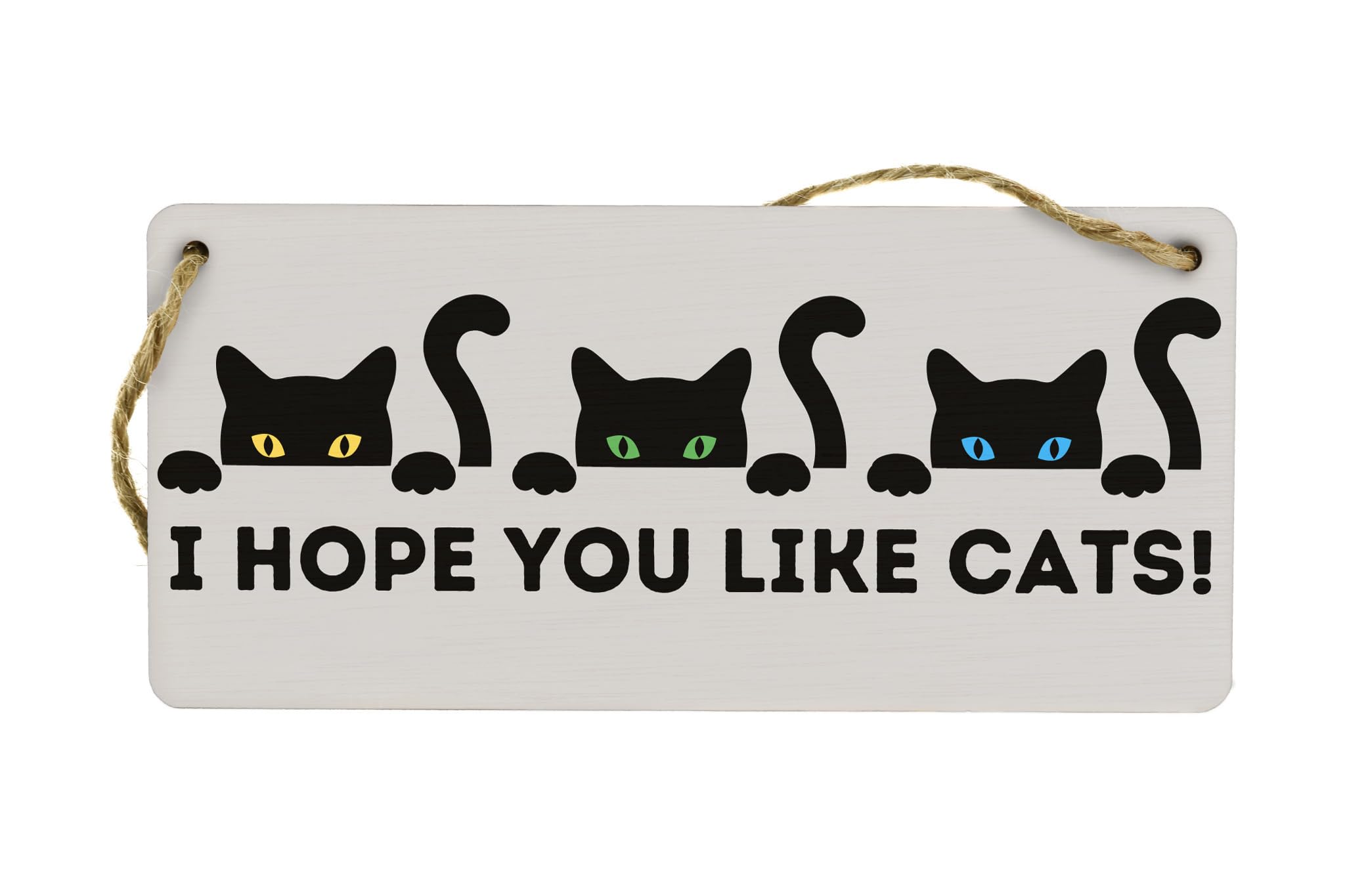 Introducing our Plywood Hanging Cat Sign - I Hope You Like Cats! This funny wooden wall decor will add a touch of humor and charm to any cat lover's home. Made from high-quality plywood, this hanging sign is durable and long-lasting. The full-color design and bold text make it easily readable from afar, ensuring that your love for cats is proudly displayed on your front door or any wall in your home. This unique cat wall hanging is a perfect addition to your cat-themed decor or a delightful gift for a fellow cat lover. Show off your love for cats with this hilarious and adorable hanging cat sign.