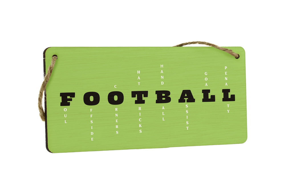 Add a touch of football flair to your little one's room with this Plywood Hanging Football Theme Sign. Made from quality plywood, this hanging sign is sturdy and durable. The vibrant, full-colour design features the word 'Football' printed in bold lettering, making it the perfect addition to any football-themed decor. Hang it on the wall, door, or window to instantly transform your boy's room into a football paradise. Whether you're decorating a nursery, playroom, or bedroom, this football sign is sure to impress. Get ready to score a winning goal with this fantastic piece of room decor.