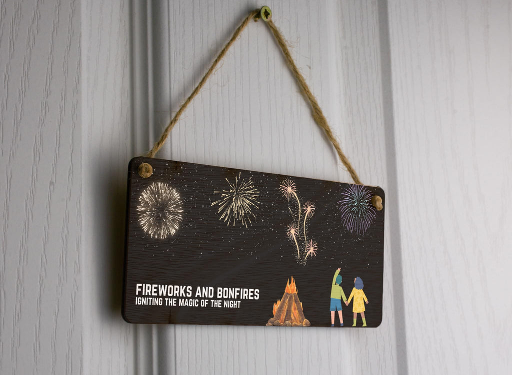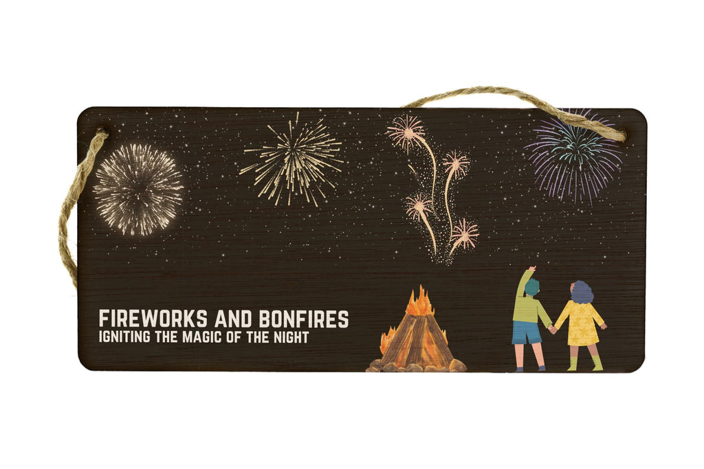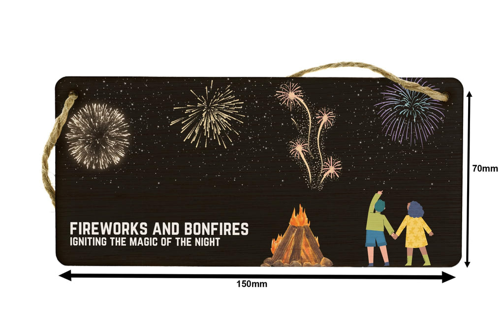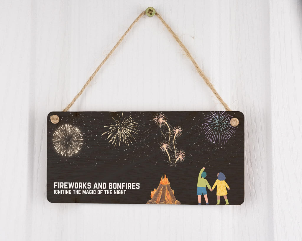 Introducing our Full Colour Plywood Hanging Sign: Autumn Fireworks & Bonfire Night! This unique and charming sign is the perfect novelty gift for home decor, families, and grandparents. It captures the essence of autumn and the excitement of bonfire night, igniting the magic of the night. Made from quality plywood, it features a stunning full colour design that reads 'Fireworks and Bonfires: Igniting the Magic of the Night'. Hang this sign in your home to bring warmth and festive cheer to any room. It's also a great gift option for your loved ones who appreciate the beauty of autumn and the thrill of bonfire night. Add a touch of charm and personality to your home with this delightful hanging sign!