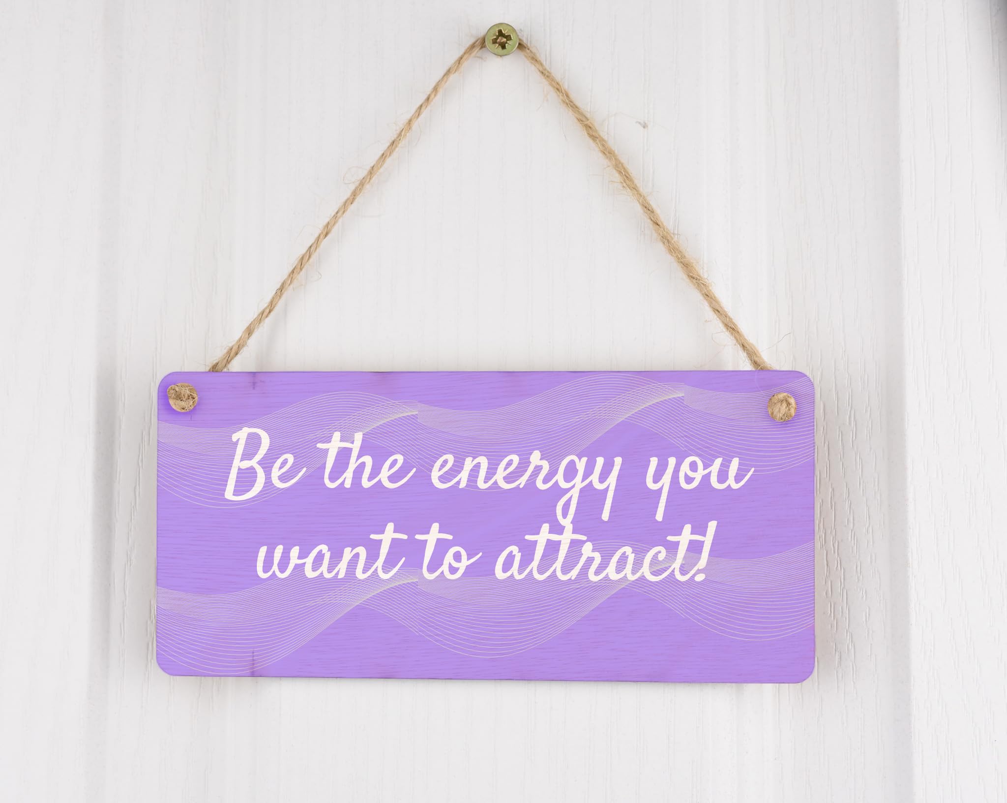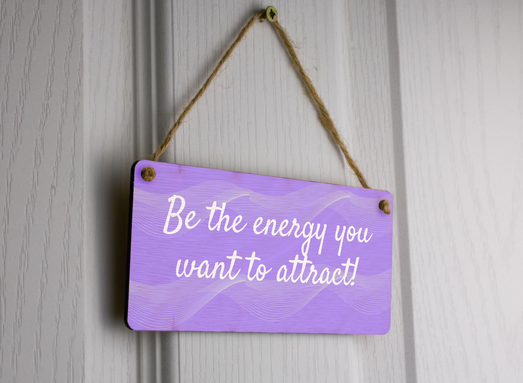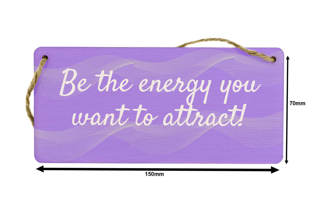 This beautifully designed full colour plywood hanging sign is the perfect addition to your home or office decor. With the uplifting message, 'Be the Energy You Want to Attract', this inspirational and motivational sign will serve as a constant reminder to radiate positivity and attract good vibes into your life. Made from premium quality plywood, this hanging sign is durable and long-lasting. Hang it on your wall or door to create a positive and welcoming atmosphere. It also makes a thoughtful gift for friends and loved ones. Add a touch of inspiration to any space with this unique and eye-catching full colour plywood hanging sign.