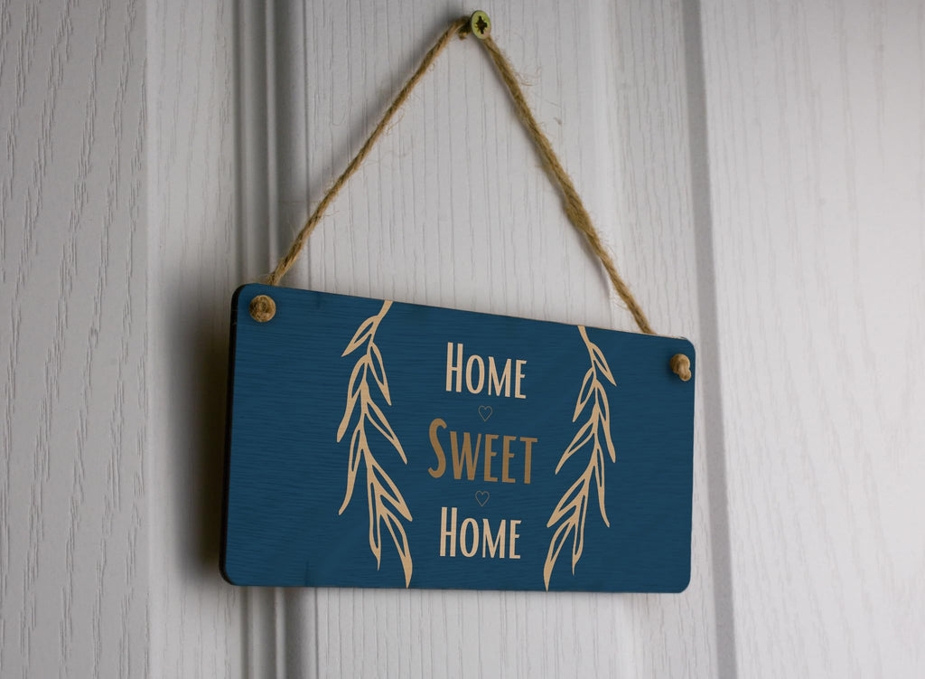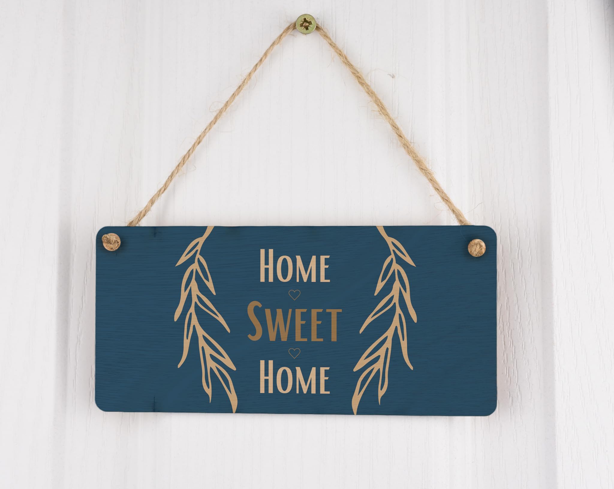 Add a touch of elegance to your home with this beautiful plywood hanging sign. Designed for couples, wives, husbands, girlfriends, and boyfriends, it makes a perfect gift for any occasion. With its full colour design and captivating 'Home Sweet Home' message, this sign will create a warm and inviting atmosphere in your living room or any other space in your house. Prioritise your home's center and make it the focal point of your decor with this exceptional piece.