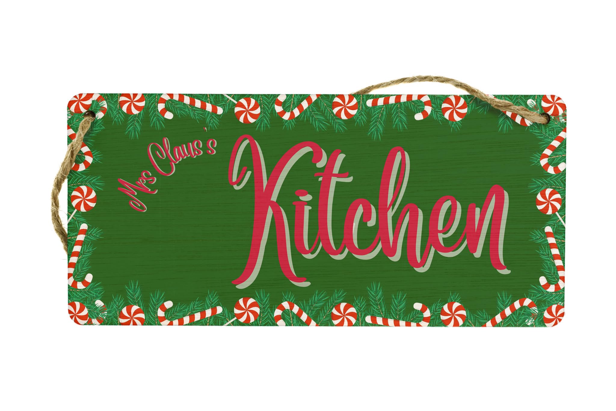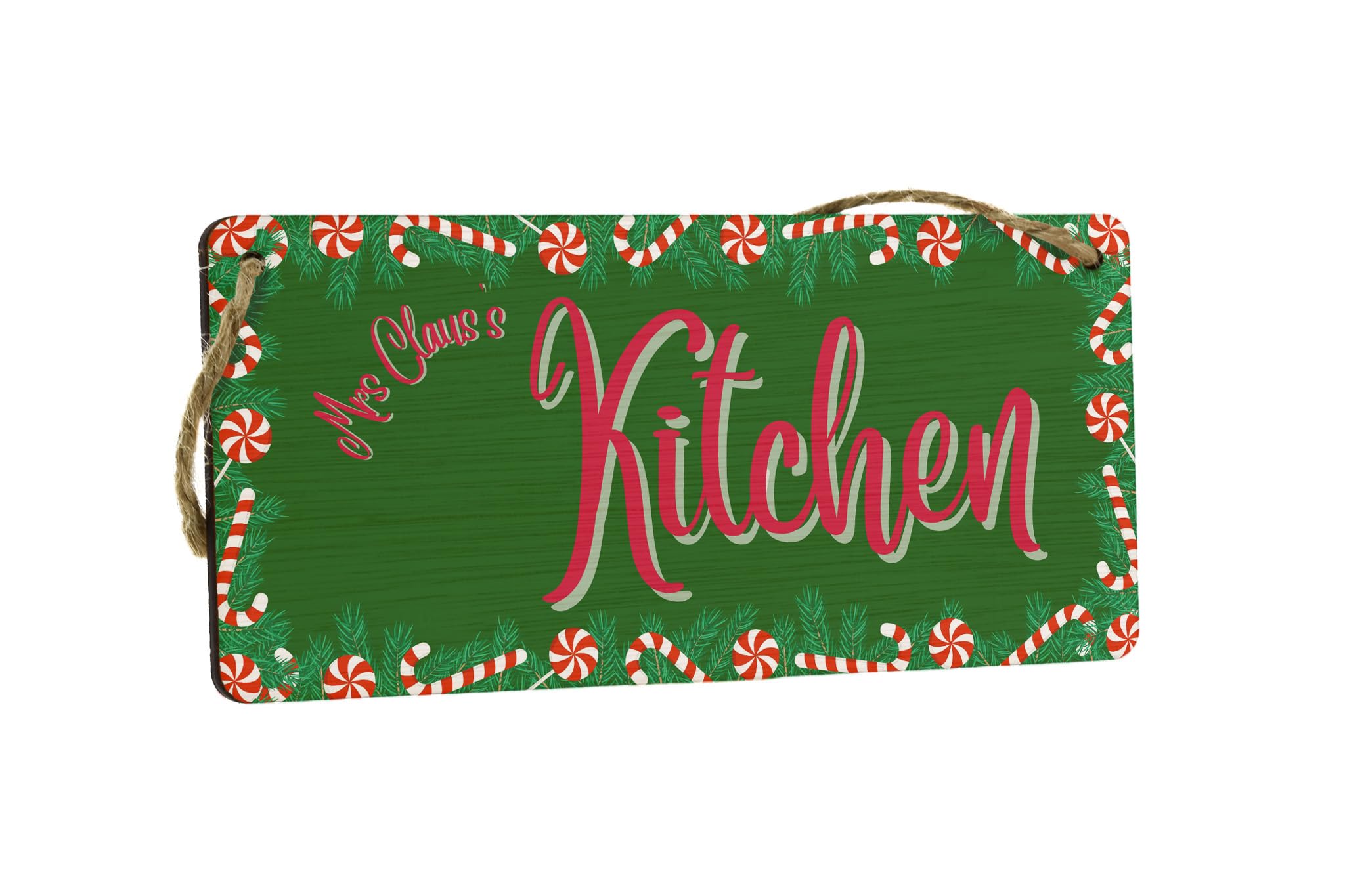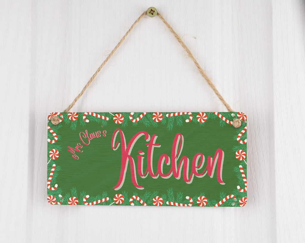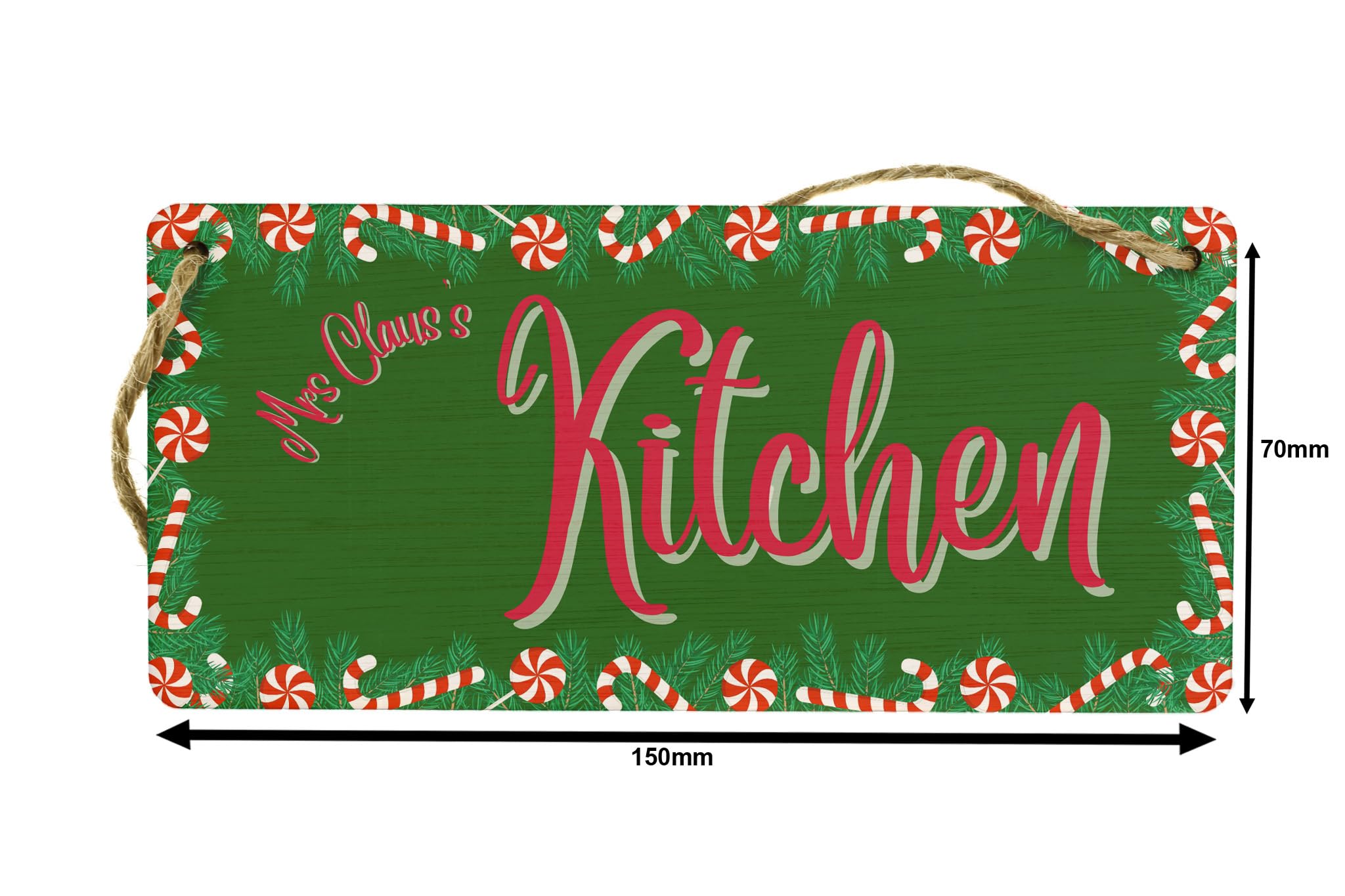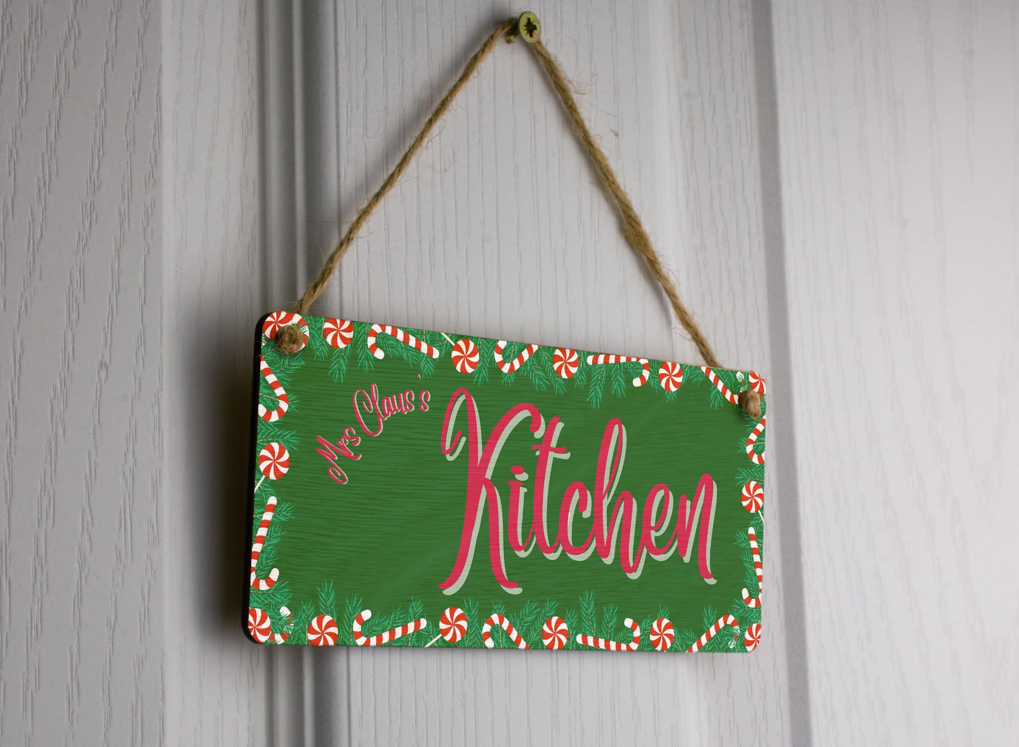 - Charming Plywood Hanging Sign with a full colour Festive Mrs Claus's Kitchen design