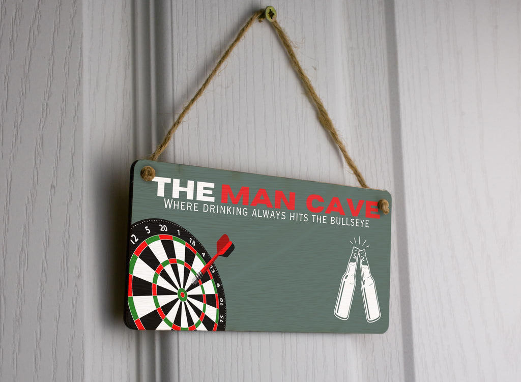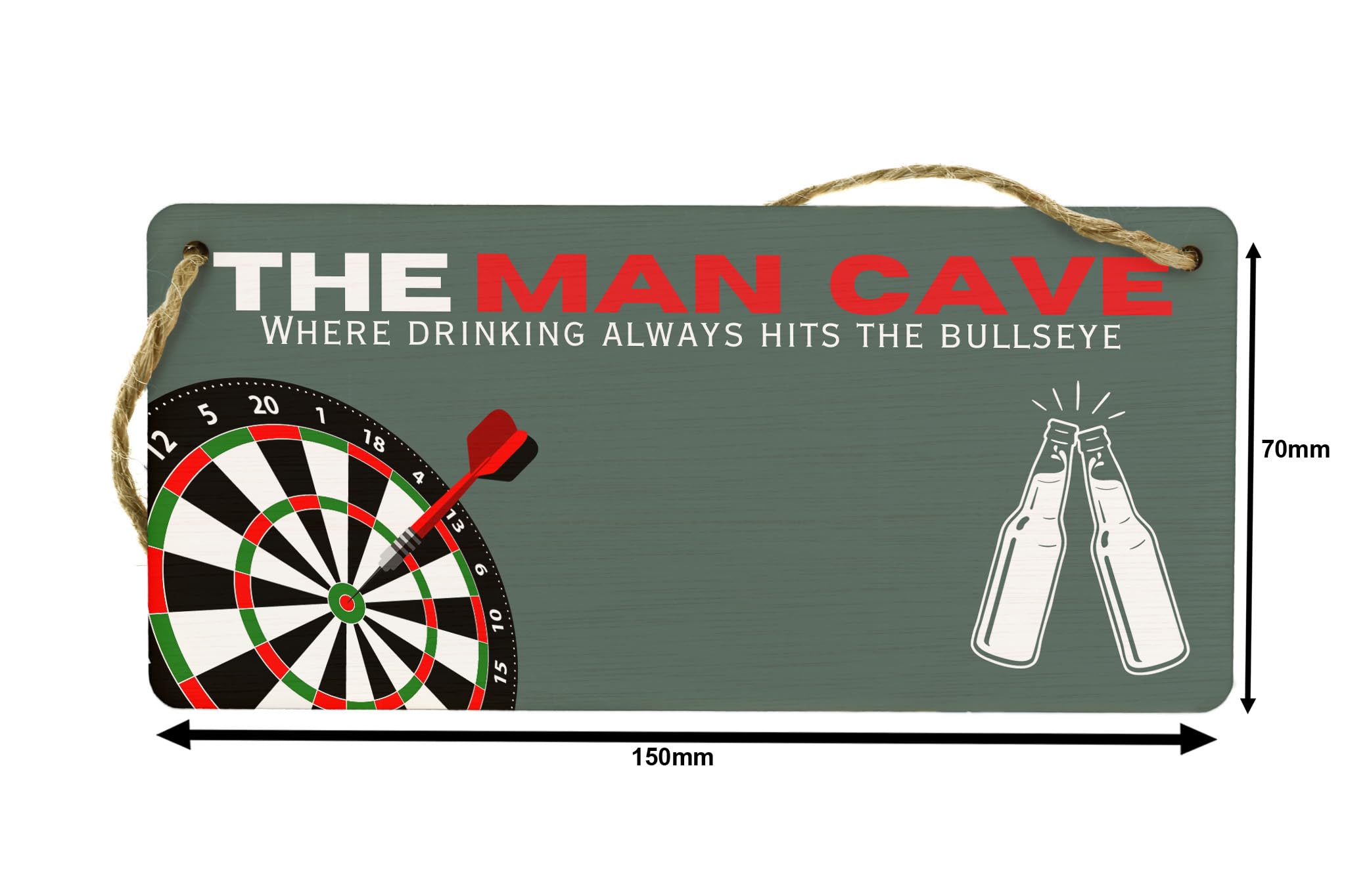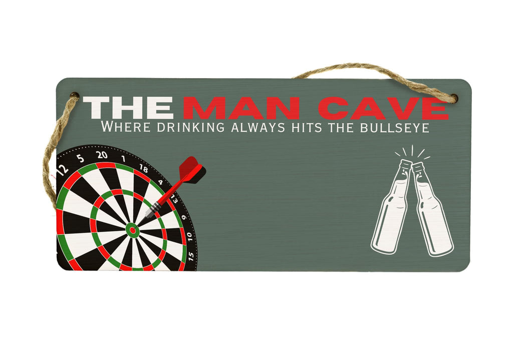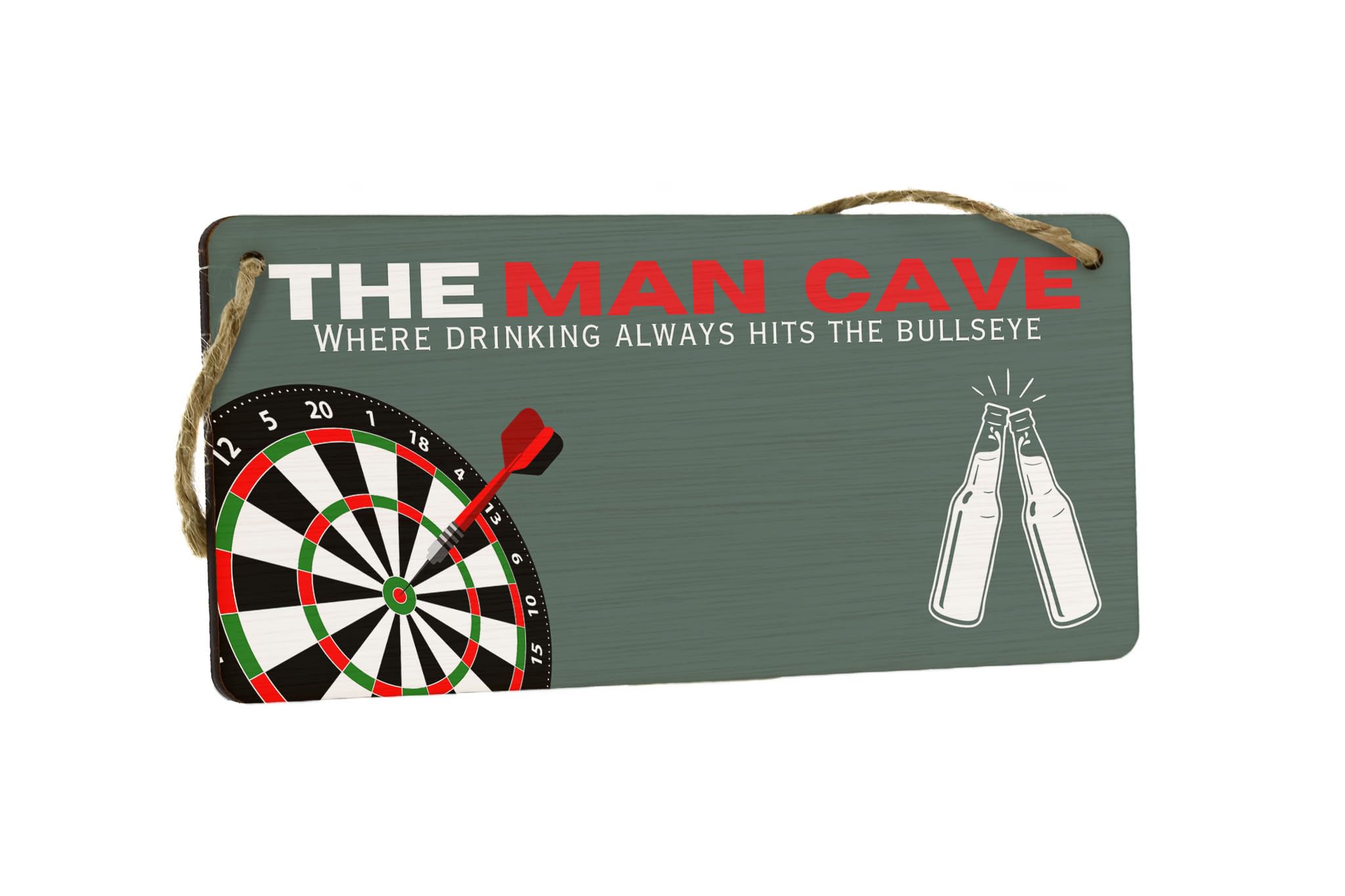 • Full-colour design with a bold statement 'The Man Cave where Drinking Always Hits the Bullseye'