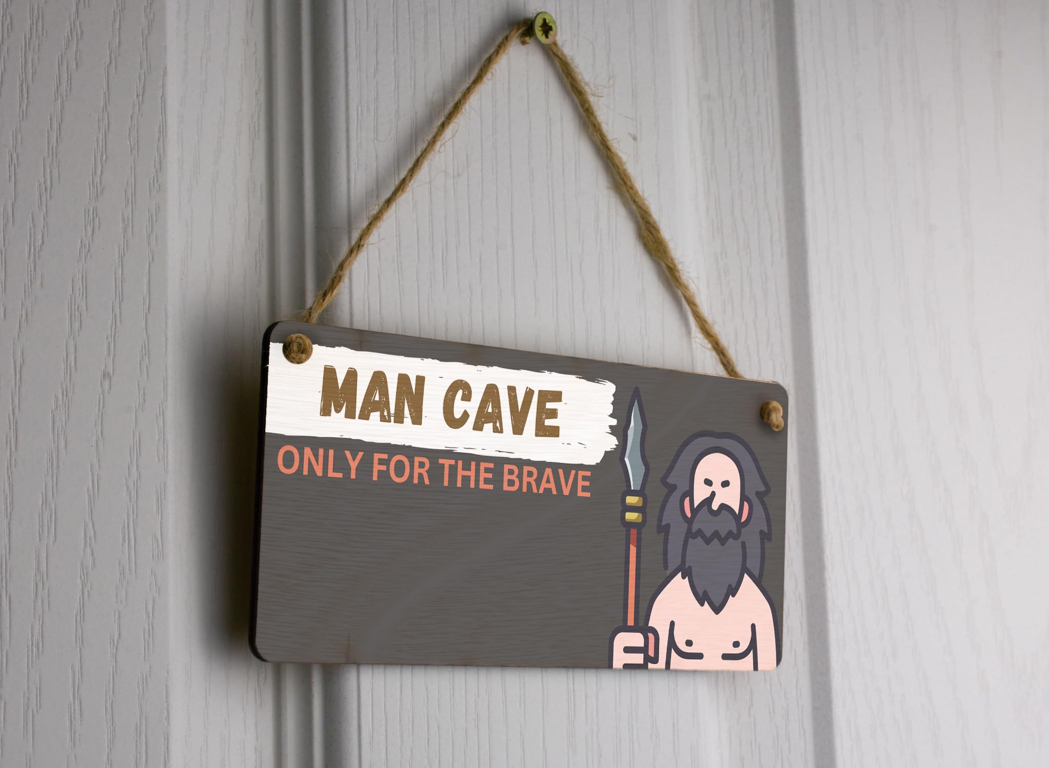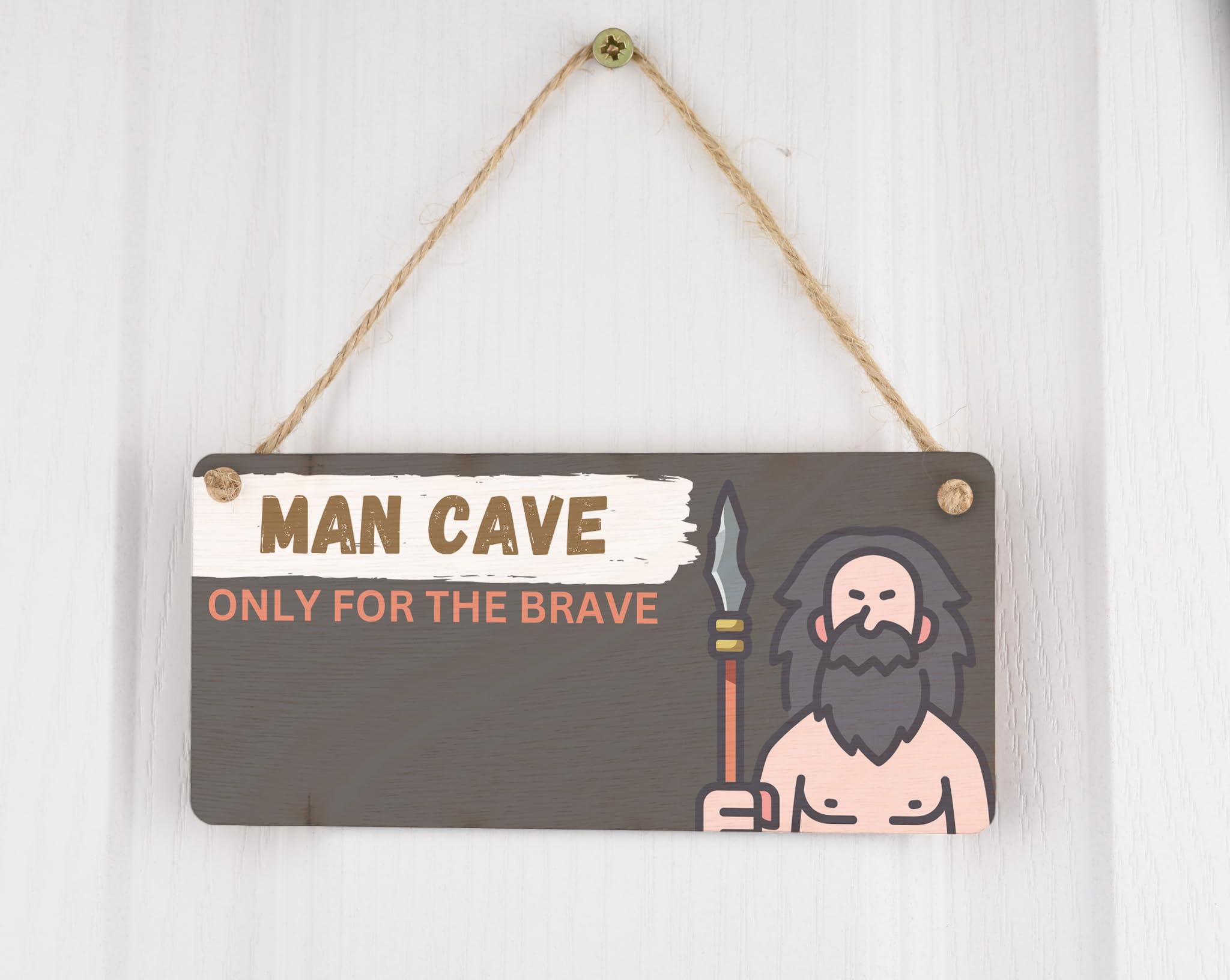 Introducing our Full Colour Design Plywood Hanging Sign, the perfect addition to any man cave! Made from quality plywood, this hanging sign is not only durable but also visually stunning with its full colour design. It serves as a unique and funny gift for him, making it ideal for dads, grandads, husbands, and boyfriends. Featuring a humorous message that reads 'Man Cave: Only for the Brave,' this sign will bring laughter and character to any home. Hang it proudly in your man cave or gift it to someone special to decorate their space. Get ready to prioritise style and laughter with this novelty gift!