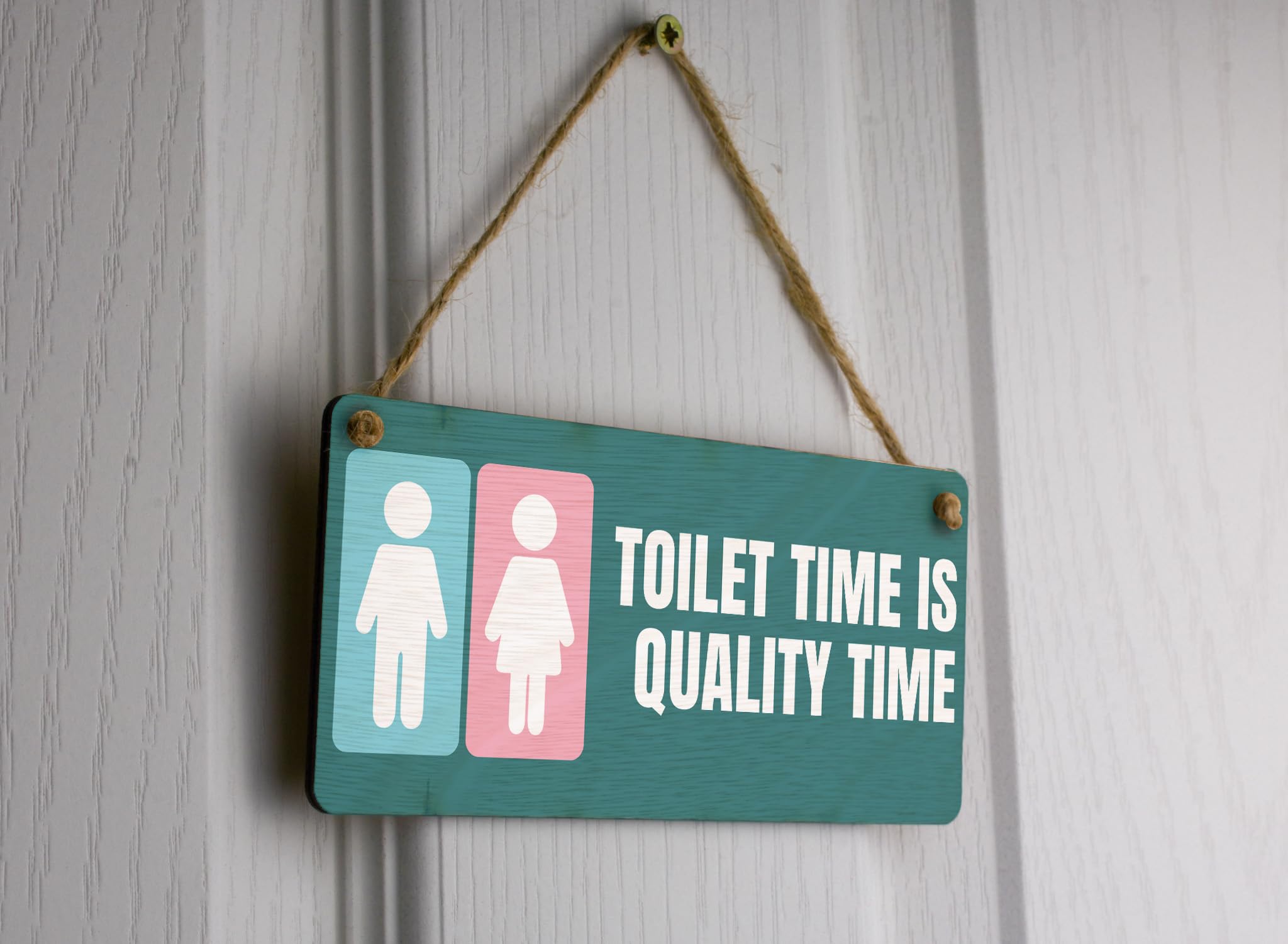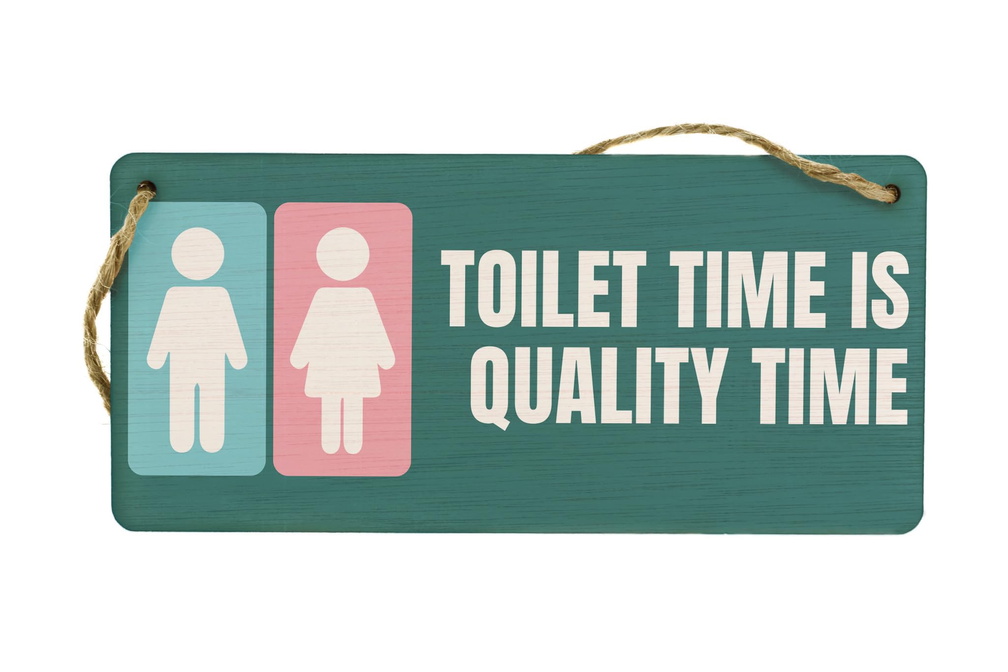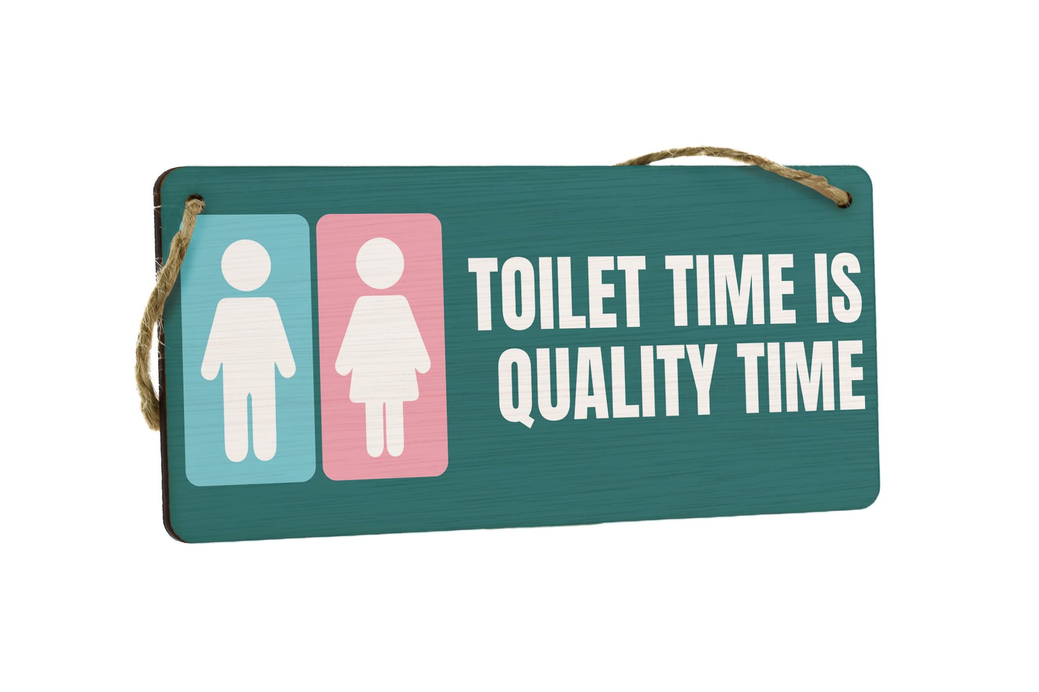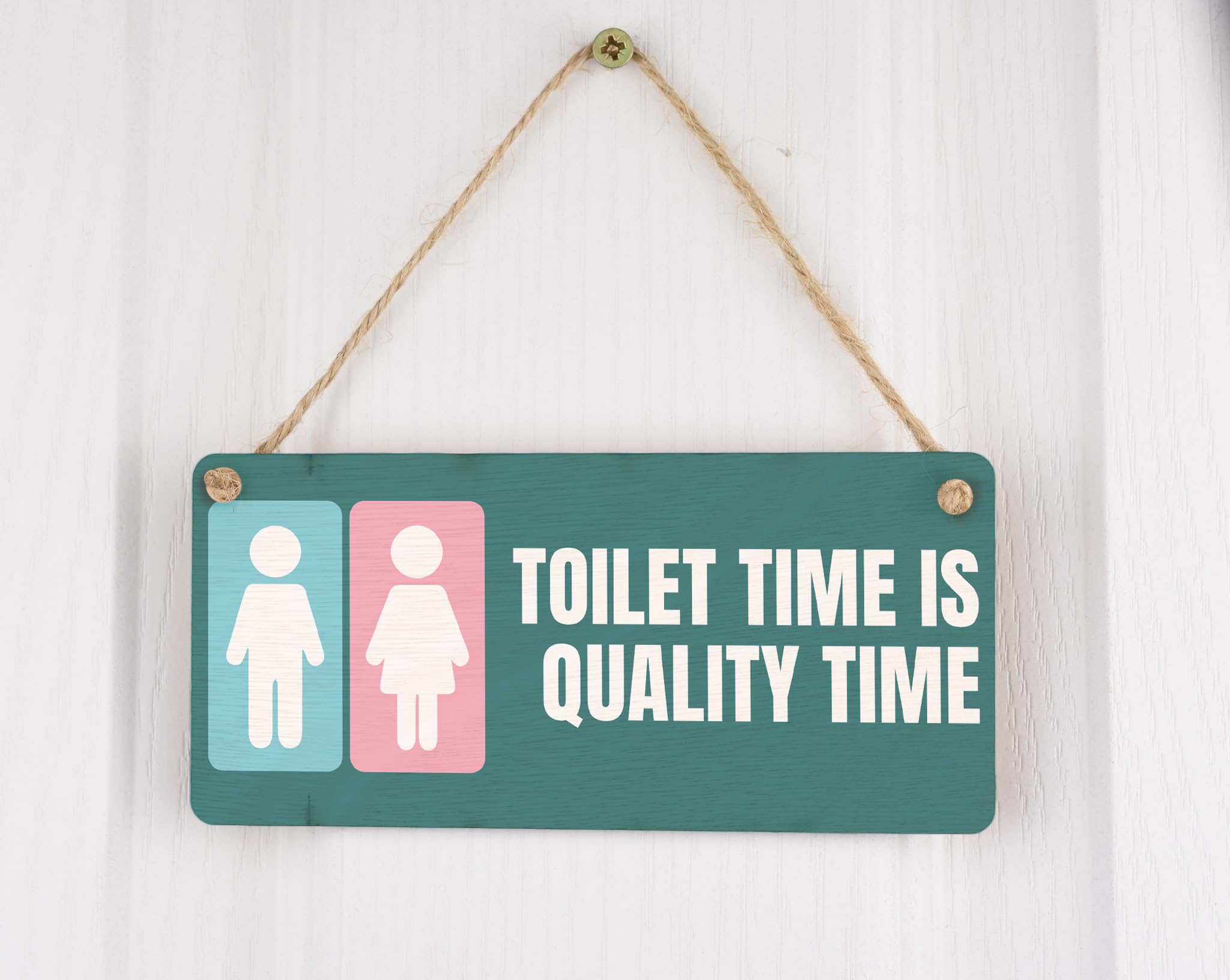Plywood Hanging Sign - Novelty Bathroom Humour Idea - Full Colour Design: Toilet Time is Quality Time - Funny Idea for Family, Mum, Dad, Grandparents, Daughter, Son (smlsgn-ha23-toiletquality)