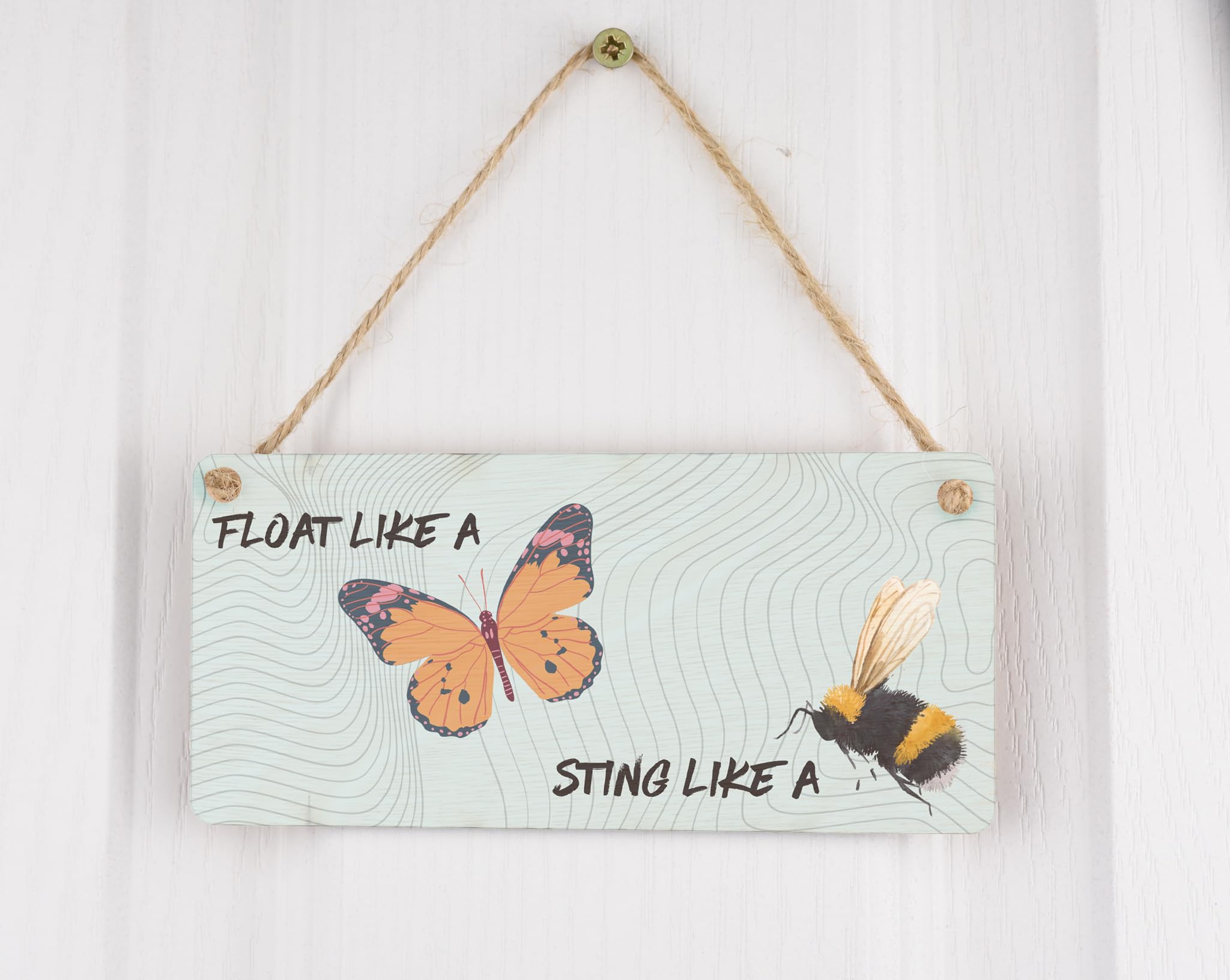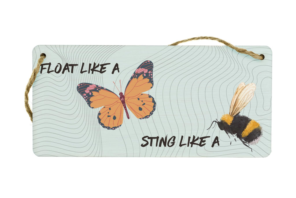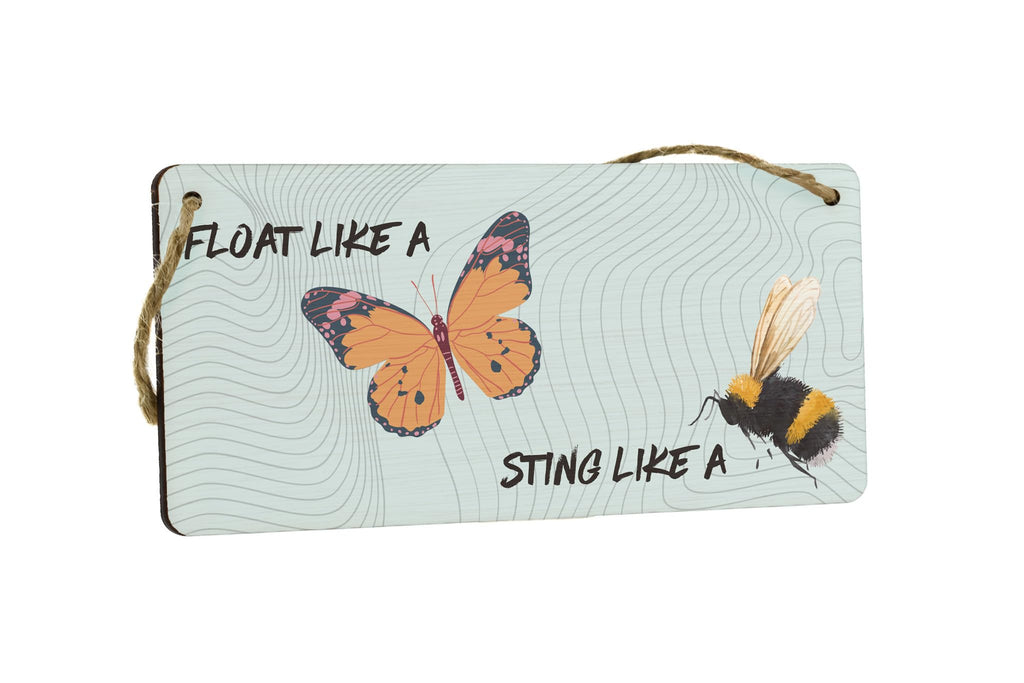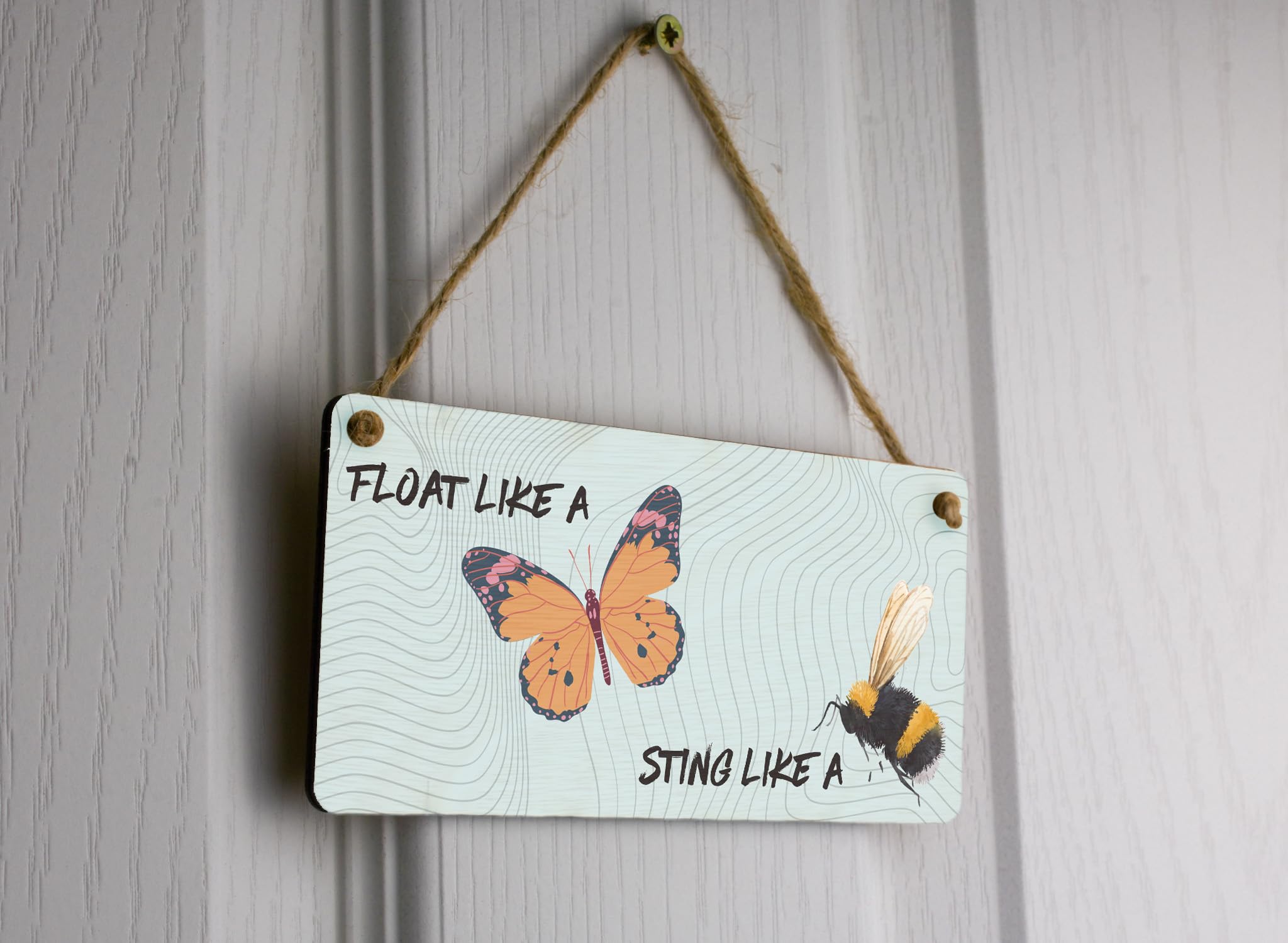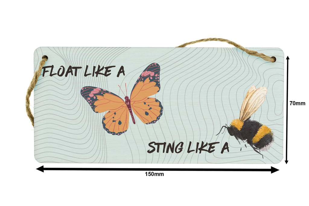 Add a touch of whimsy and charm to your home with our Full Colour Butterfly and Bee Plywood Hanging Sign. This delightful novelty gift is perfect for anyone who loves unique home decor. The sign is made from quality plywood and features a vibrant, full colour design that showcases a beautiful butterfly and bee. Hang it up in any room to instantly brighten up your space and add a touch of nature-inspired elegance. This sign is not only a great addition to your own home but also makes a wonderful gift for family members, including your wife, husband, girlfriend, or boyfriend. The sign reads 'Float Like a Butterfly, Sting Like a Bee,' reminding everyone to stay resilient and strong in the face of challenges. Make a statement and add a touch of whimsy to your home with this beautiful and meaningful hanging sign.
