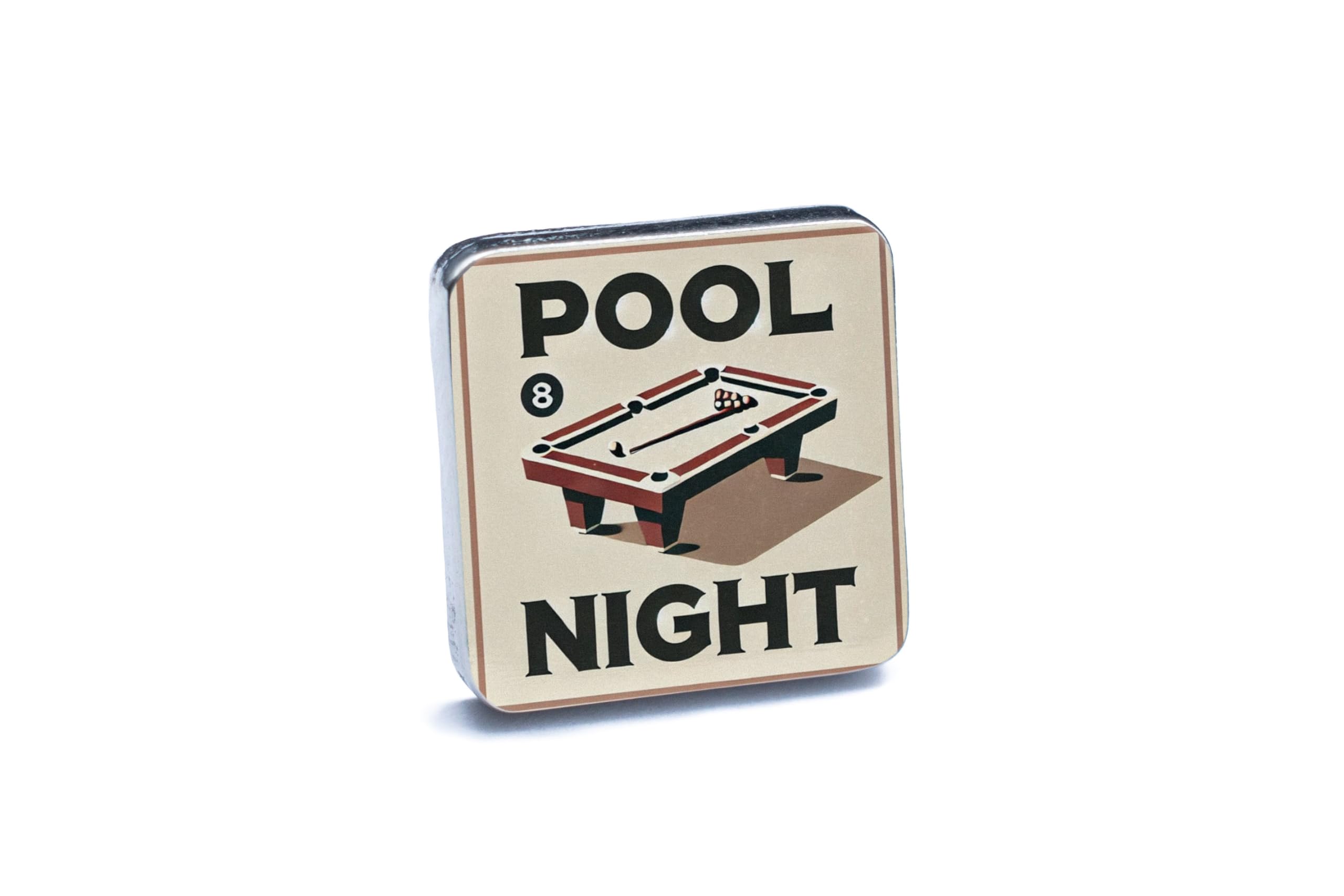 • Billiards-Inspired Design: Features a detailed illustration of a pool table with the phrase “Pool Night,” perfect for game lovers.