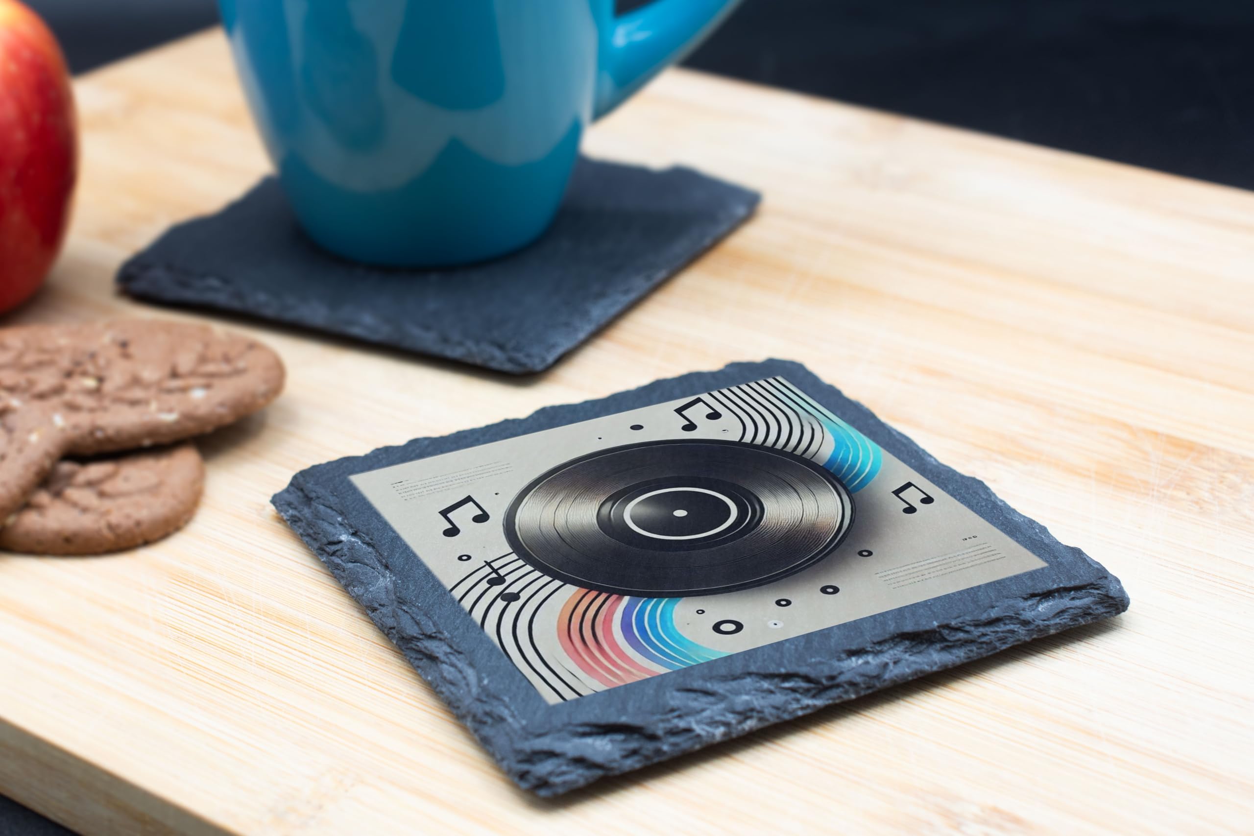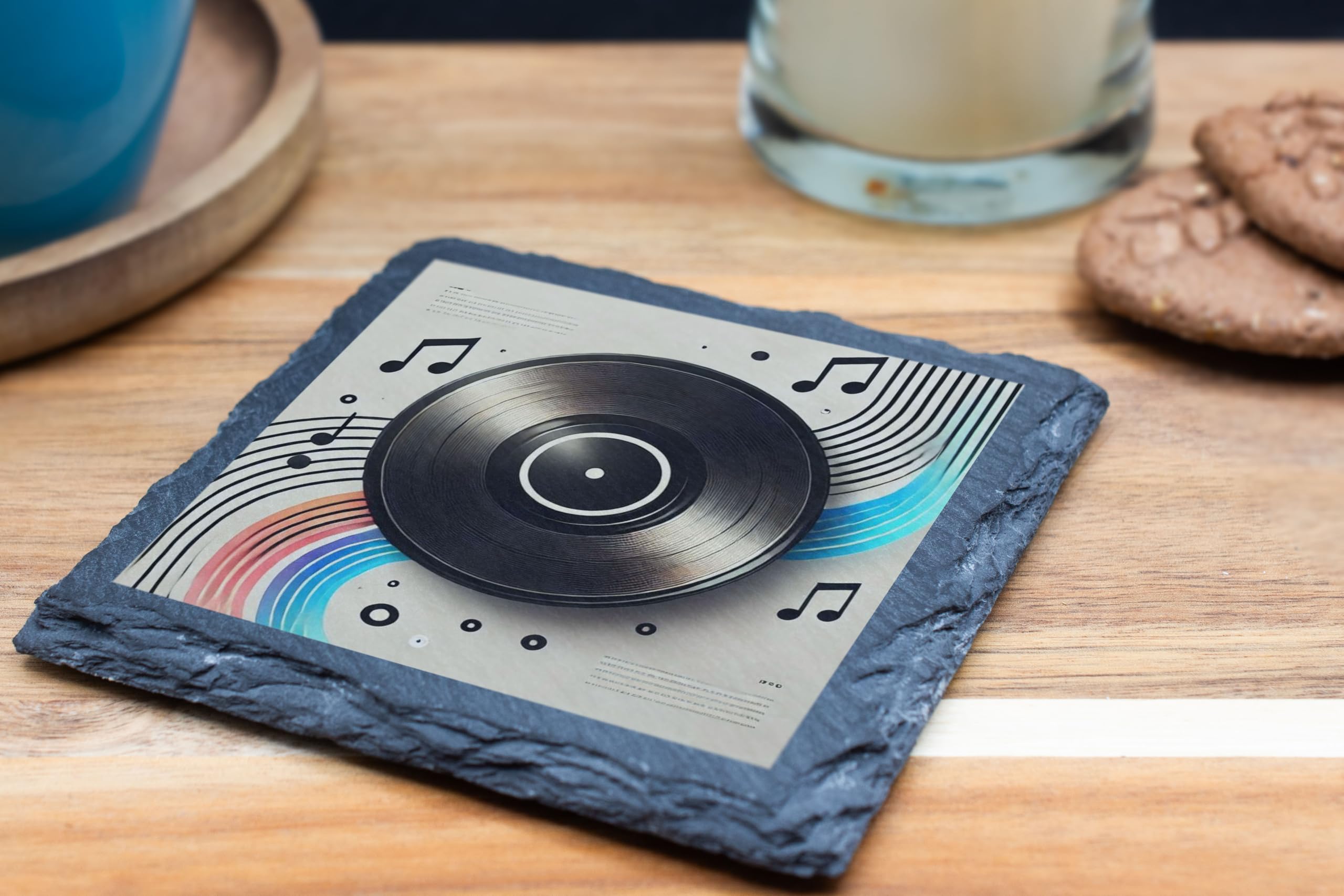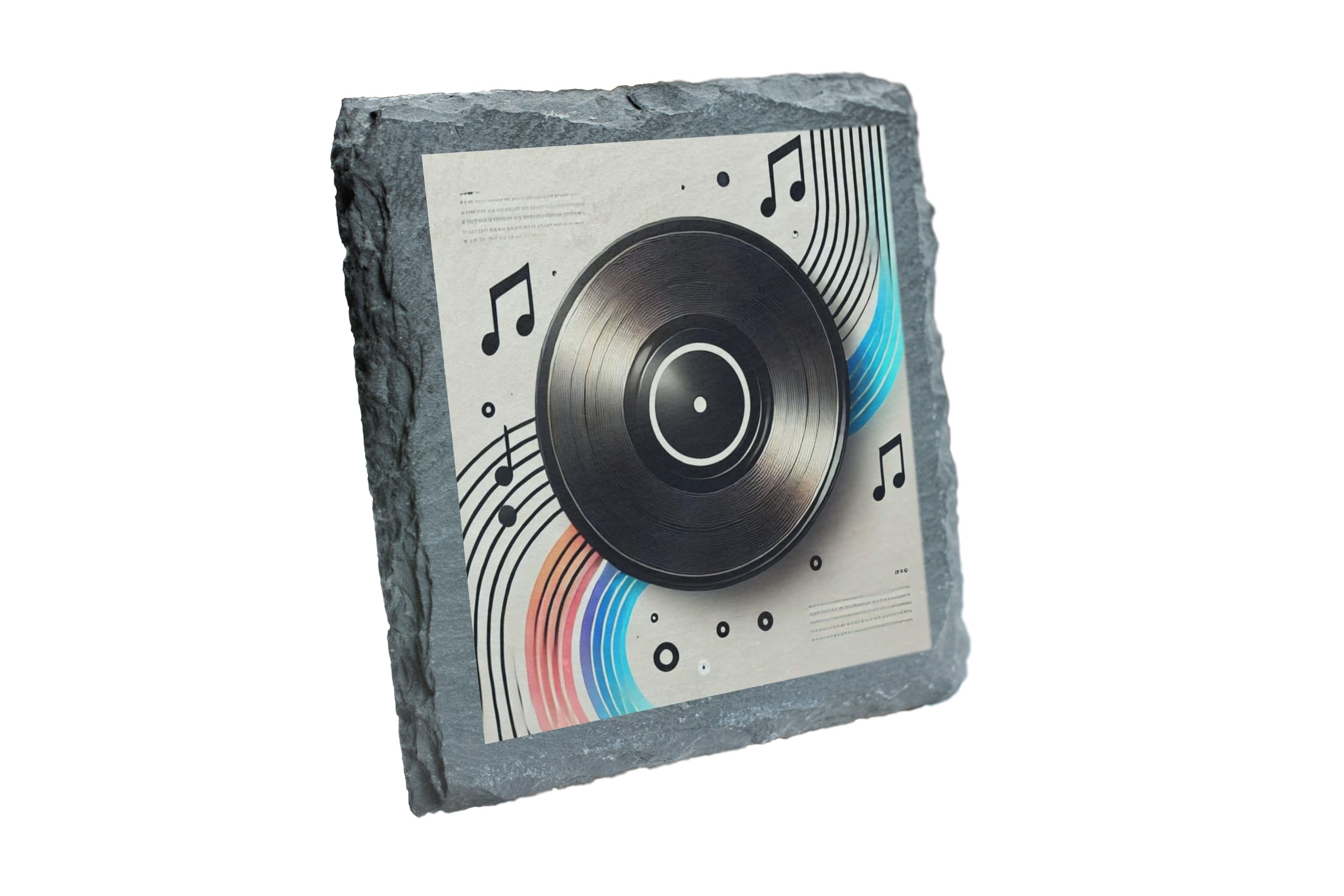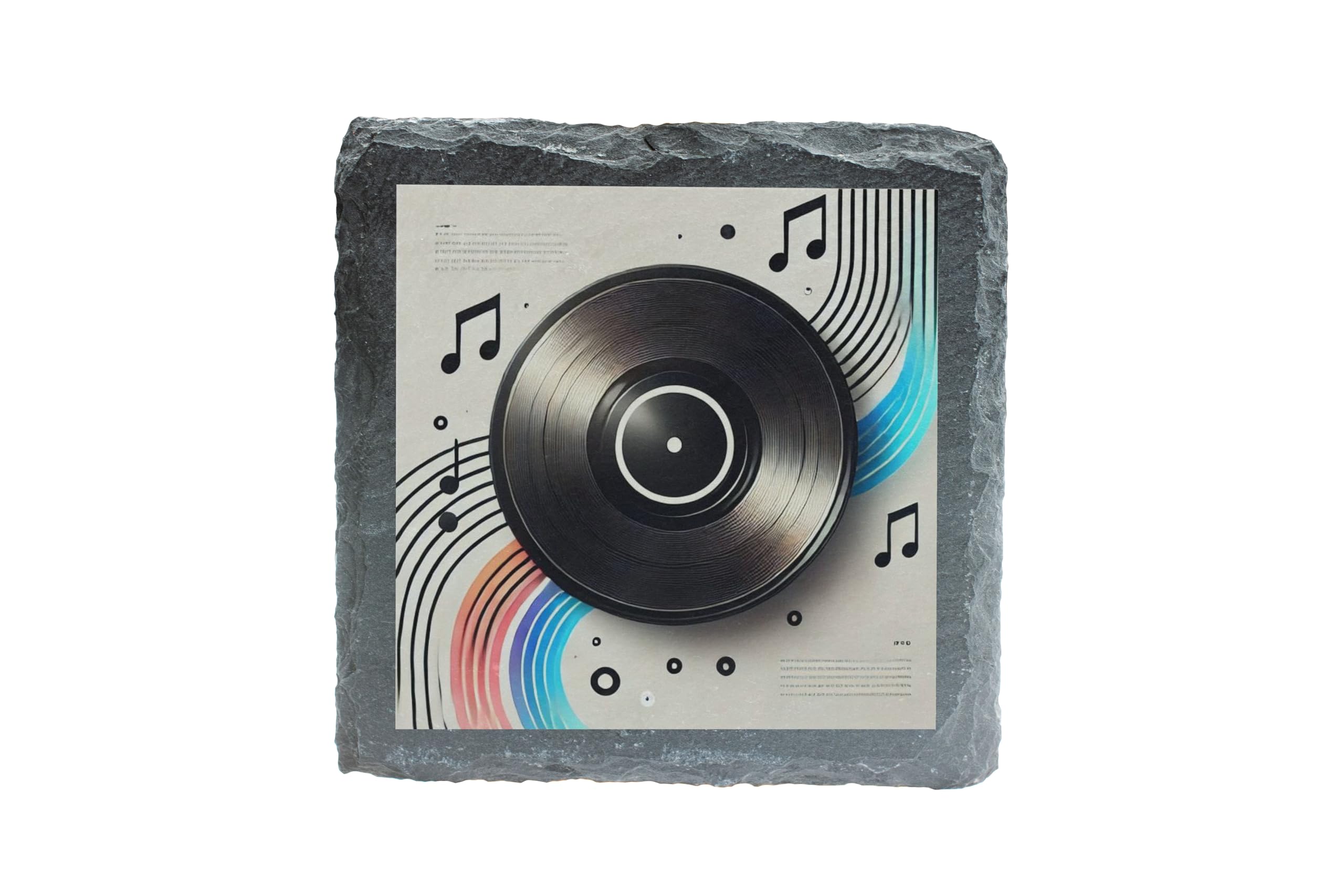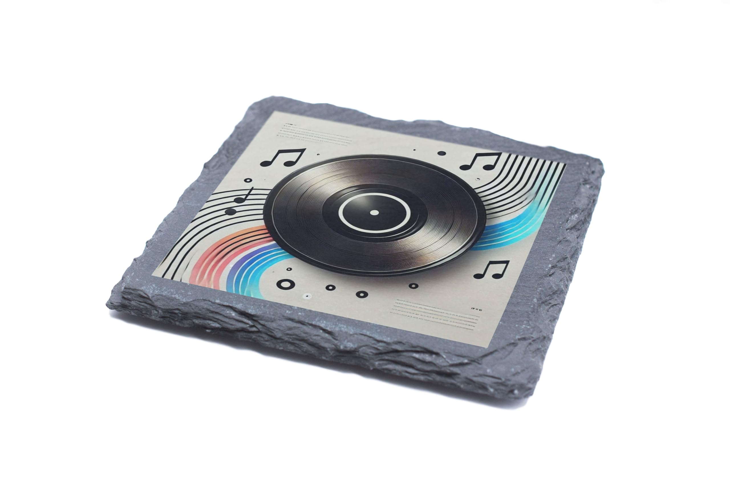 Bring a harmonious blend of style and function to your space with this Vinyl Record-Themed Slate Coaster. Crafted from natural slate, this durable coaster is designed to protect your tabletops while showcasing your love for music. Its retro vinyl record design, complemented by colorful music notes and rainbow details, adds a vibrant touch to any room. Perfect as a gift for music lovers, DJs, or anyone with an eye for unique decor, this coaster is both practical and visually striking. Whether you're hosting a gathering, sipping a morning coffee, or enjoying an evening cocktail, this coaster ensures your surfaces stay clean and scratch-free. Upgrade your home decor with a coaster that strikes the perfect chord between functionality and art.