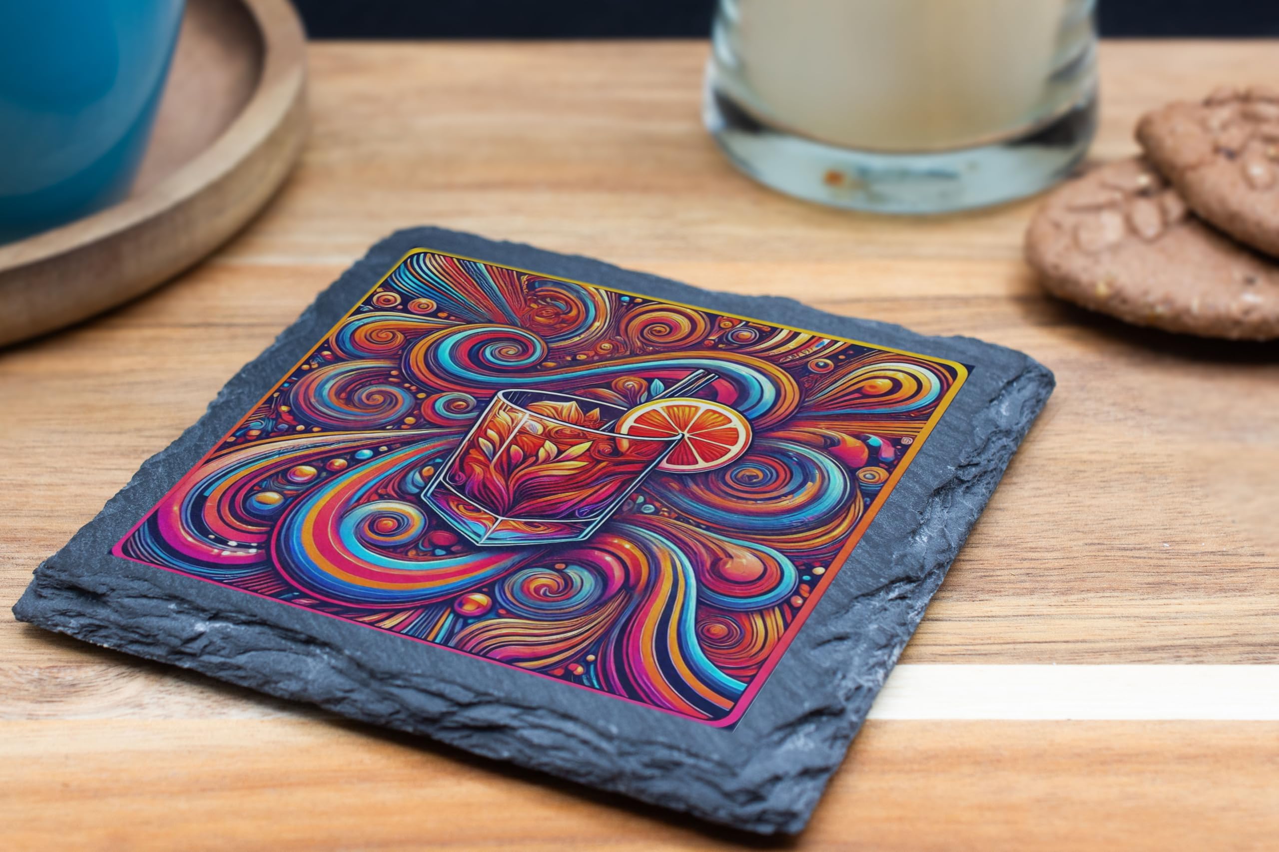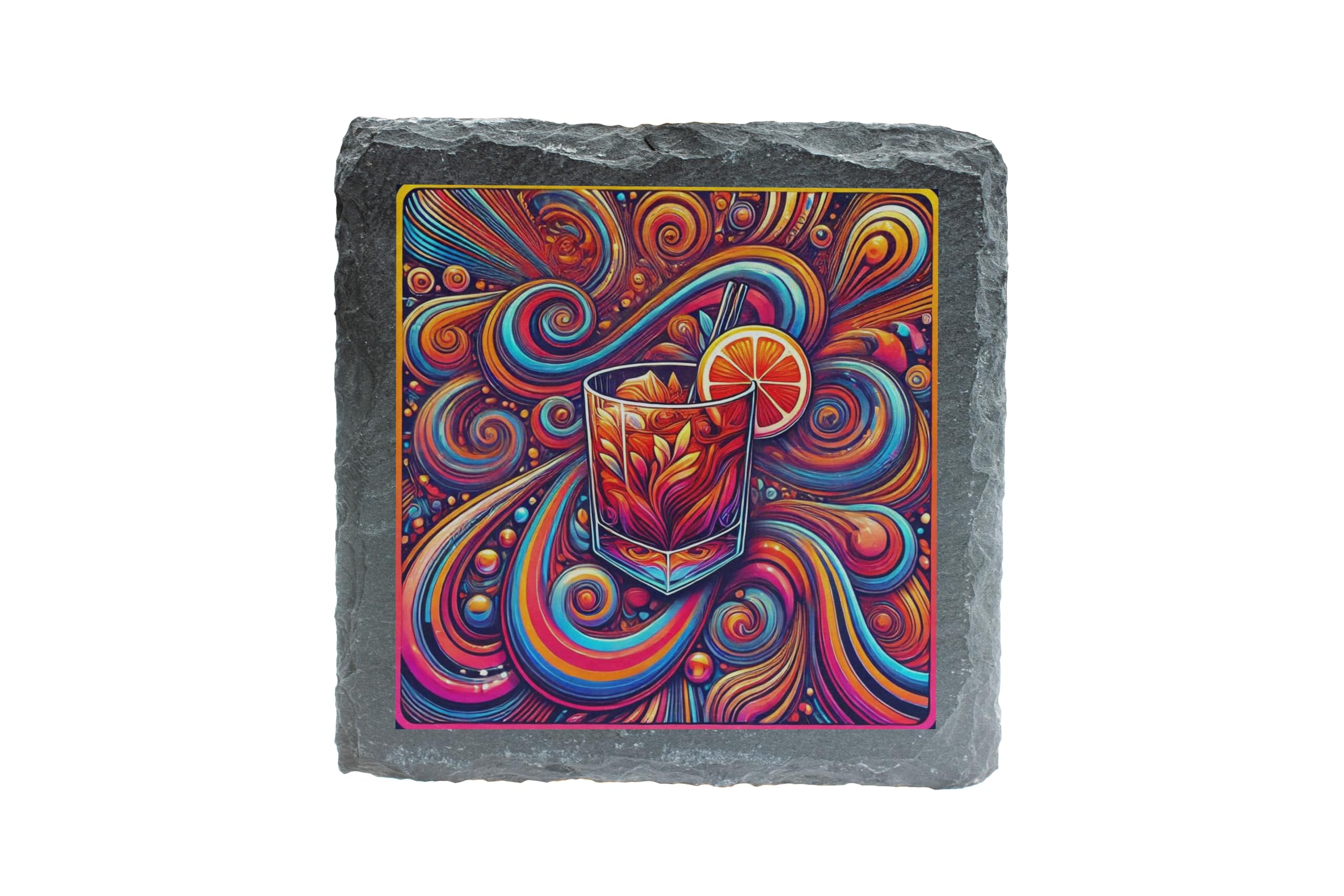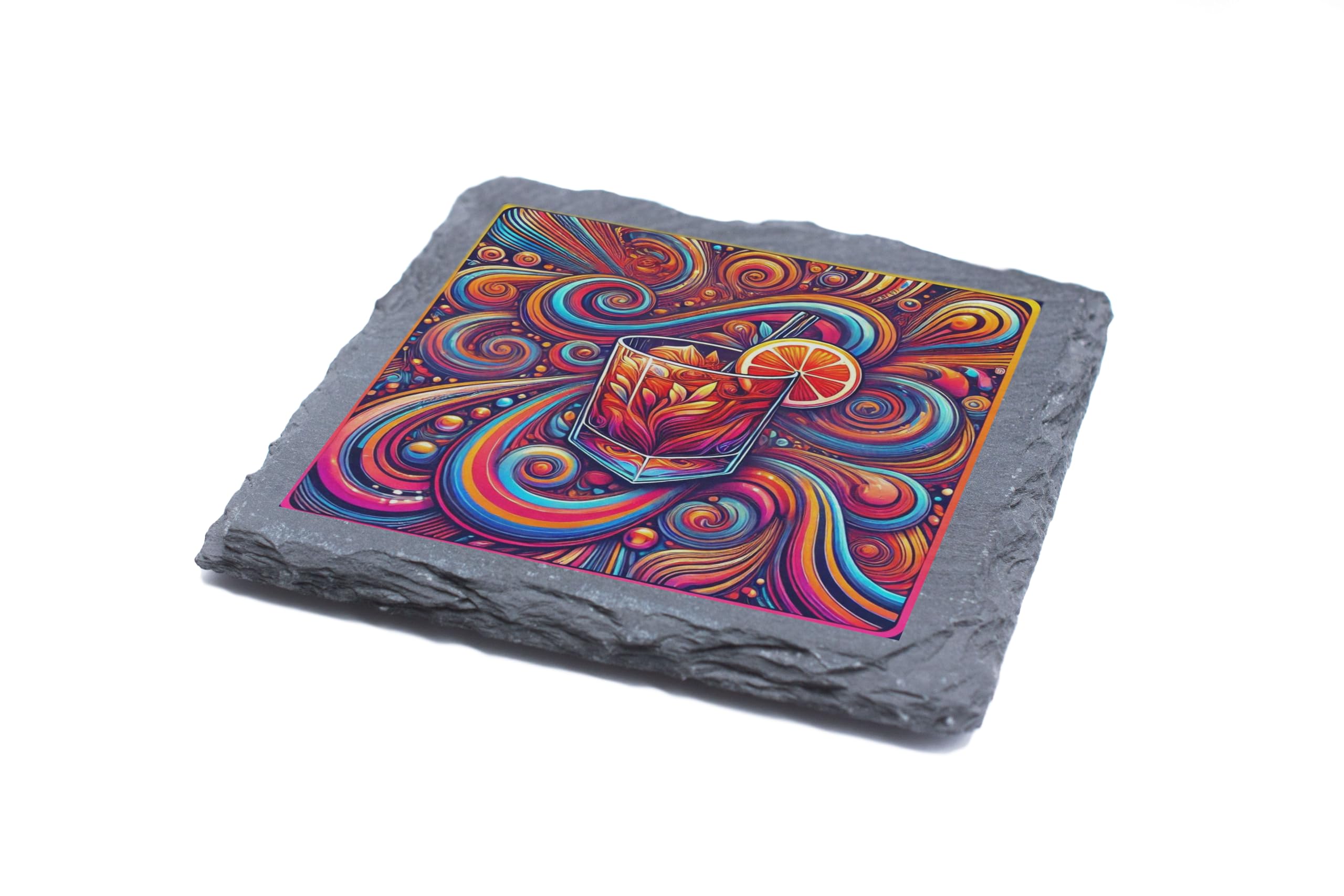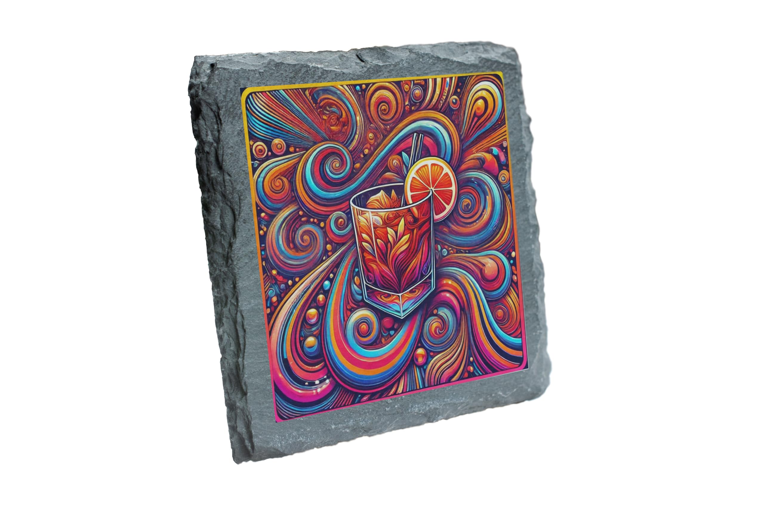 Psychedelic Cocktail Slate Coaster ? Vibrant Swirl Design (slco-ds24-psychrg)
