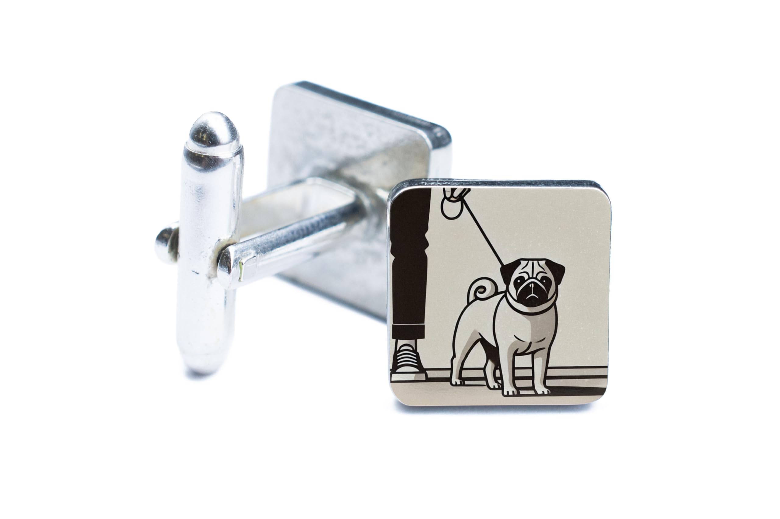 Celebrate your love for pugs with these Pug Walking Cufflinks. Featuring an adorable and stylish design of a pug on a leash, these cufflinks are the perfect accessory for any dog lover. Whether you?re heading to a formal event or a casual outing, these cufflinks add a unique touch of charm and personality to your attire. Crafted with premium materials, these cufflinks are built for durability and style, making them a great addition to your collection or a thoughtful gift for pug owners or dog enthusiasts. Looking for a unique present? These cufflinks are an excellent choice for birthdays, holidays, or as a special treat for yourself. Show off your passion for pugs in style with these delightful cufflinks!