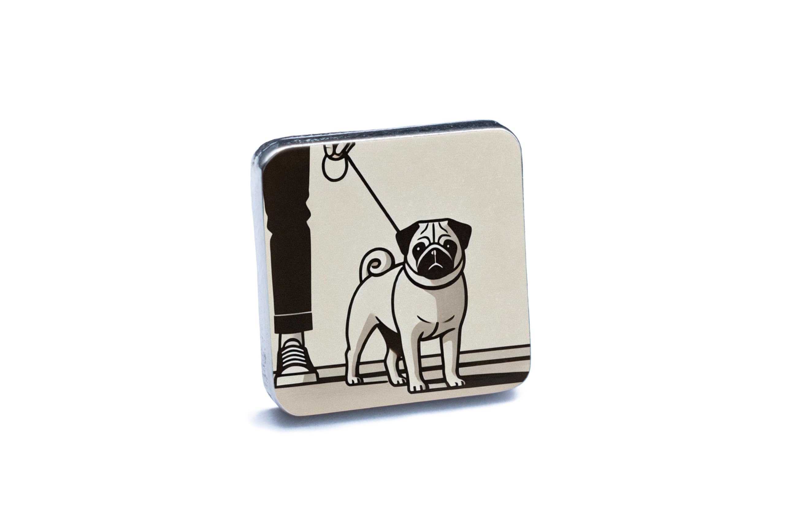 - Charming Pug Design: Features a stylish and playful illustration of a pug on a leash, perfect for dog enthusiasts.