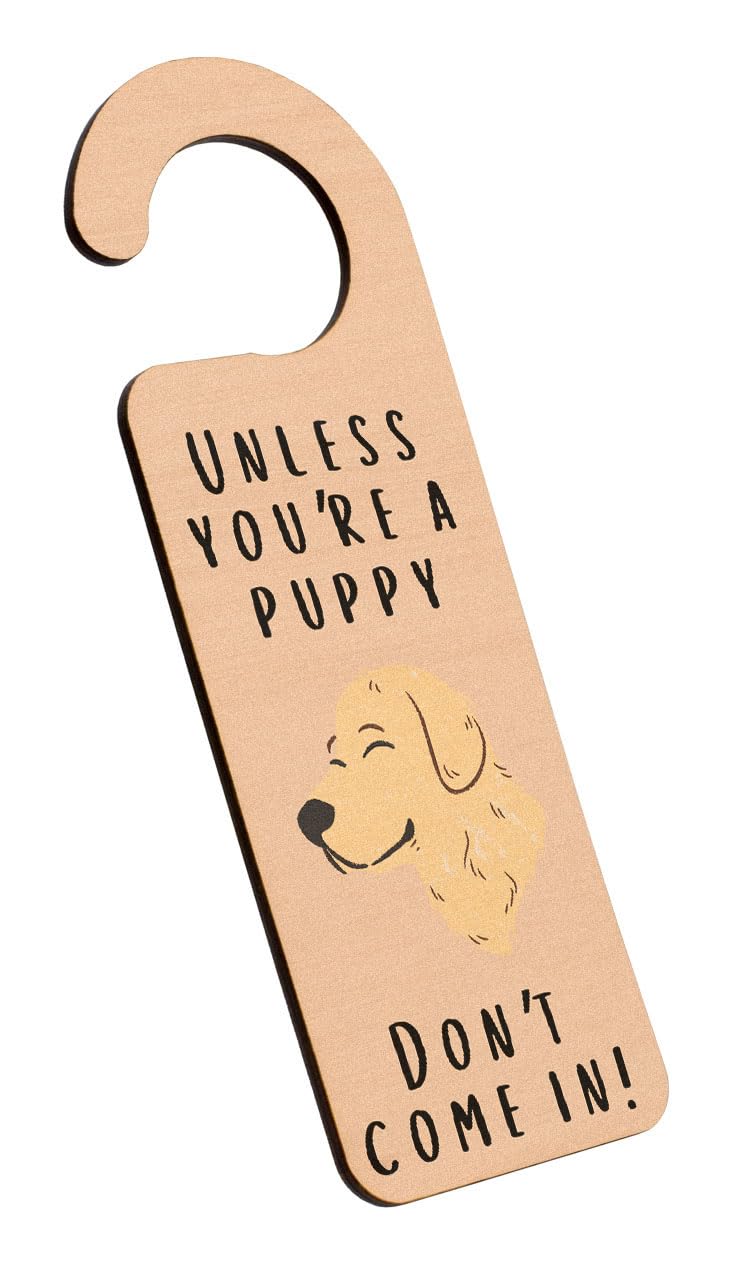 - Cute Cartoon Style: The full colour door hanger features a cute cartoon-style puppy illustration that will melt your heart.