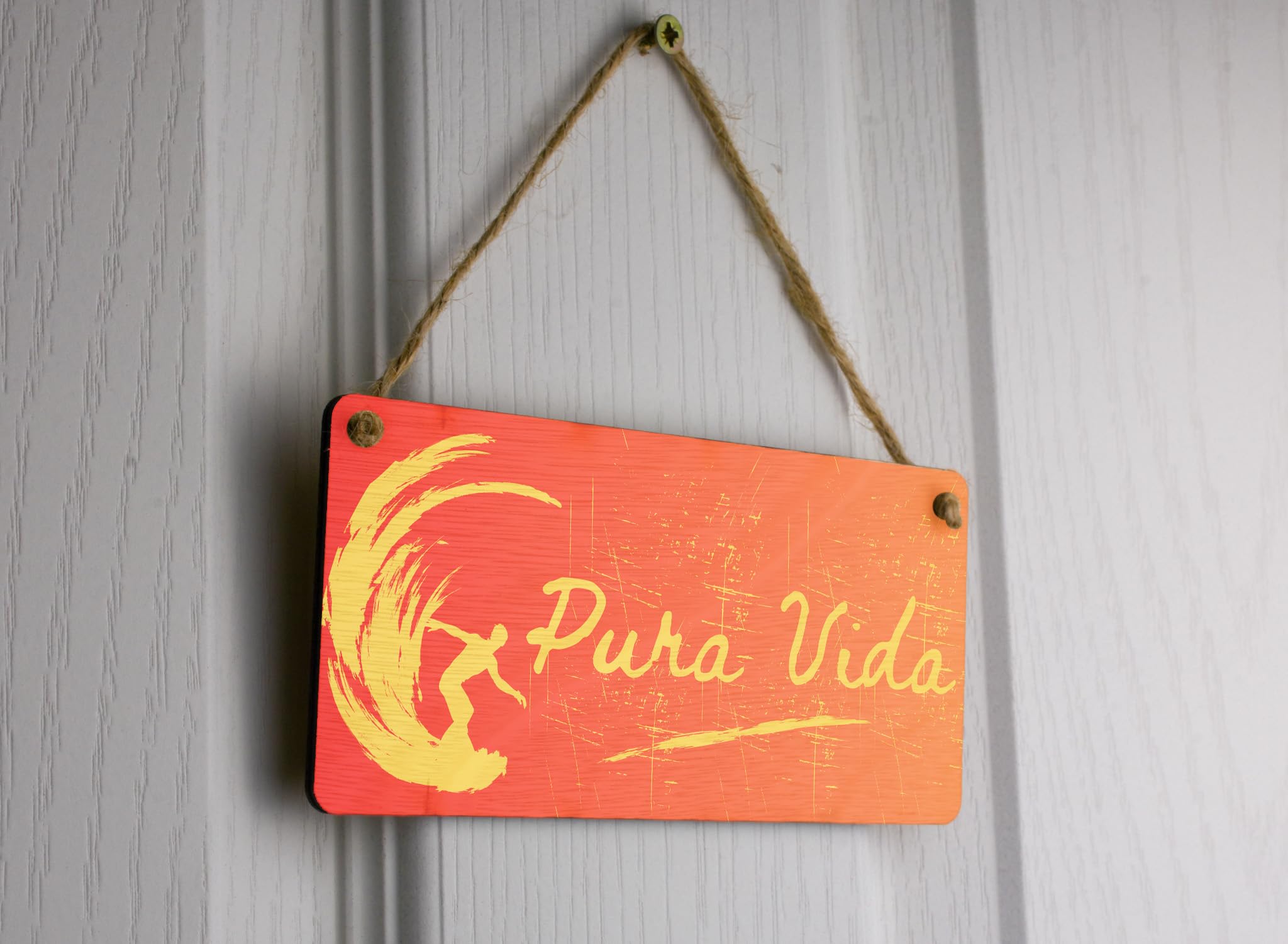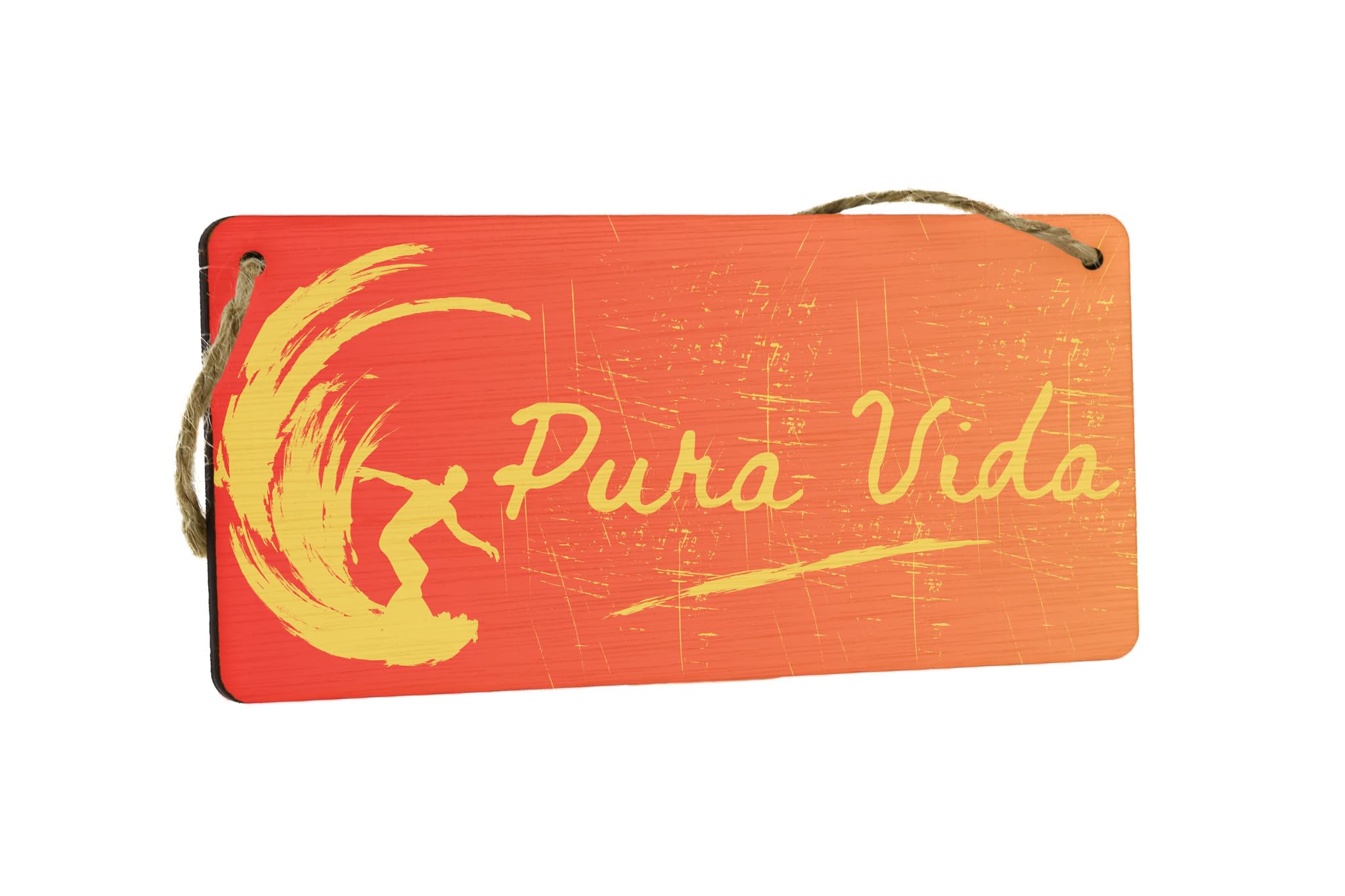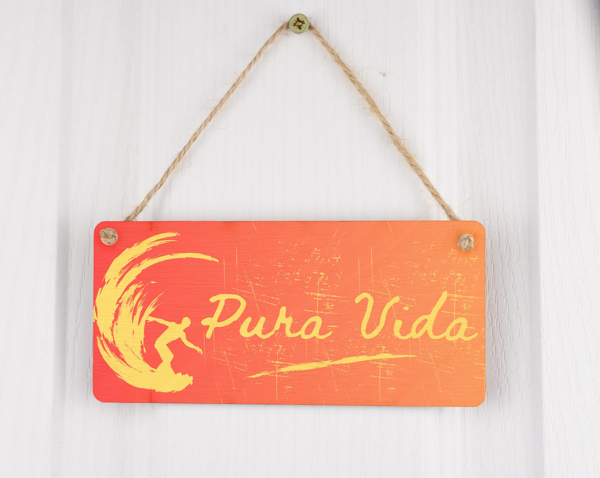 Add a touch of vibrant coastal charm to your home with this Pura Vida Beach Sign. Crafted from quality plywood, this hanging sign is not only a piece of home decor but also a delightful gift for your loved ones. With its full colour design and bold, colourful lettering that reads 'pura vida', this sign captures the essence of the surfing lifestyle and brings a lively atmosphere to any space. Whether you are looking for a gift for your husband, wife, boyfriend, girlfriend or your entire family, this surfer sign is sure to be a hit. Hang it in your living room, bedroom, or even in your office to infuse an uplifting and joyful ambiance into your surroundings. Embrace the laid-back beach vibes with this eye-catching and charming Pura Vida Beach Sign.