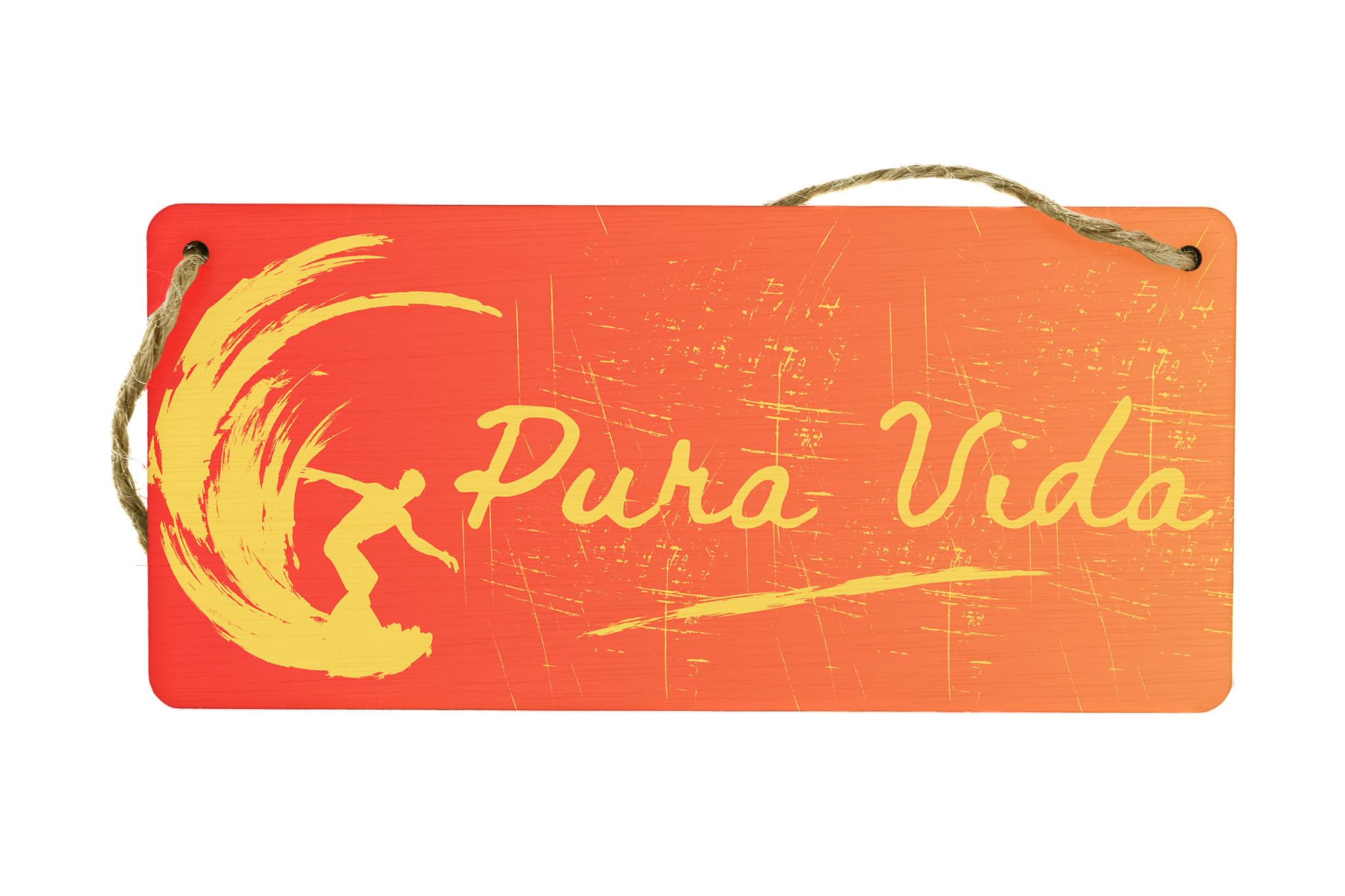 - Full colour design and bold, colourful lettering that reads 'pura vida'