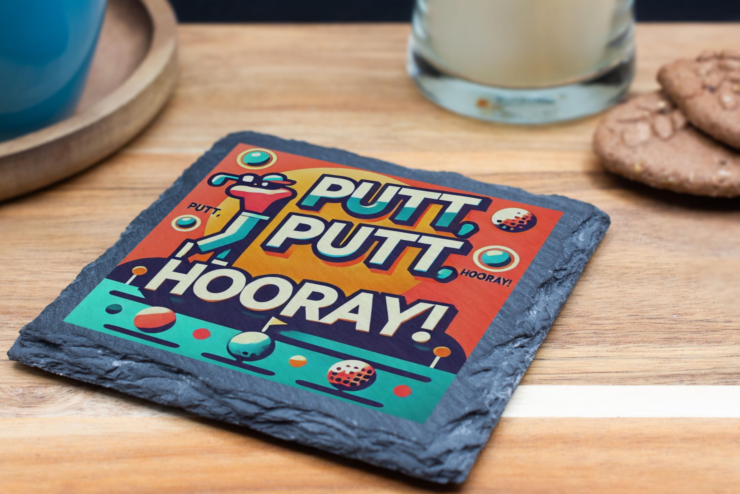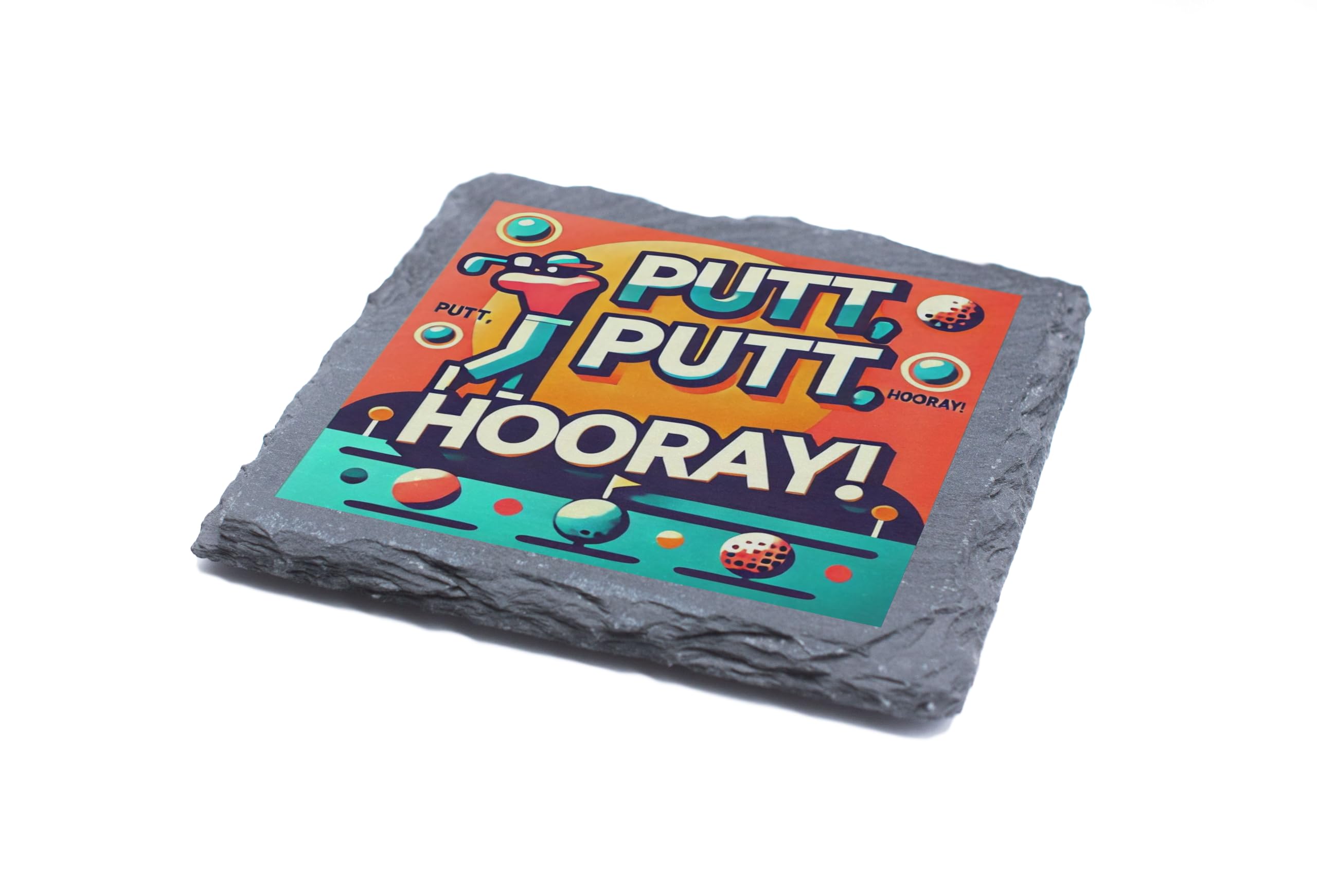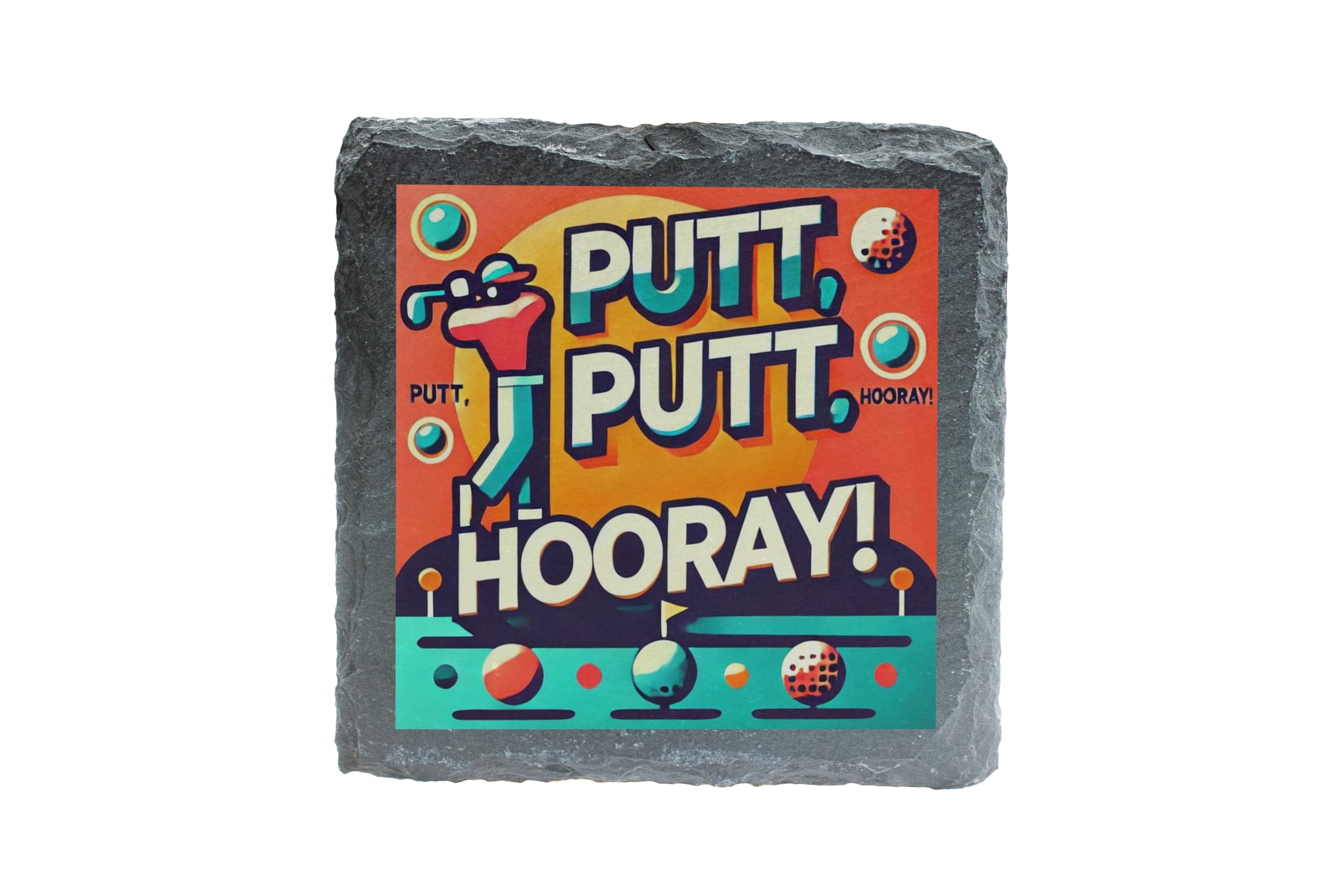 Add a dash of fun to your table with the "Putt, Putt, Hooray!" Slate Coaster. This eye-catching design captures the joy of mini golf, featuring a colorful golfer and playful patterns. Made from premium natural slate, this coaster not only protects your surfaces but also adds a lively touch to your decor. Whether you're hosting a game night, enjoying a relaxing drink, or searching for the perfect gift for a golf lover, this coaster is a hole-in-one choice. Celebrate the spirit of mini golf while keeping your space clean and stylish!