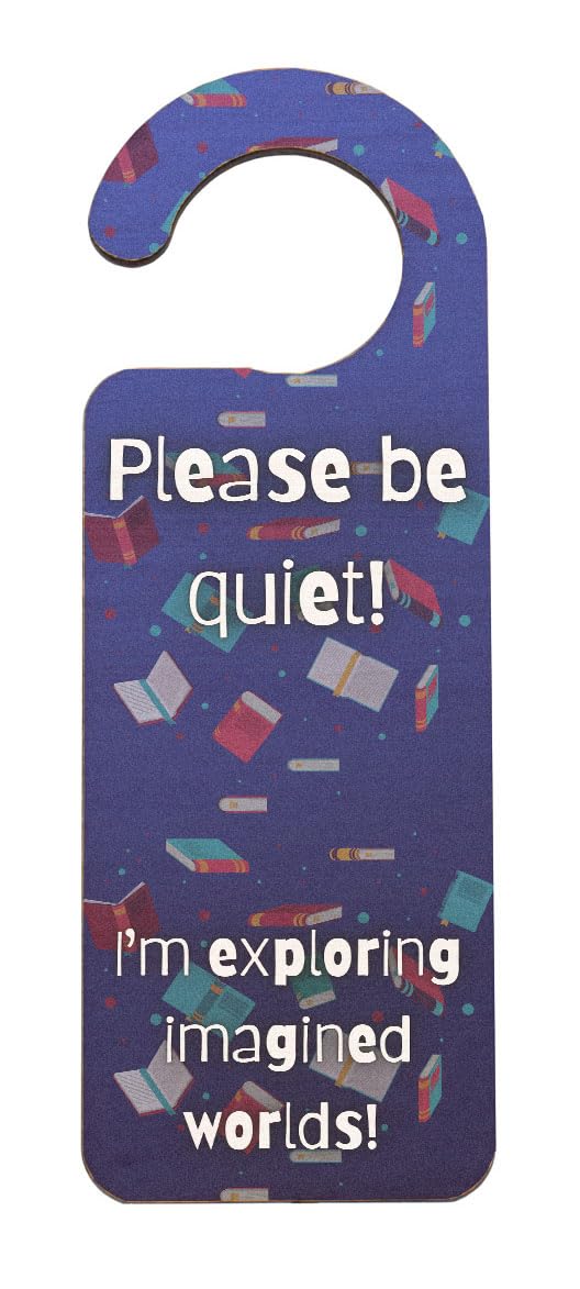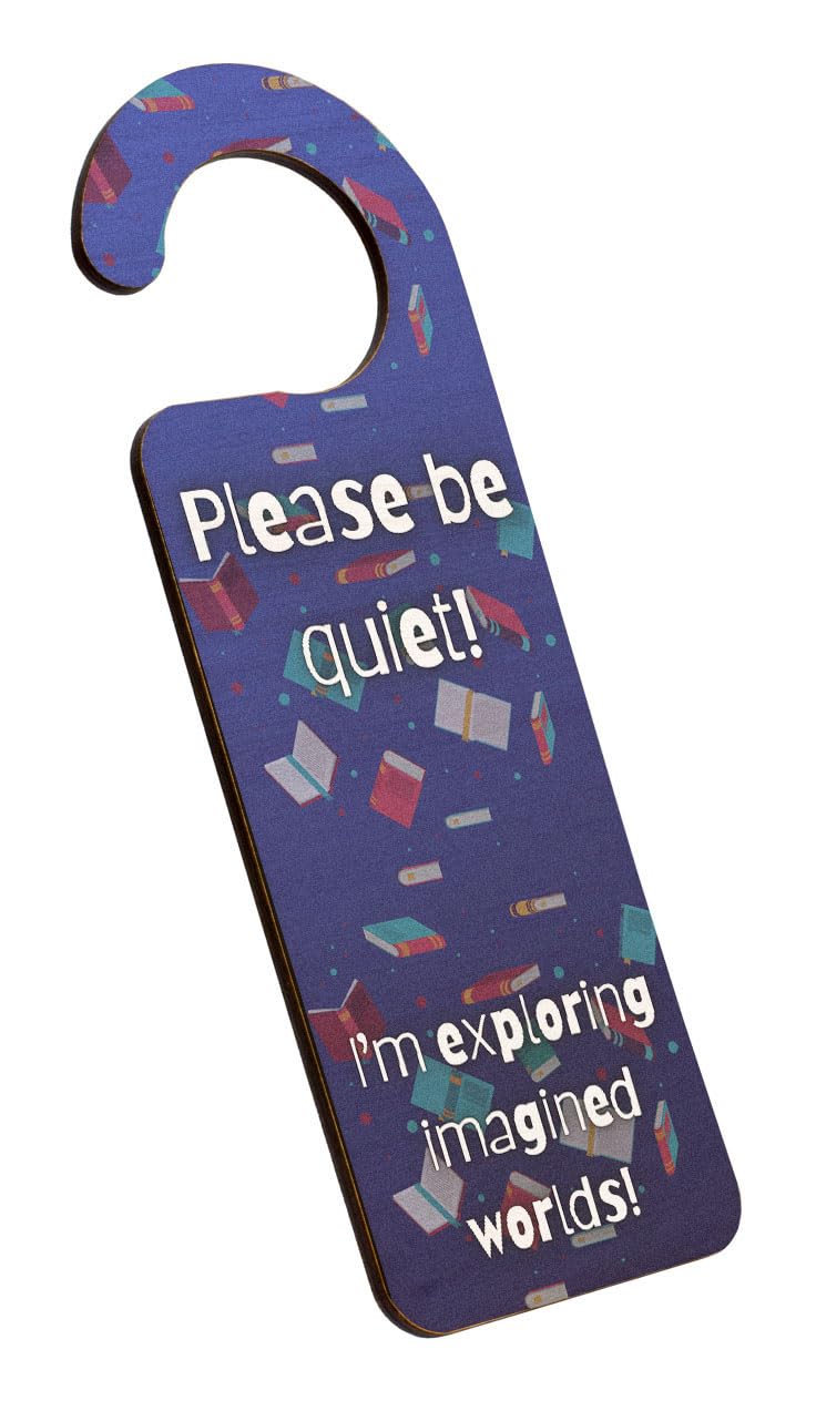 Quiet Zone Bookworm Door Hanger: Reads Please Be Quiet I'm Exploring Imagined Worlds (doorh-ds23-imaginedrg)
