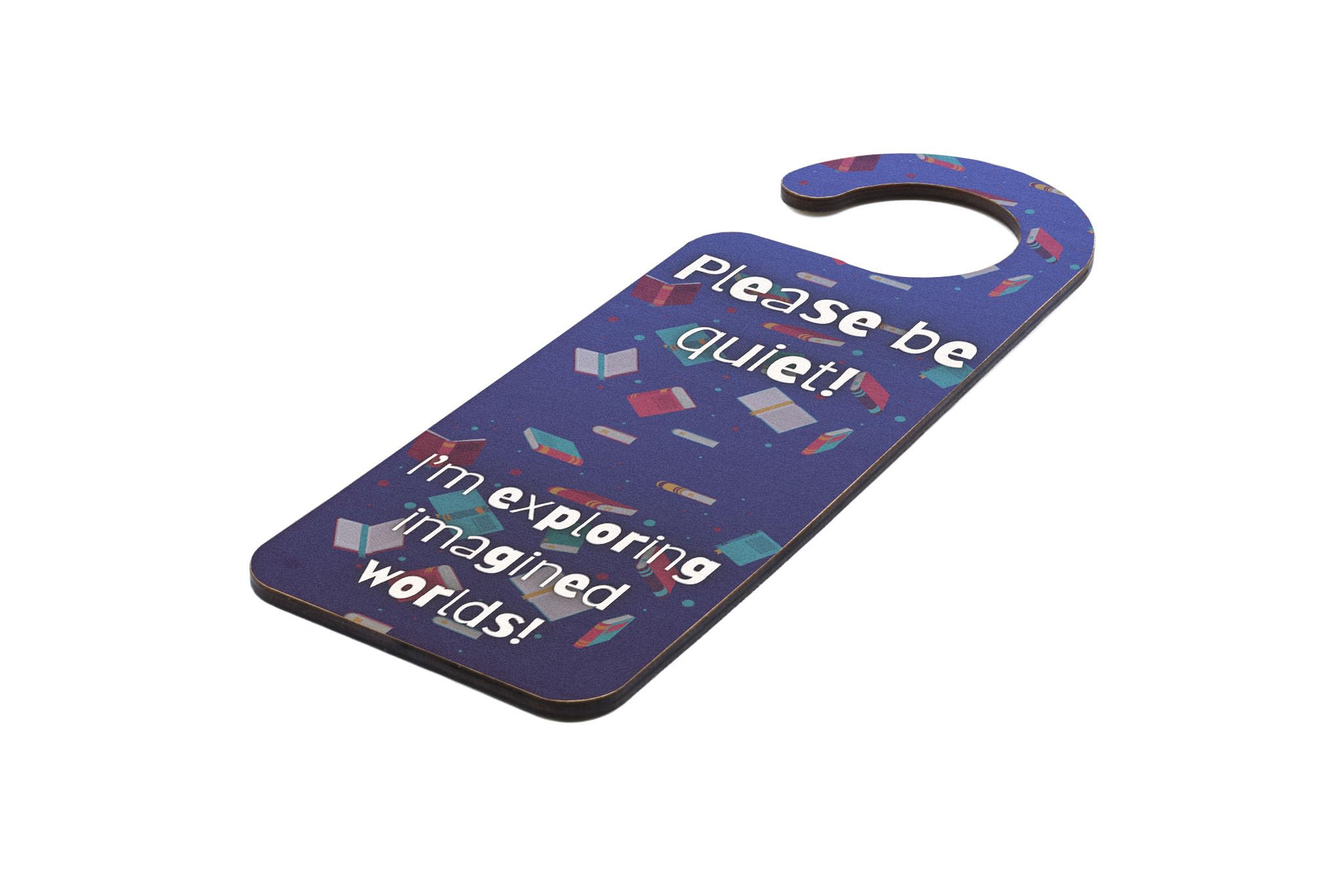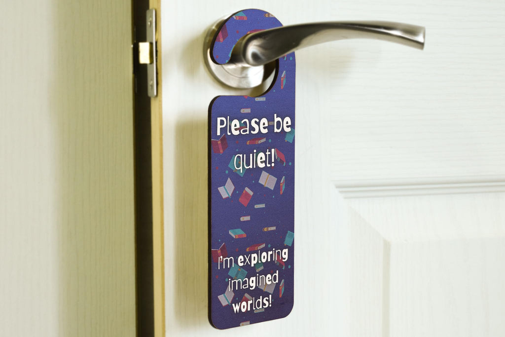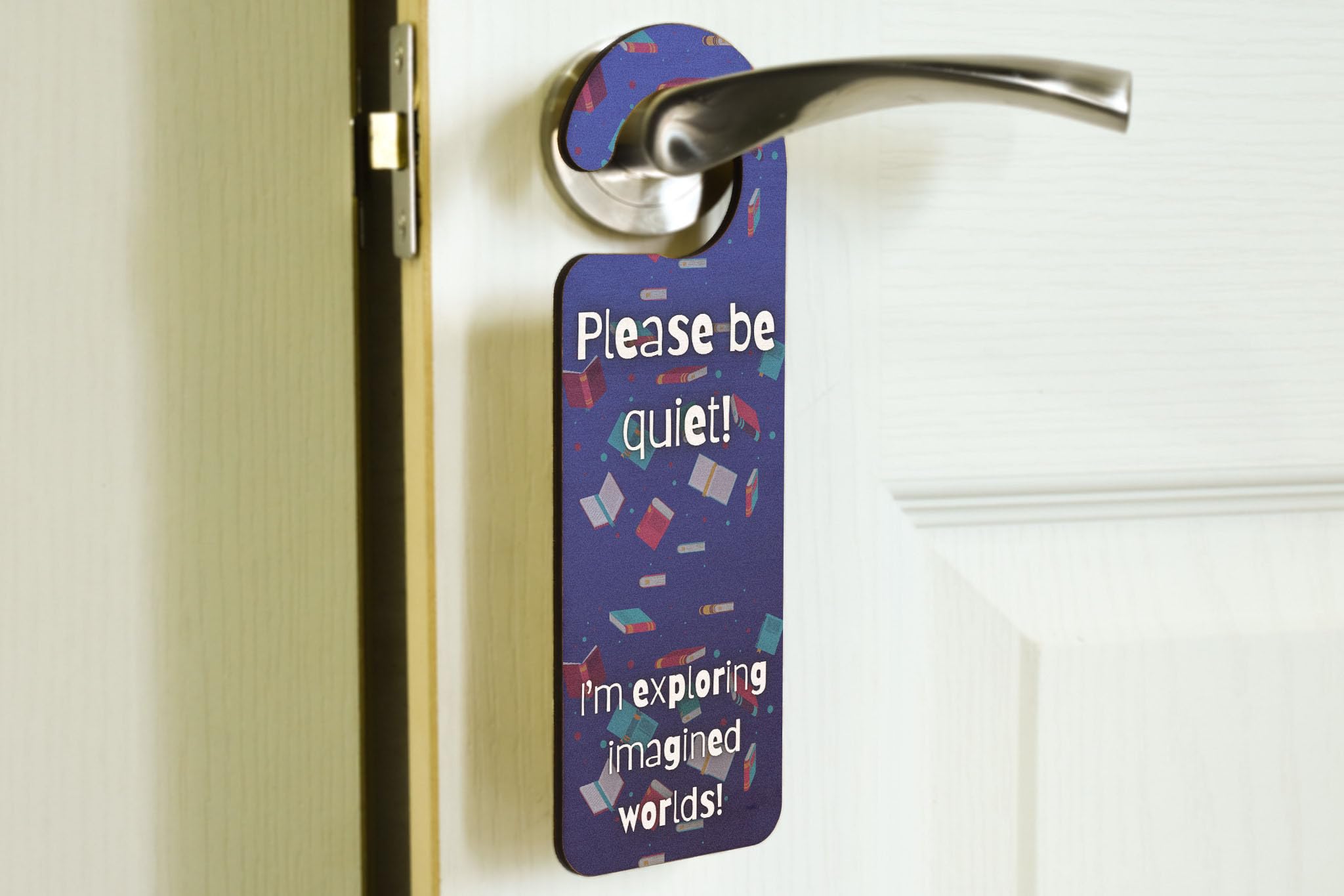 • Handmade laser cut plywood door hanger perfect for the bookworm who values quiet reading time