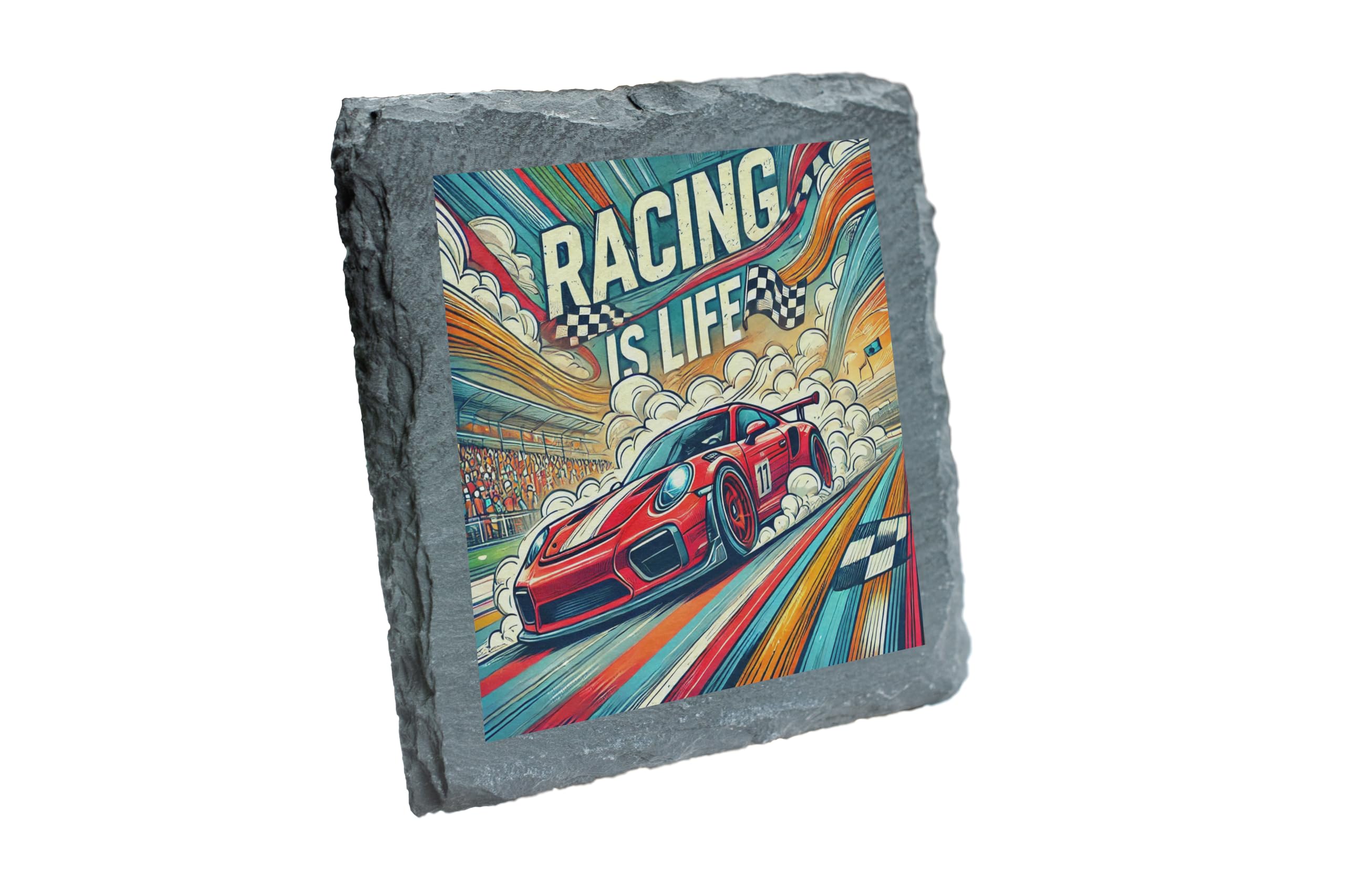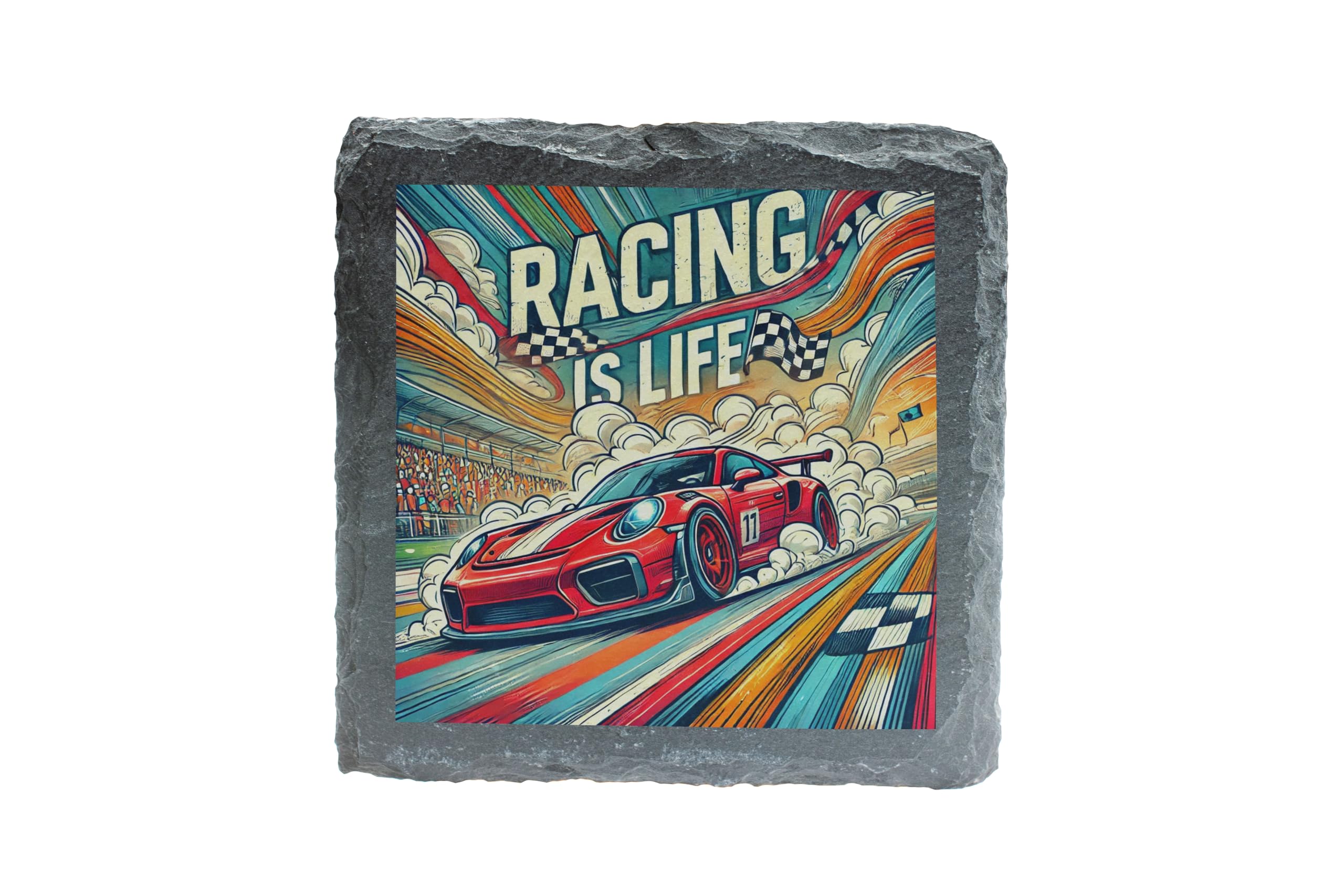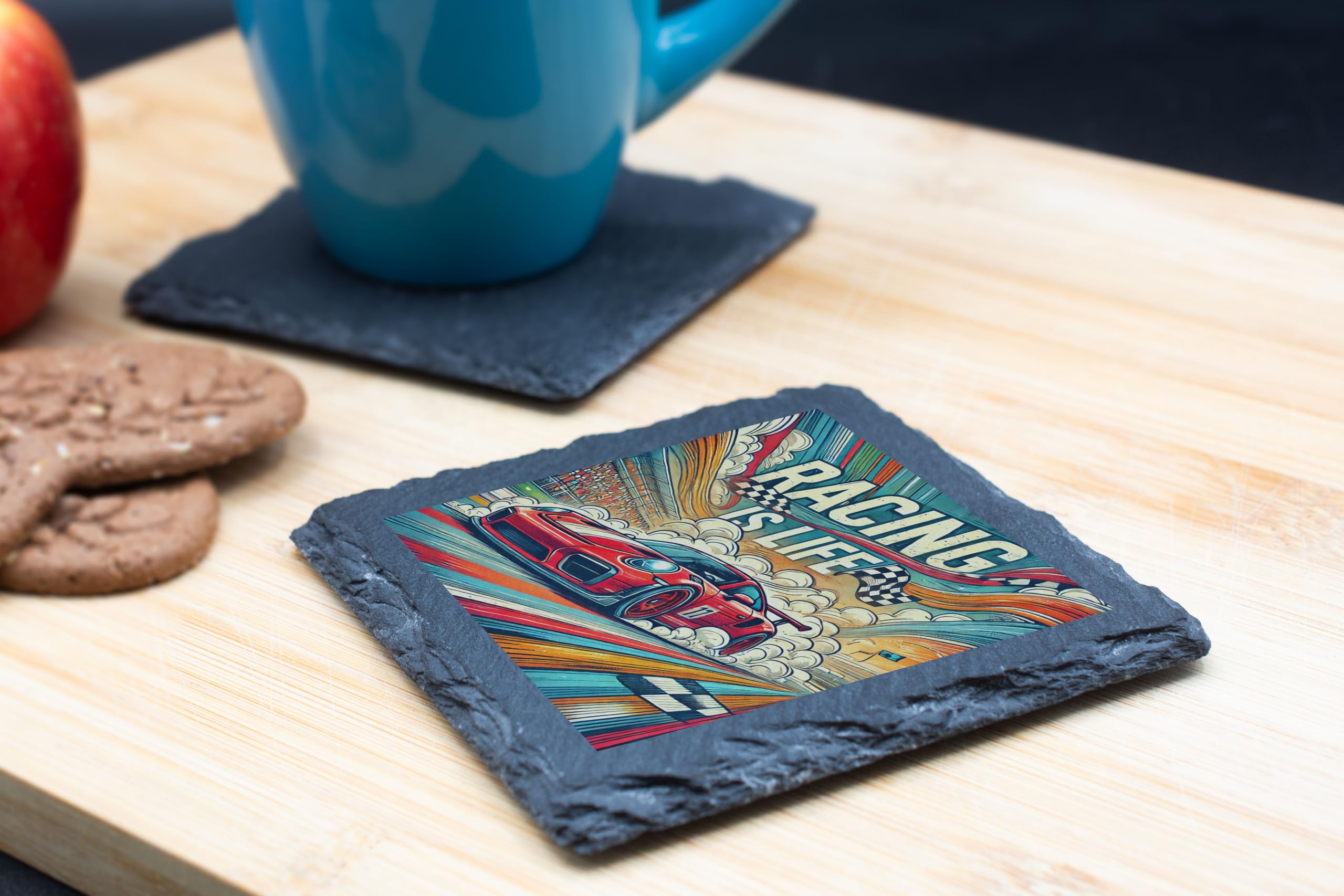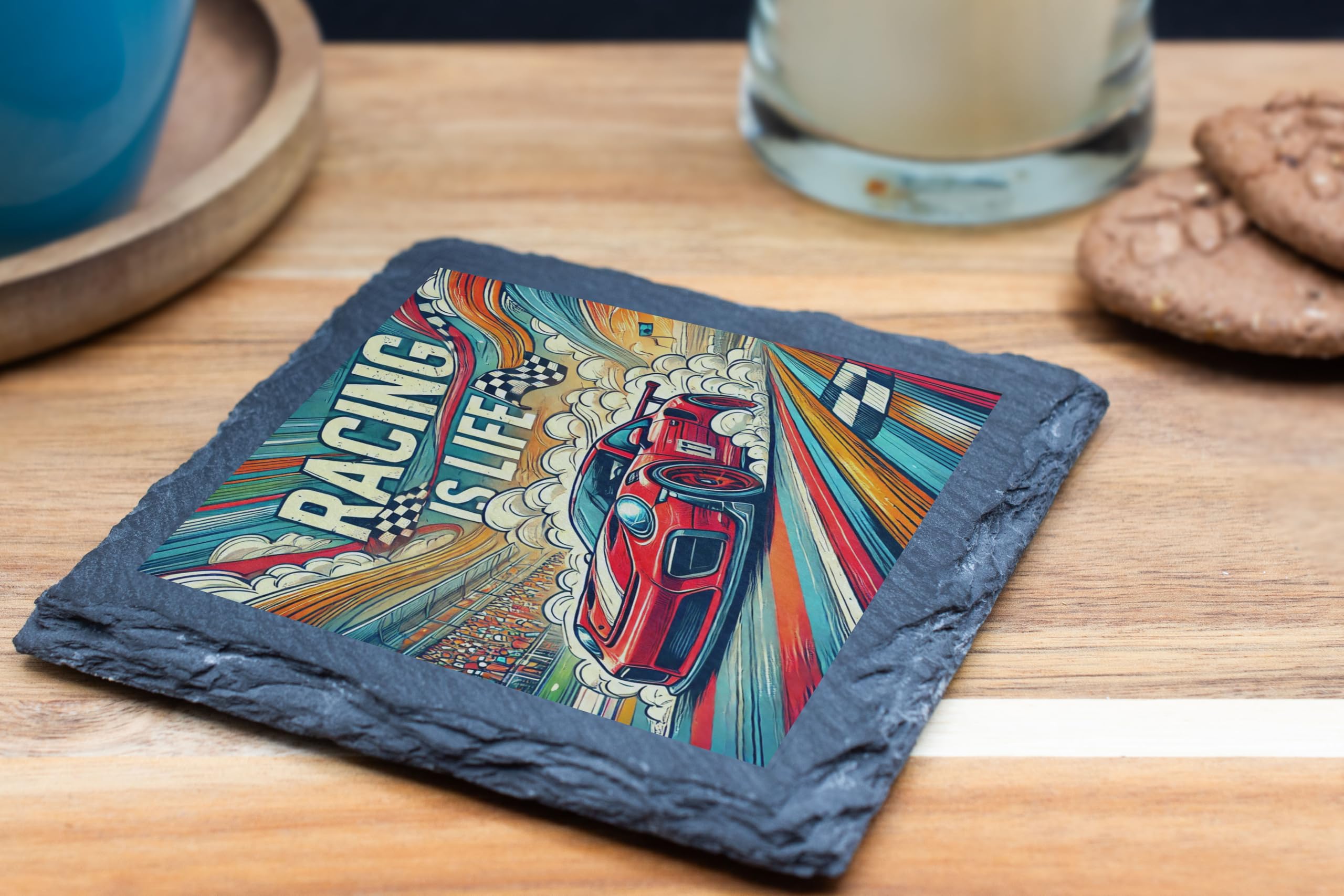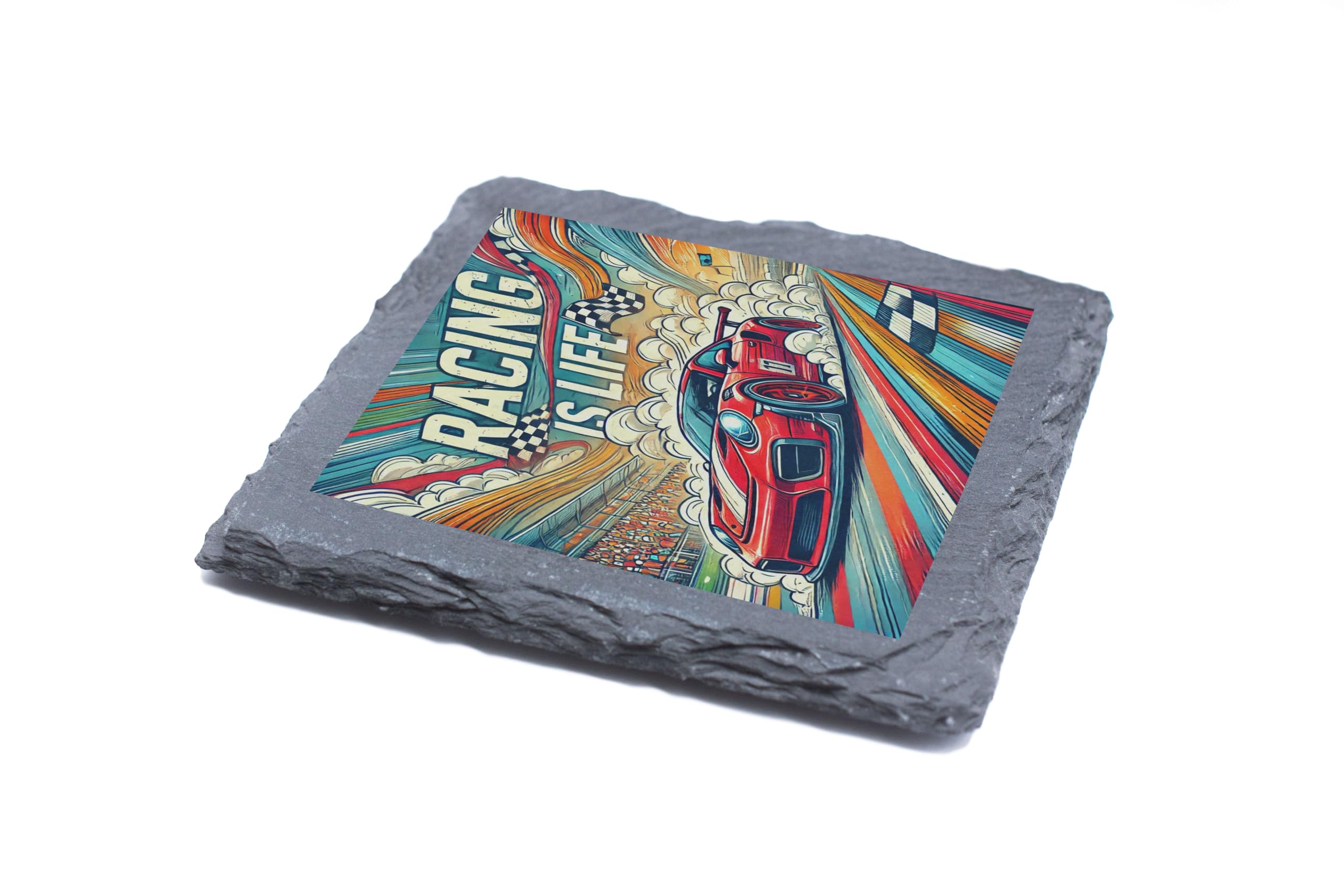 Celebrate your love for speed and style with the "Racing is Life" Vibrant Red Car Slate Coaster. This dynamic design showcases a bold red sports car racing forward with colorful motion lines and the motivational phrase "Racing is Life," making it an exciting addition to any home or office. Crafted from high-quality natural slate with rugged, raw edges, this coaster combines artistic appeal with practicality. It effectively protects your surfaces from heat, moisture, and scratches while serving as a stylish d?cor piece. Whether for personal use or as a gift for car enthusiasts and racing fans, this coaster is a must-have. Its vibrant design, durable build, and easy maintenance make it the perfect blend of form and function!