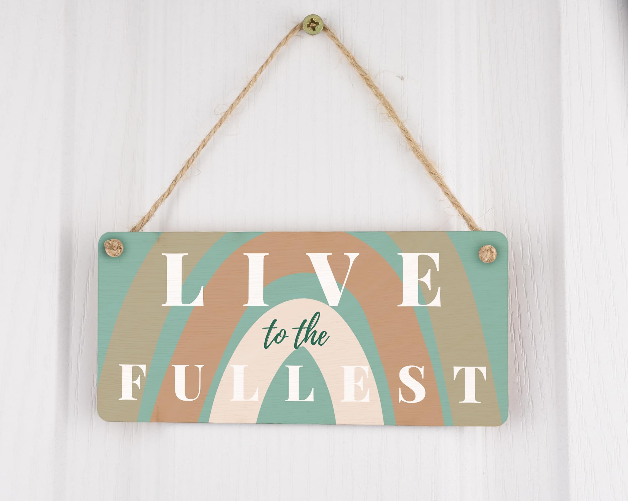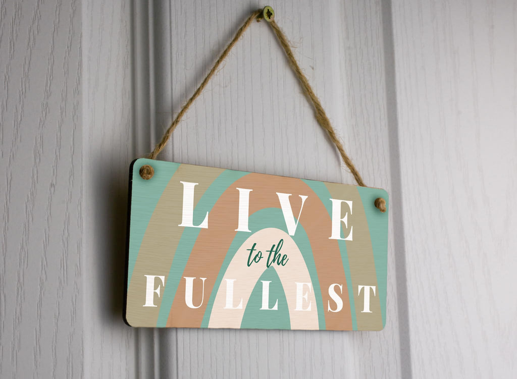 Add a touch of magic to any room with our Rainbow Dreams: Full-Colour Plywood Hanging Sign! Made from high-quality plywood, this hanging sign features a vibrant rainbow design that is sure to catch everyone's eye. Hang it on the wall of your living room, bedroom, or even your office to create a positive and inspiring atmosphere. The motivational quote 'Live to the Fullest' is beautifully printed on the sign, serving as a daily reminder to embrace life and make the most out of every moment. This rainbow wall art is perfect for nurseries, kids' rooms, or as a thoughtful gift for mums. Spread positivity and joy with our Rainbow Dreams hanging sign!
