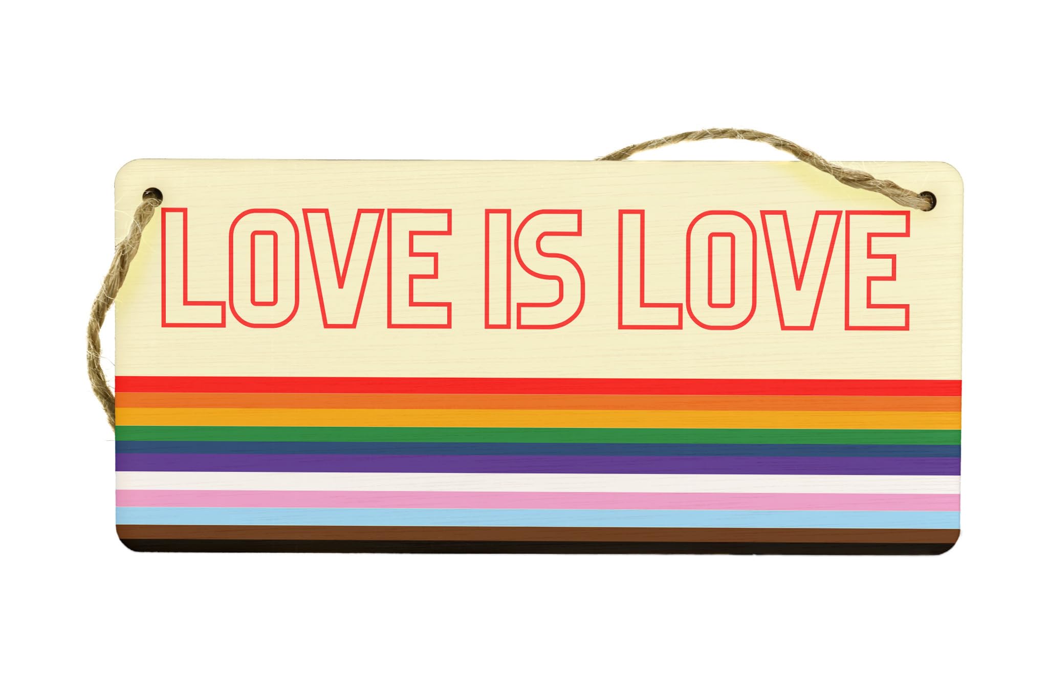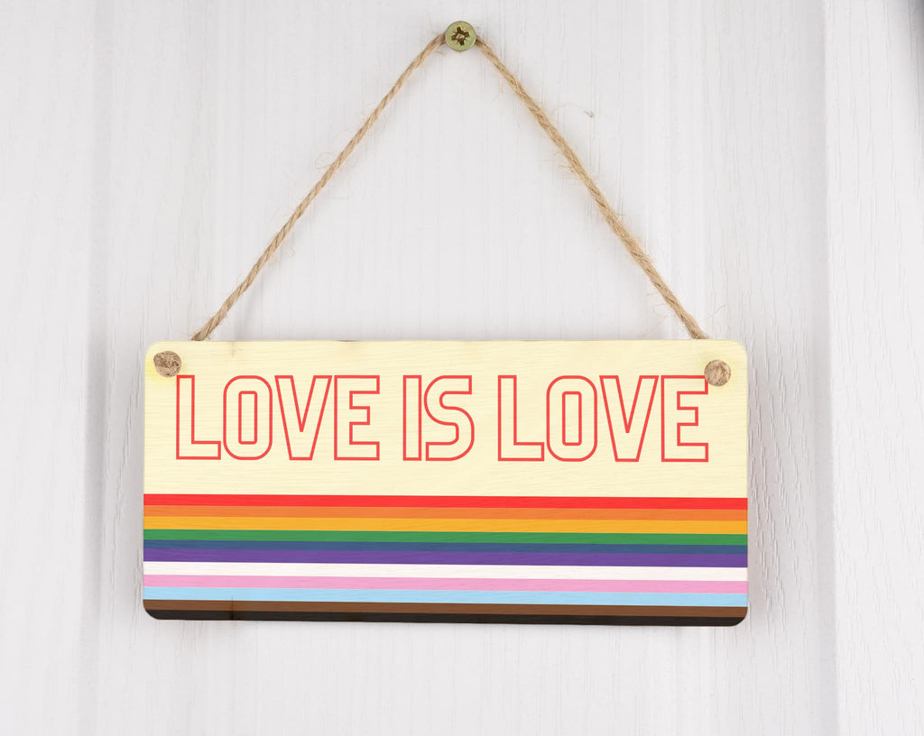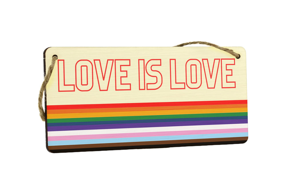 Introducing Rainbow Love, a vibrant plywood hanging sign that celebrates LGBTQ+ inclusion in style. This exquisite rainbow sign is designed to bring love and inclusivity to any space, be it your home or classroom. Made from high-quality plywood, this hanging sign exudes durability and elegance. With its stunning full-color design, it instantly catches the eye and spreads positivity. The words 'Love is love' elegantly adorn this sign, making it a powerful statement of equality and acceptance. This inclusive sign serves as a constant reminder that everyone deserves love, respect, and understanding. Whether you're looking to enhance your home decor or add a touch of inclusivity to your classroom, Rainbow Love is the perfect choice. It also makes for an excellent gift option that celebrates love and supports the LGBTQ+ community.