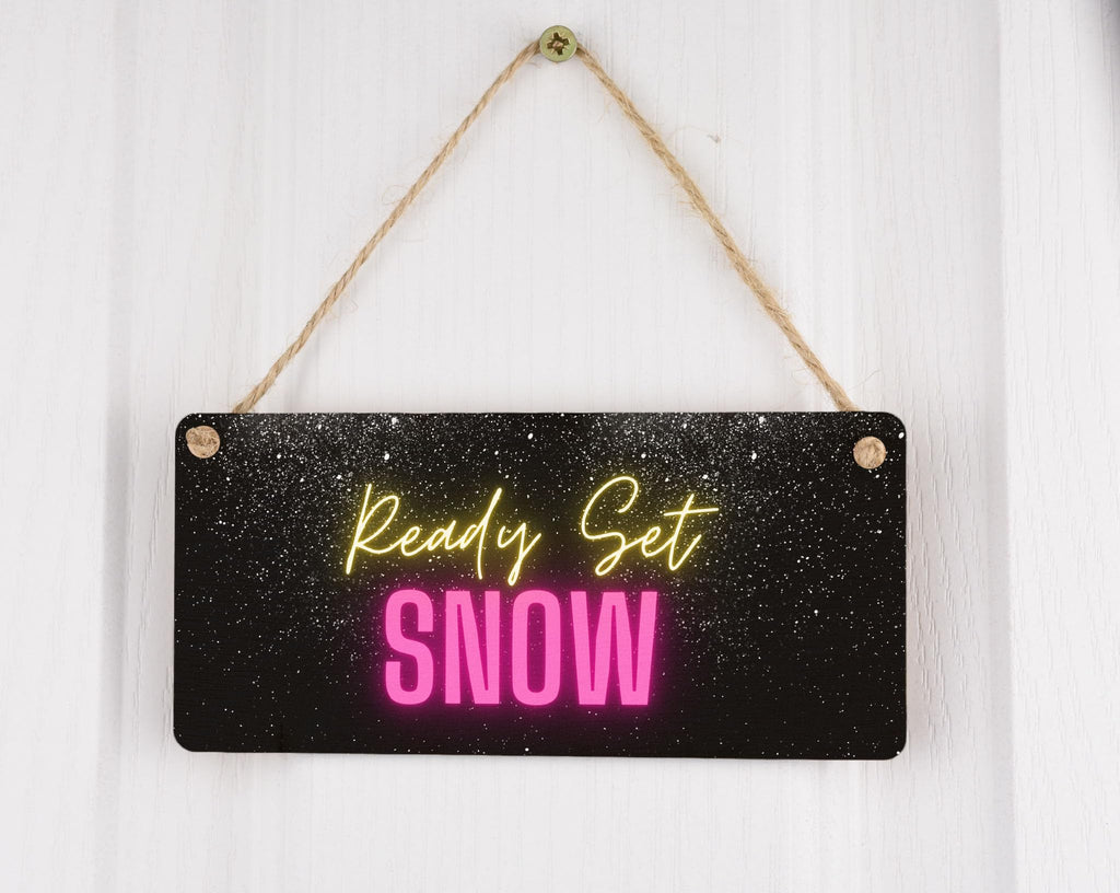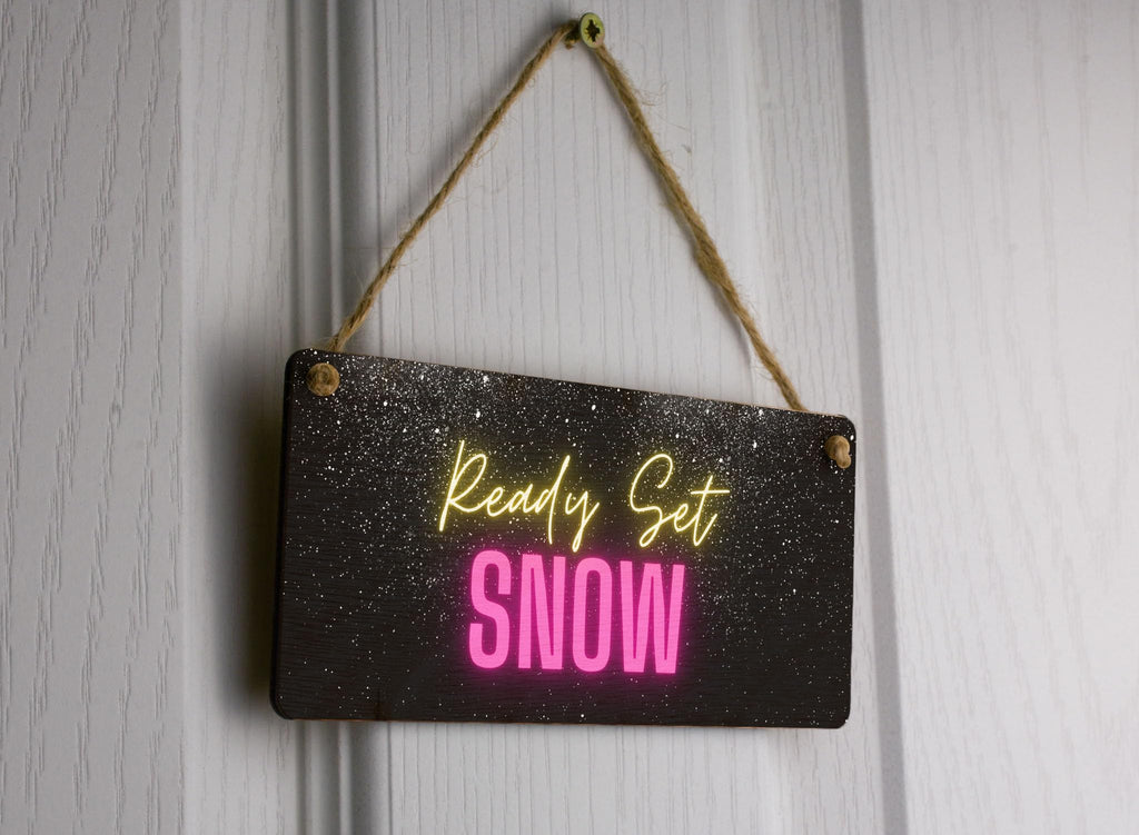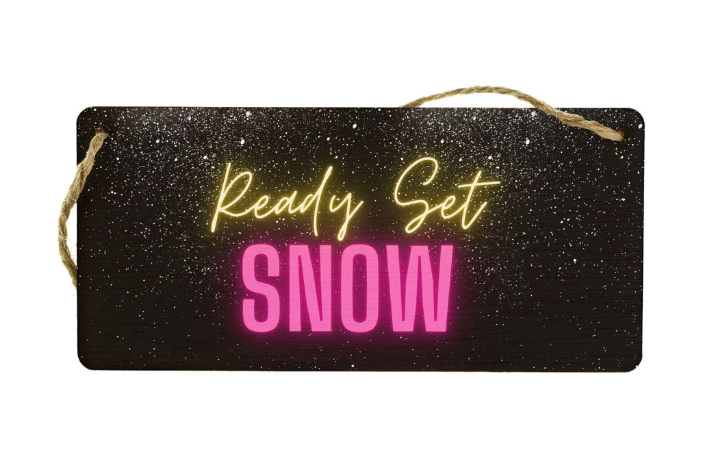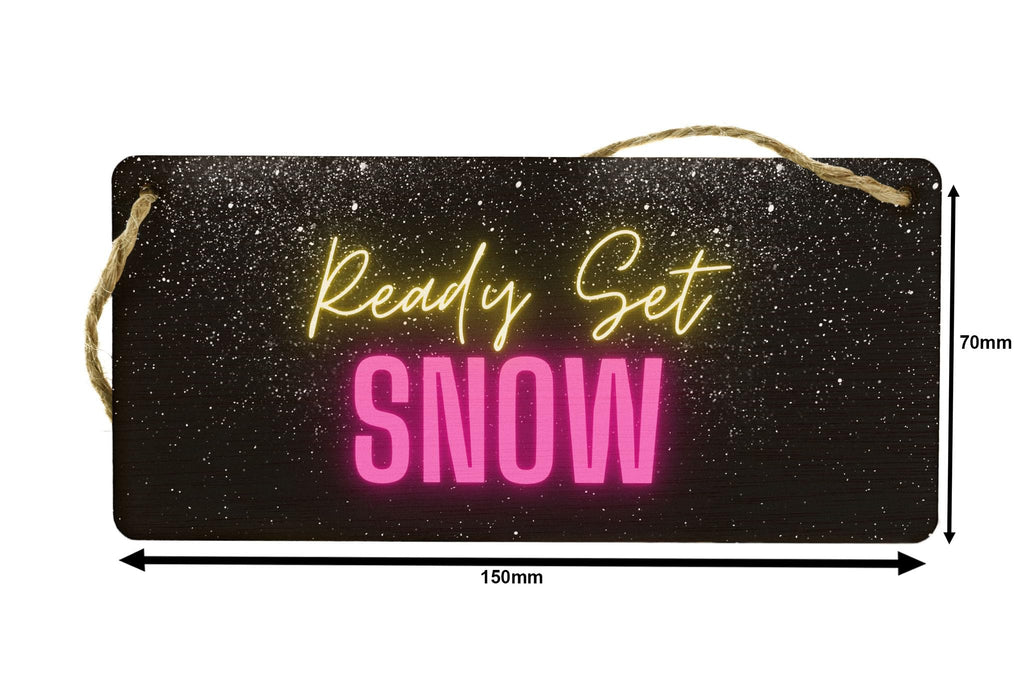 Add a touch of winter festivity to your home with this beautiful Ready Set Snow hanging plywood sign. Crafted from quality plywood, this sign features a charming design that will delight everyone who sees it. Hang it in your living room or bedroom to create a cosy and festive atmosphere during the winter season. The sign's black background and bright lighting bring a warmth and glow to any space, perfect for those cold winter nights. The full colour design adds an eye-catching element to your home decor, complementing any style or theme. Whether you're wishing for snow or simply celebrating the joy of winter, this sign is the perfect addition to your home or as a gift for your loved ones. Surprise and delight your spouse, partner, children, or siblings with this unique and thoughtful present. The Ready Set Snow sign is sure to bring smiles and festive spirit to your family and friends' faces.
