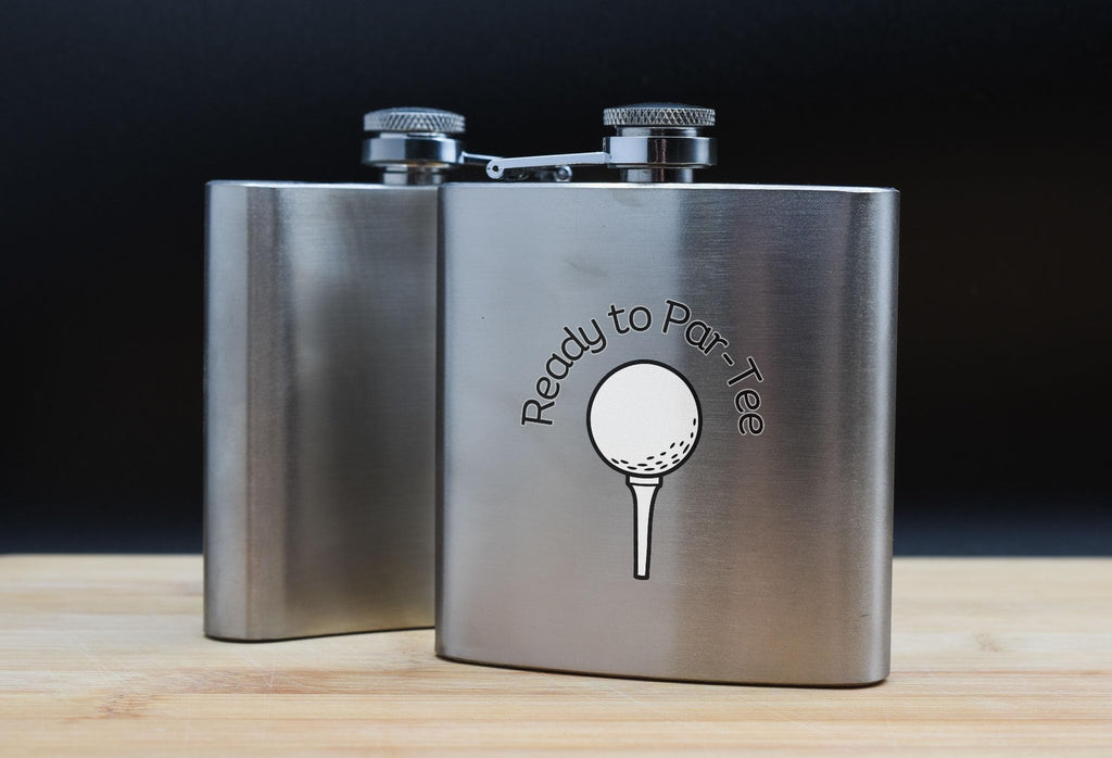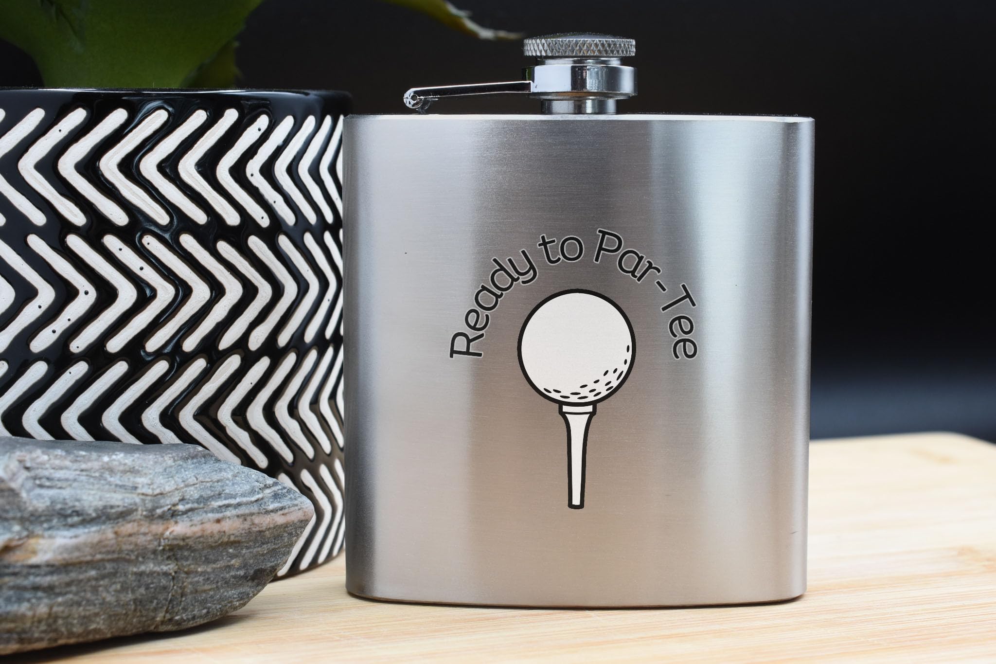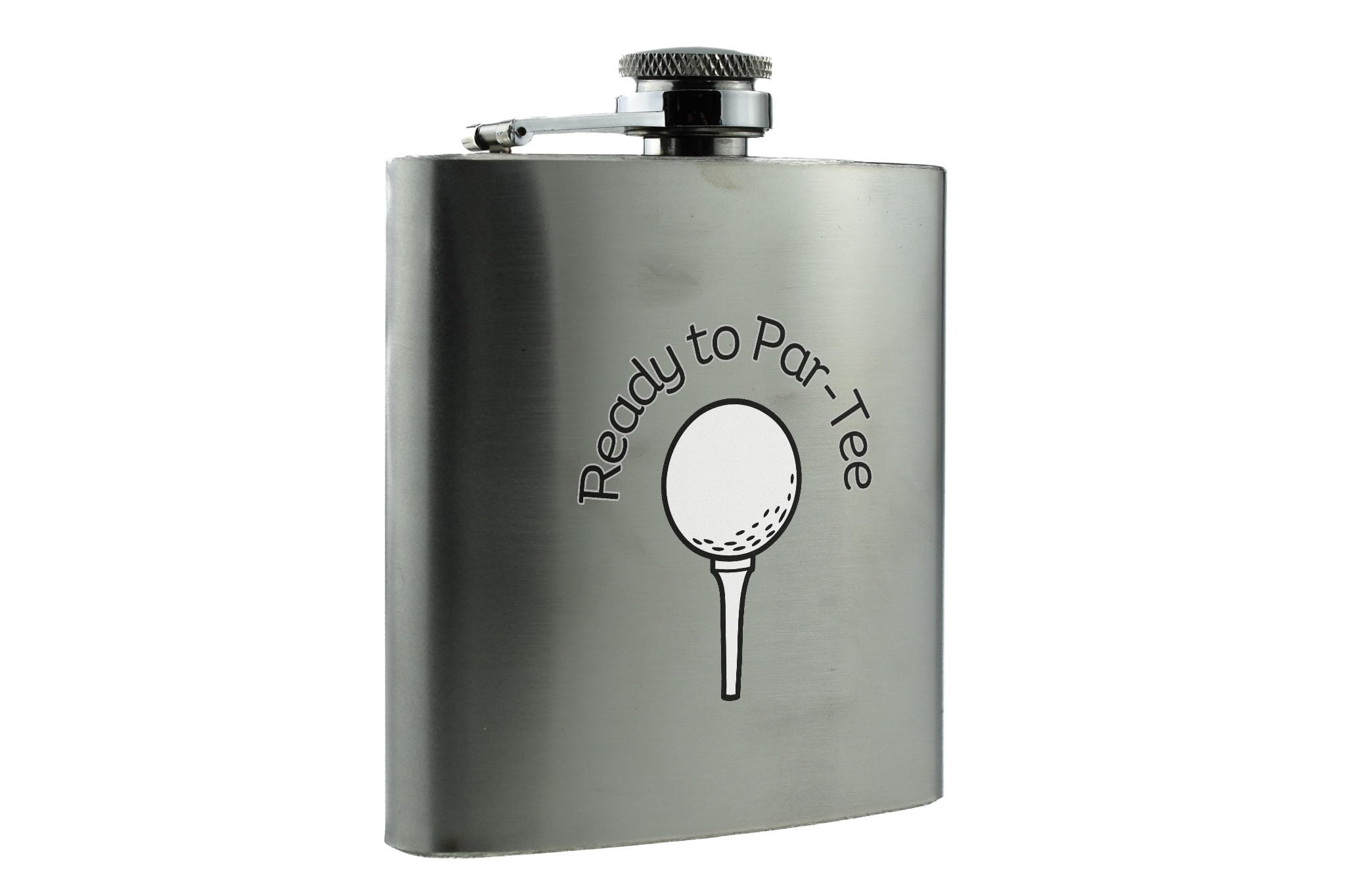 Introducing our Ready to Par-tee - Stainless Steel Hip Flask, the perfect gift for all the whisky, rum, vodka, and gin lovers who are also passionate about golf! This flask features a sleek and durable stainless steel construction, ensuring that your favourite drinks stay perfectly chilled. Its ideal for enjoying a quick sip on the golf course or during any outdoor adventure. The design of this flask is what makes it truly special - it is adorned with a white image of a golf ball and tee, along with bold black writing that reads 'Ready to Par-tee'. Whether you're looking to treat yourself or searching for a unique gift, this funny and stylish hip flask is a hole-in-one choice. It's a fantastic present for family and friends, your wife, husband, girlfriend, boyfriend, son, daughter, and even your siblings who enjoy golfing. Get ready to show off your love for both golf and your favourite drinks with our Ready to Par-tee - Stainless Steel Hip Flask!